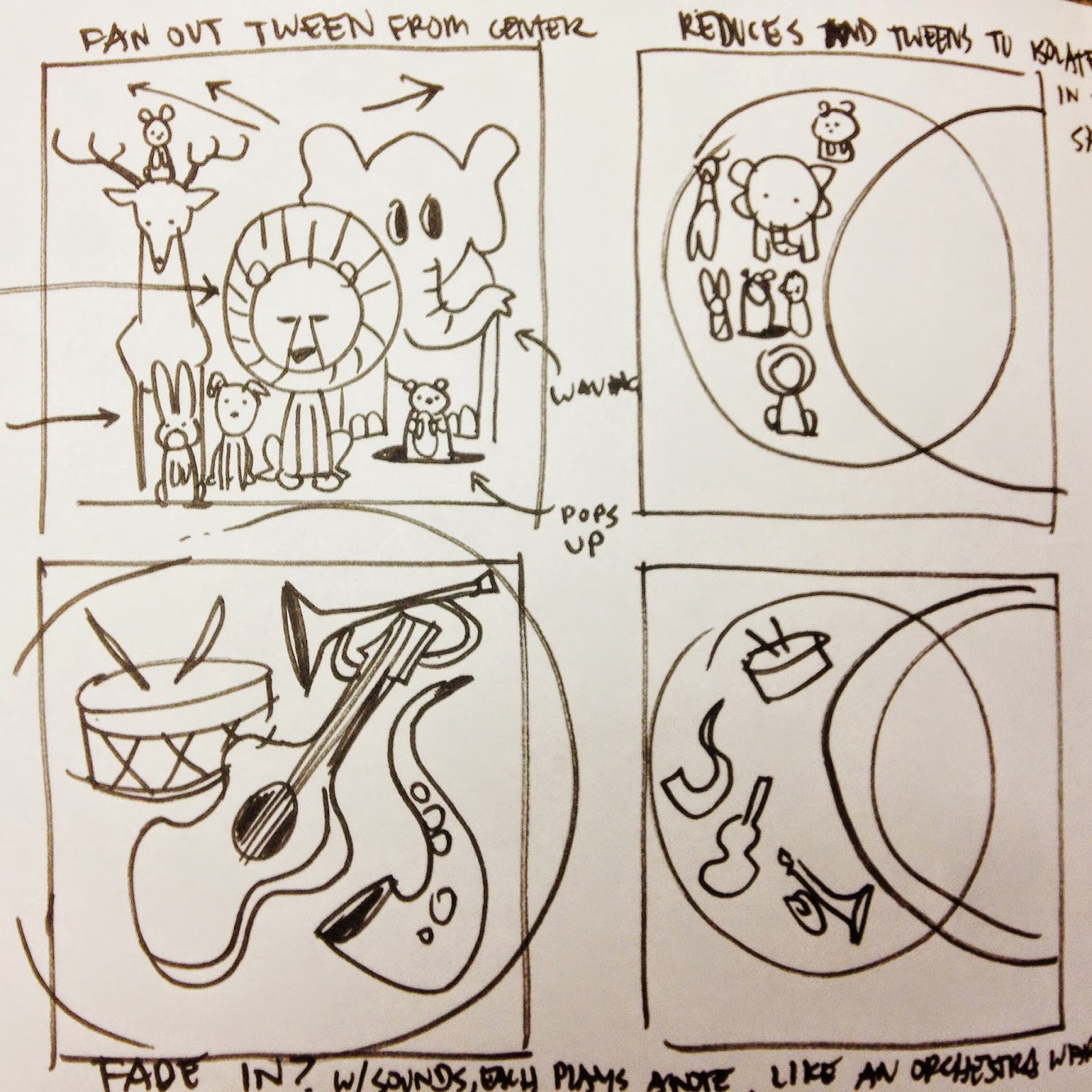 Eventually, I sat down with two of the doodle engineers, Corrie Scalisi (the engineer of this doodle) and Mark Ivey. We spent a Friday afternoon on a patio with the sole mission of figuring this out. They threw around all kinds of ideas while I doodled them on a giant sketchpad. There were plenty of silly ideas, and some really great ones. Ultimately, that’s what went into making the final doodle. Sound logic and silliness.