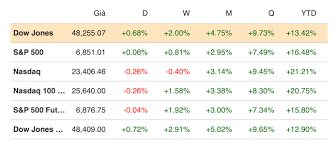 Tất cả dữ liệu và thông tin được cung cấp "theo đúng nguyên trạng" và chỉ phục vụ cho mục đích cung cấp thông tin cá nhân, không phục vụ cho mục đích giao dịch, mục đích tư vấn tài chính, đầu tư, pháp lý, kế toán hoặc các mục đích tư vấn khác. Google không phải là một nhà tư vấn đầu tư hoặc nhà tư vấn tài chính và không đưa ra bất cứ quan điểm, đề xuất hoặc ý kiến nào về các công ty trong danh sách này hoặc về các loại chứng khoán do các công ty đó phát hành. Vui lòng hỏi ý kiến nhà môi giới hoặc người đại diện tài chính của bạn để xác minh giá trước khi thực hiện giao dịch. Tìm hiểu thêm