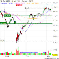 Toutes les données et les informations sont fournies "en l'état", à titre d'information uniquement, et non à des fins commerciales ou de conseils financiers, d'investissement, fiscaux, juridiques, comptables ou autres. Google ne prodigue aucun conseil financier ni d'investissement, et n'exprime aucune opinion, recommandation ou avis sur les entreprises listées ni sur leurs titres. Veuillez contacter votre courtier ou votre représentant financier pour vérifier le cours des titres avant d'effectuer des transactions. En savoir plus