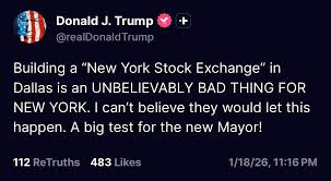 特朗普:在达拉斯建立纽约证券交易所对纽约来说极其糟糕