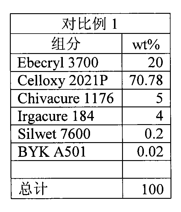 [0157] 对比例I的组成如表28所示。 [0157] The composition of Example I as shown in Table 28. 用激光和LED光固化时的、使用之前所述的方法测定Ec和Dp数据被不于表29中。 With a laser and LED light curing, the method of measurement before using the Ec and Dp data are not presented in Table 29.