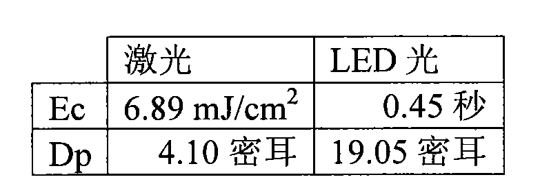 [0138] 或者,当树脂表面上来自光源的入射光的强度是已知的(mW/cm2)时,使用曝光能量(mj/cm2)而不是曝光时间(以秒计)来计算Dp和Ec值。 [0138] Alternatively, when the resin surface intensity of incident light from the light source is known (mW / cm2), use the exposure energy (mj / cm2) rather than the exposure time (in seconds) to calculate the value Dp and Ec .