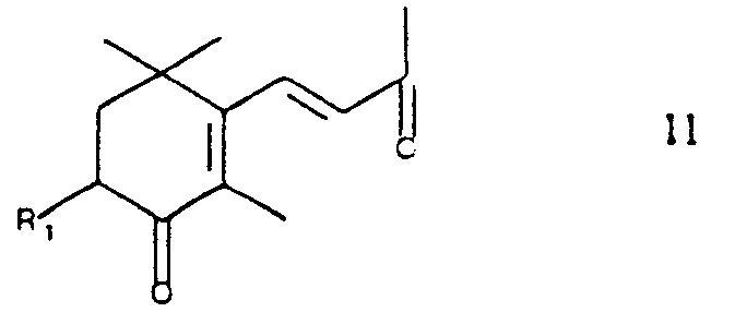 Diejenigen Ausgangsmaterialien der Formel II, in welchen R, eine in die Hydroxygruppe überführbare Aethergruppe darstellt, sind in einfacher Weise durch Verätherung von 3-Hydroxy-4-oxo-ß-ionon erhältlich. Those starting materials of formula II, in which R, represents a convertible into the hydroxy ether group, are obtainable by etherification of 3-hydroxy-4-oxo-.beta.-ionone in a simple manner.