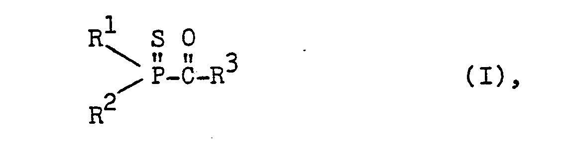 Als Beispiele für die erfindungsgemäßen Acylphosphinsulfid-Verbindungen seien genannt: As examples of the Acylphosphinsulfid compounds of the invention may be mentioned: - Isobutyroyl-diphenylphosphinsulfid, 2-Ethylhexanoyl-diphenylphosphinsulfid, p-Toluyl-diphenylphosphinsulfid, o-Toluyl-diphenylphosphinsulfid, p-tert.-Butylbenzoyl- diphenylphosphinsulfid, 3-Pyridylcarbonyl-diphenylphosphinsulfid, Acryloyldiphenylphosphinsulfid, Benzoyl-diphenylphosphinsulfid, Terephthaloyl-bis-diphenylphosphinsulfid, Adipoyl-bis-diphenylphosphinsulfid und vorzugsweise Pivaloyl-diphenylphosphinsulfid, 1-Methyl-l-cyclohexancarbonyl--bis-(p-tolyl)phosphinsulfid, 2,2-Dimethylheptanoyl-diphenylphosphinsulfid und vorzugsweise Isobutyroyl-diphenylphosphinsulfid, 2-ethylhexanoyl-diphenylphosphinsulfid, p-toluyl-diphenylphosphinsulfid, o-toluyl-diphenylphosphinsulfid, p-tert-butylbenzoyl diphenylphosphinsulfid, 3-pyridylcarbonyl-diphenylphosphinsulfid, Acryloyldiphenylphosphinsulfid, benzoyl diphenylphosphinsulfid, terephthaloyl-bis-diphenylphosphinsulfid, adipoyl -bis-diphenylphosphinsulfid and preferably pivaloyl diphenylphosphinsulfid, 1-methyl-l-cyclohexanecarbonyl - bis- (p-tolyl) phosphine, 2,2-Dimethylheptanoyl-diphenylphosphinsulfid and preferably
