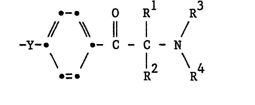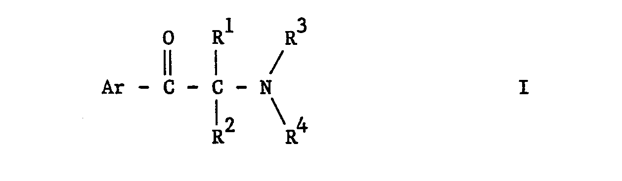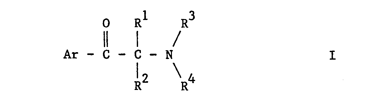 Eine relativ neue Klasse von Photoinitiatoren sind Aryl-sec.- alkylketone, welche in der a-Stellung durch eine Sauerstoff- oder Aminfunktion substituiert sind und durch die allgemeine Formel A relatively new class of photoinitiators are aryl-alkyl ketones sec-, which are substituted in the a-position by an oxygen or amine function and by the general formula wiedergegeben werden können, wobei R und R' organische Reste, vorzugsweise Alkylreste, sind und X a) eine freie, veretherte, veresterte oder silylierte Hydroxylgruppe oder b) eine Aminogruppe sein kann. can be reproduced, wherein R and R 'are organic radicals, preferably alkyl radicals, and X a)) may be an amino group, a free, etherified, esterified or silylated hydroxyl group, or b. Solche Verbindungen und ihre Verwendung als Photoinitiatoren sind in der EP-A-3002 sowie in der DE-OS 2 722 264 beschrieben. Such compounds and their use as photoinitiators are described in EP-A-3002 and in DE-OS 2,722,264. Hierbei sind die Verbindungen vom Typ a) im allgemeinen wesentlich reaktiver als die Verbindungen vom Typ b). Here, the compounds of type a) are generally substantially more reactive than the compounds of the type b). Man kann für beide Typen eine Wirkungssteigerung durch Zusatz von Sensibilisatoren erzielen. One can make an impact increase by adding sensitizers for both types. So ist die Kombination des Typs a) mit 2-Alkylthioxanthonen in der DE-OS 3 010 148 als wirkungssteigernd beschrieben. Thus, the combination of type a) is described with 2-Alkylthioxanthonen in DE-OS 3010148 as effectively enhancing. Ueberraschenderweise wurde jedoch gefunden, dass sich die Verbindungen vom Typ b) besonders gut sensibilisieren lassen, wozu sich allgemein aromatische Carbonylverbindungen mit Triplettenergien von 225-310 kJ/mol, insbesondere von 225-276 kJ/mol eignen. Surprisingly, however, it has been found that the compounds of type b) can be particularly well aware what generally aromatic carbonyl compounds having triplet energy of 225-310 kJ / mol, in particular from 225 to 276 kJ / mol are suitable. Dies führt in vielen Fällen zu einer Umkehr der oben erwähnten Wirksamkeitsabstufung. This often leads to a reversal of the aforementioned effectiveness gradation. Während zB eine Verbindung mit X = OH allein im allgemeinen aktiver ist als ihr Analogon mit X = -N(CH3)2, ist im Gemisch mit einem solchen Sensibilisator die Aminoverbindung der Hydroxylverbindung überlegen. For example, while a compound with X = OH alone is generally more active than their analogue with X = -N (CH3) 2, is superior in admixture with such a sensitizer, the amino compound of the hydroxyl compound. [0004] [0004]