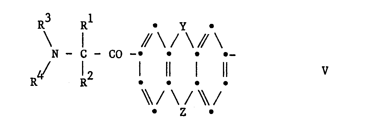 Wenn R 4 zusammen mit R 2 Alkylen, Phenylalkylen, o-Xylylen, Oxa- oder Azaalkylen bedeuten, so bilden diese zusammen mit dem N-Atom und dem C-Atom, an das sie gebunden sind, einen Ring, wie zB einen Pyrrolidin-, Piperidin-, Oxazolidin-, Morpholin-, Imidazolidin- oder Piperazinring, der durch Alkyl oder Phenyl substituiert oder durch einen Benzoerest anneliert sein kann. When R 4 together with R 2 is alkylene, phenylalkylene, o-xylylene, oxa- or azaalkylene, they form, together with the N atom and the C atom to which they are attached form a ring such as a pyrrolidine , which may be substituted by alkyl or phenyl or fused by a Benzoerest piperidine, oxazolidine, morpholine, imidazolidine or piperazine ring.
