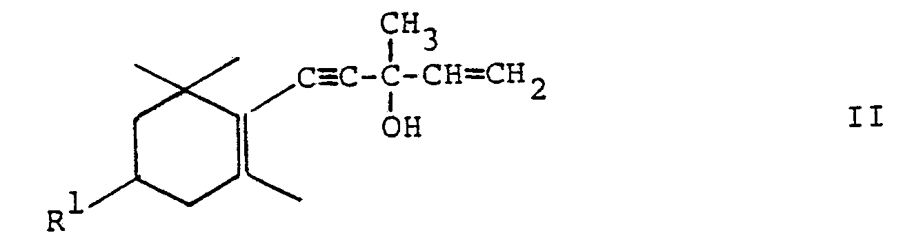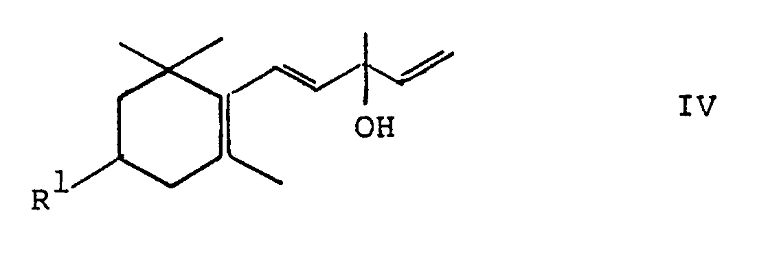 Gemäss dem vorliegenden Verfahren erfolgt die Herstellung der Verbindungen der Formel IV durch stufenweise Einführung der 3-Hydroxy-3-methyl-1,4-pentadienylgruppe via Verbindungen der Formel I und Umsetzung mit einem α,β-un gesättigten Keton zu Verbindungen der Formel II bzw. deren Alkoholaten. According to the present process, the preparation of the compounds of formula IV by stepwise introduction of the 3-hydroxy-3-methyl-1,4-pentadienyl group via compounds of the formula I and reaction with an α, β-un saturated ketone compounds of the formula II or their alcoholates. Ueberraschenderweise wird auf diesem Wege eine beträchtliche Verbesserung der Gesamtausbeute und eine Vereinfachung des Gesamtverfahrens erzielt. Surprisingly, it is achieved in this way a considerable improvement in the overall yield and simplification of the overall process. Alle Stufen des Verfahrens, einschliesslich der Herstellung der Verbindungen der Formel I, können leicht im technischen Massstab durchgeführt werden. All stages of the process, including the preparation of the compounds of formula I can be carried out on an industrial scale easily. Ferner können aufwendige Reinigungsoperationen vermieden werden. Moreover, expensive purification operations can be avoided. Wird beispielsweise die Verbindung der Formel IV via Phosphoniumsalz zu Zeaxanthin weiter umgesetzt so kann auf eine Reinigung der Verbindungen der Formeln I, II und IV verzichtet werden und lediglich eine Umkristallisation des Phosphoniumsalzes erfolgen. For example, if the compound of formula IV via phosphonium salt to zeaxanthin further reacted as may be done in a purification of the compounds of formulas I, II and IV are omitted and only one recrystallization of the phosphonium salt. Gewünschtenfalls kann auch die Hydroxyverbindung der Formel I leicht durch Umkristallisation gereinigt werden. If desired, the hydroxy compound of formula I can be purified by recrystallization easily.