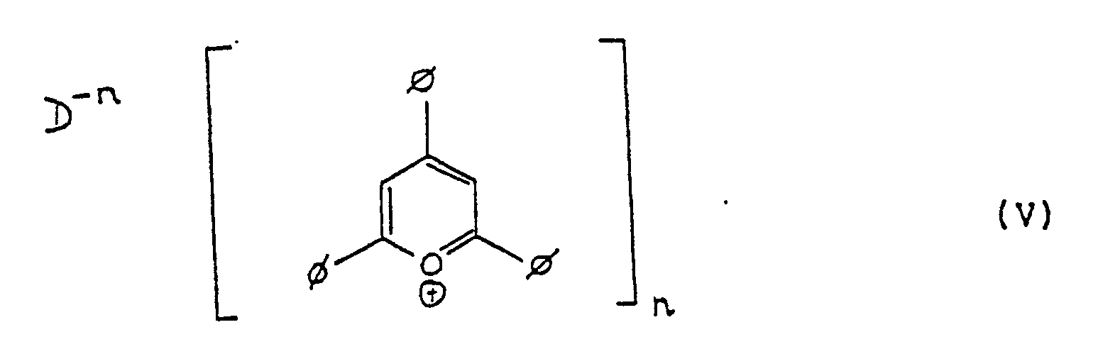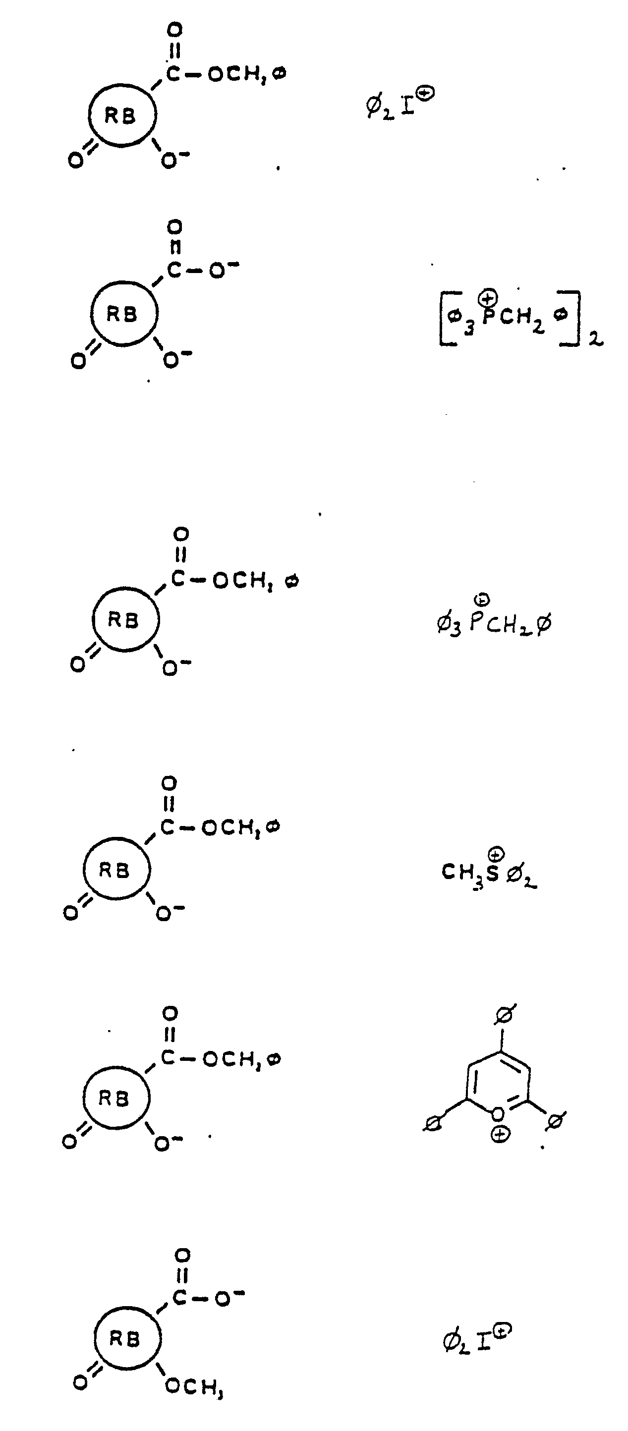 The ionic compounds described in more detail below used in practice of the present invention differ from the collision generated species encountered in other photosensitive systems such as collision complexes which yield encounter complexes, exciplexes and/or contact ion pairs. See for example, Kavarnos et al., "Photosensitization by Reversible Electron Transfer", Chem. Rev. 401(1986).