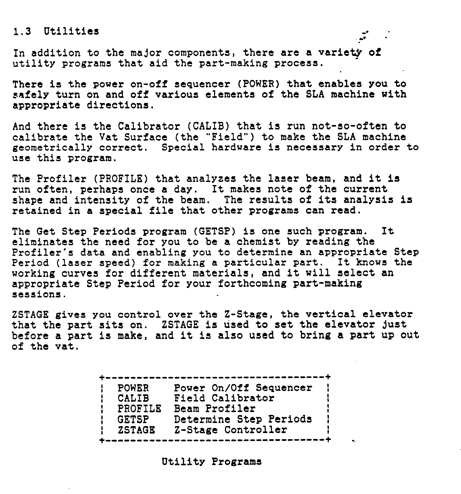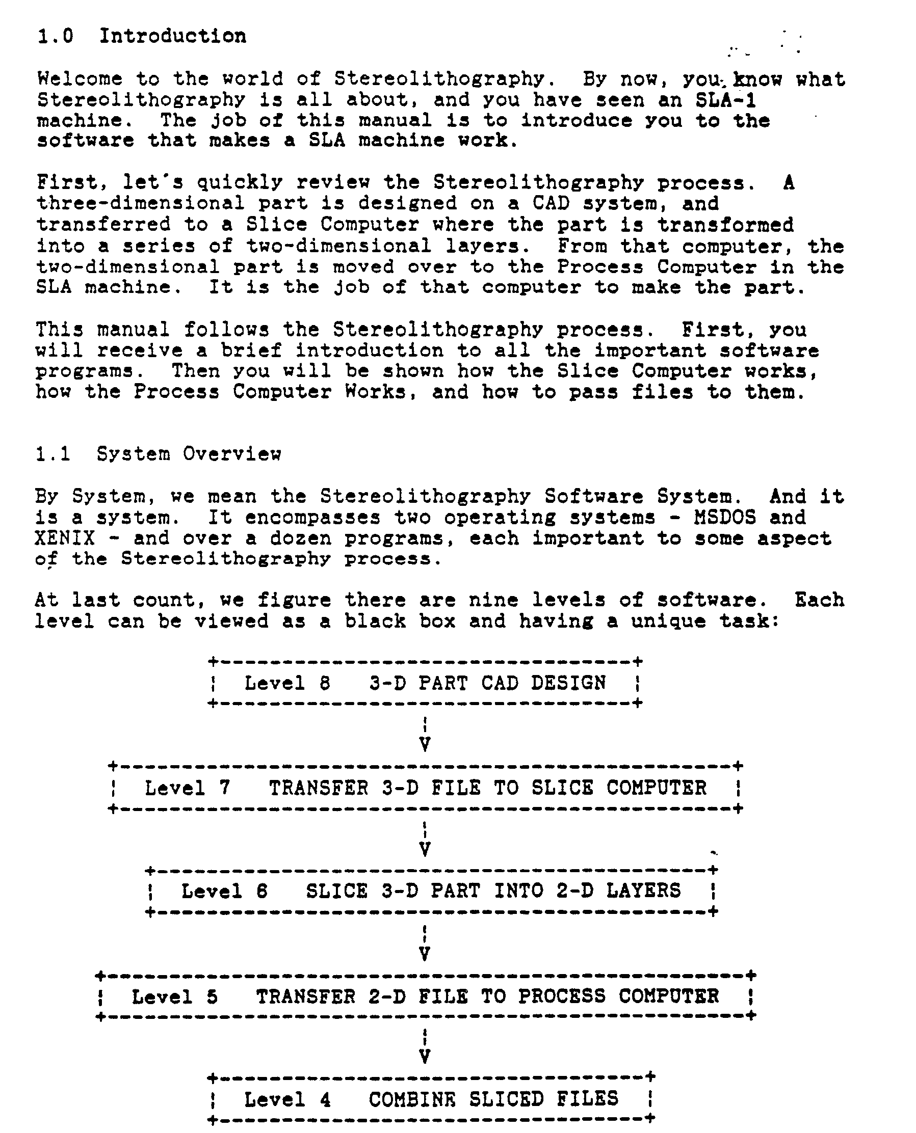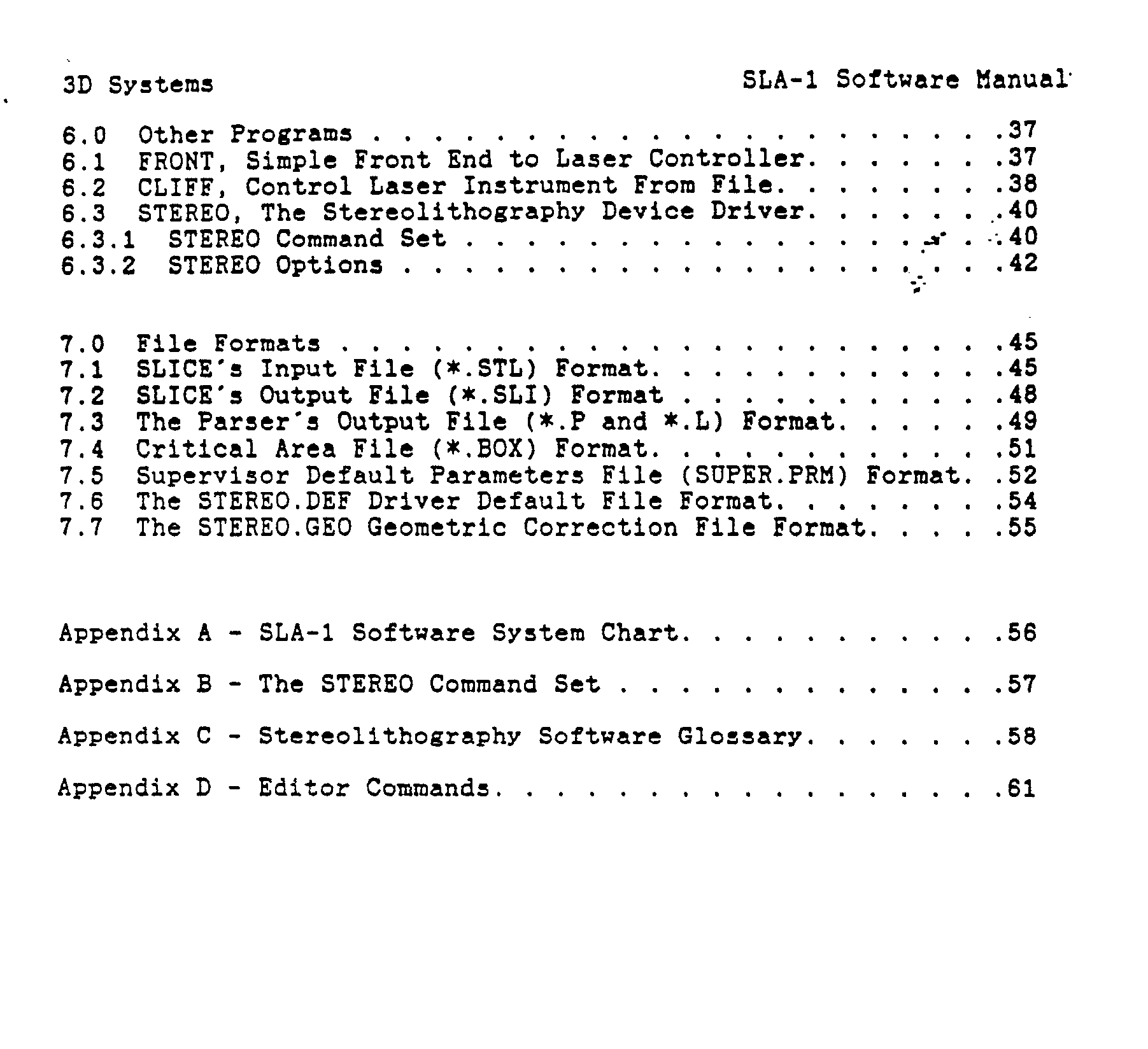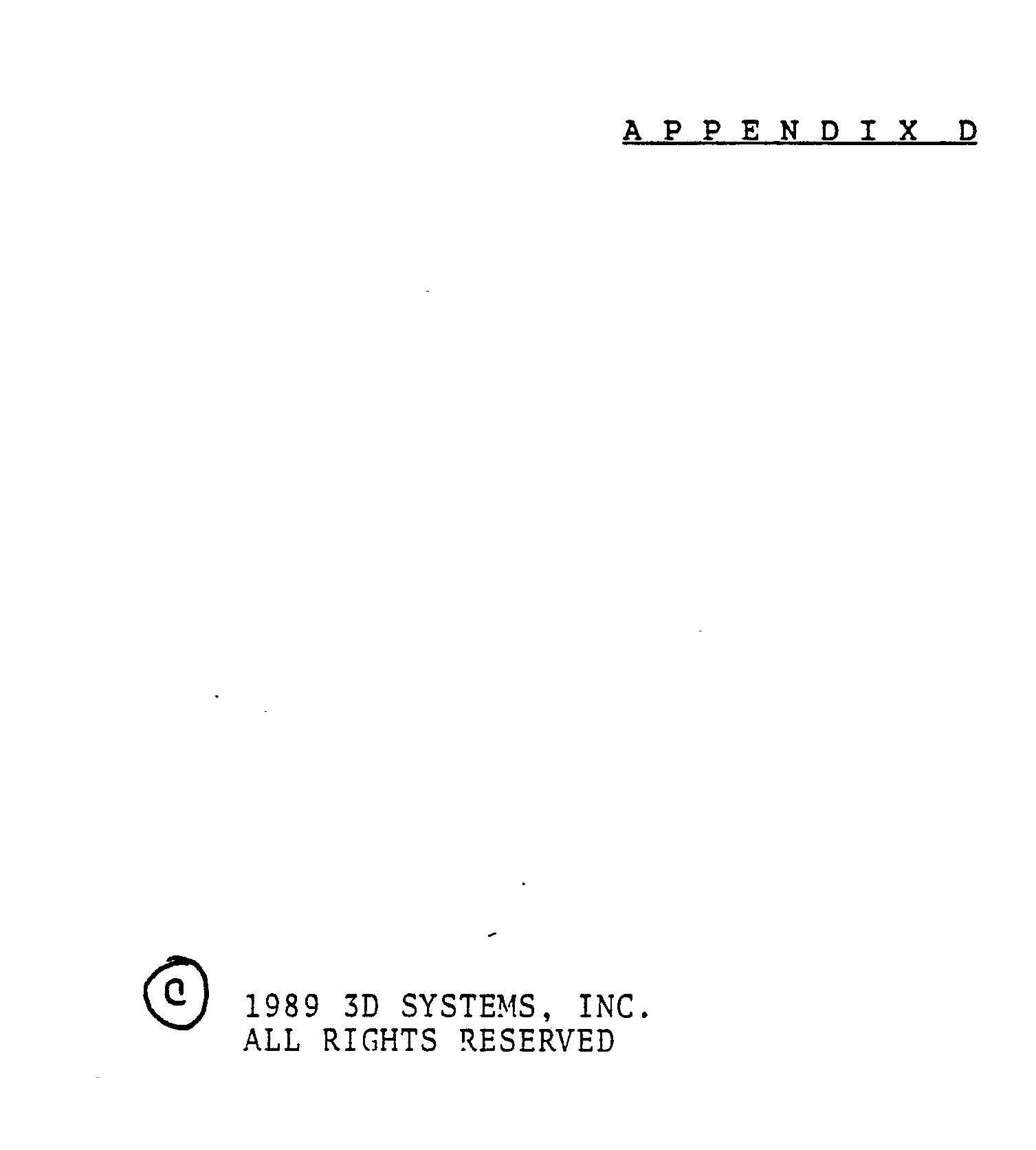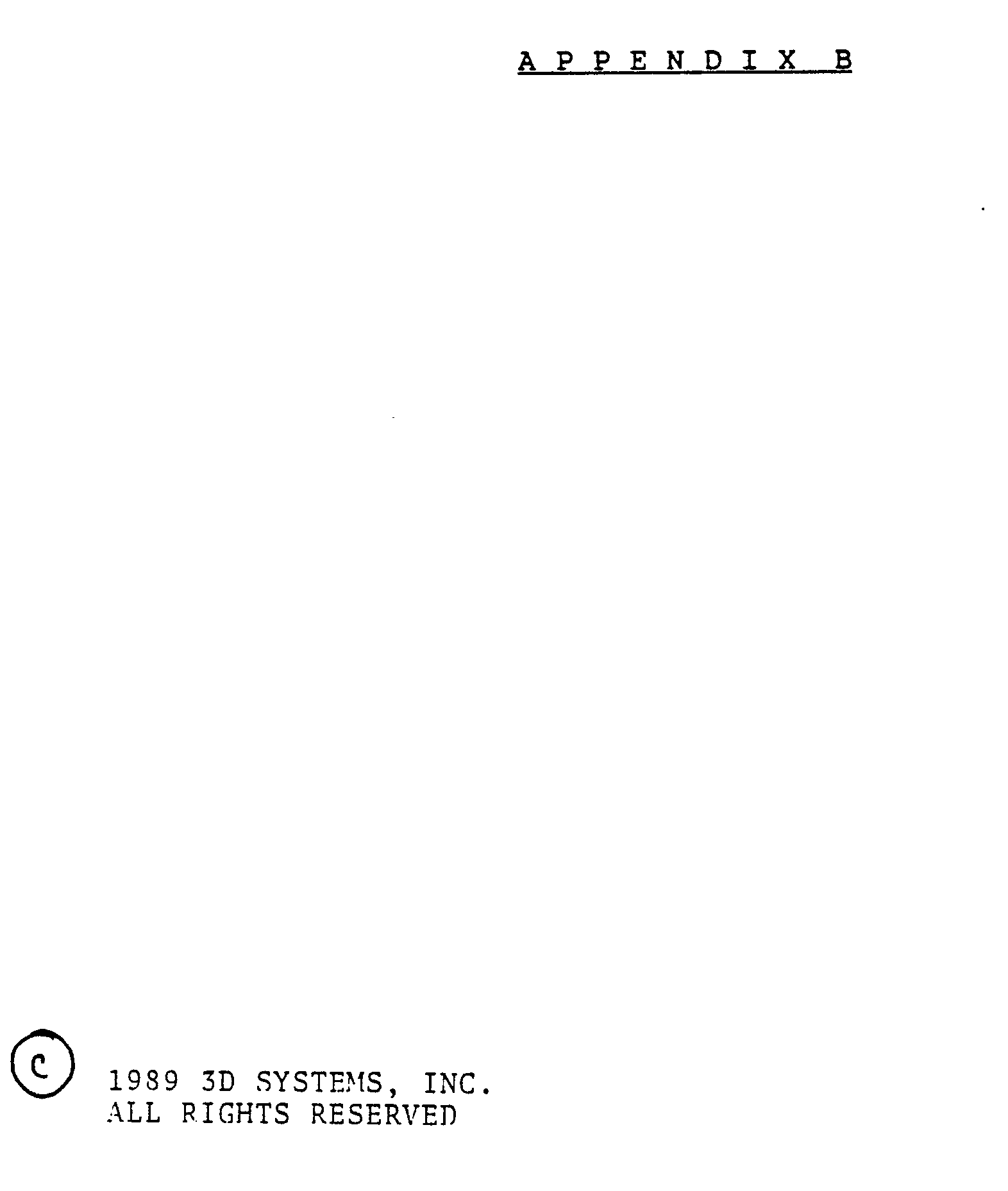 - Appendix B: 3D Systems, Inc., SLA-1 Software Manual, Beta Release, First Draft, October, 1987