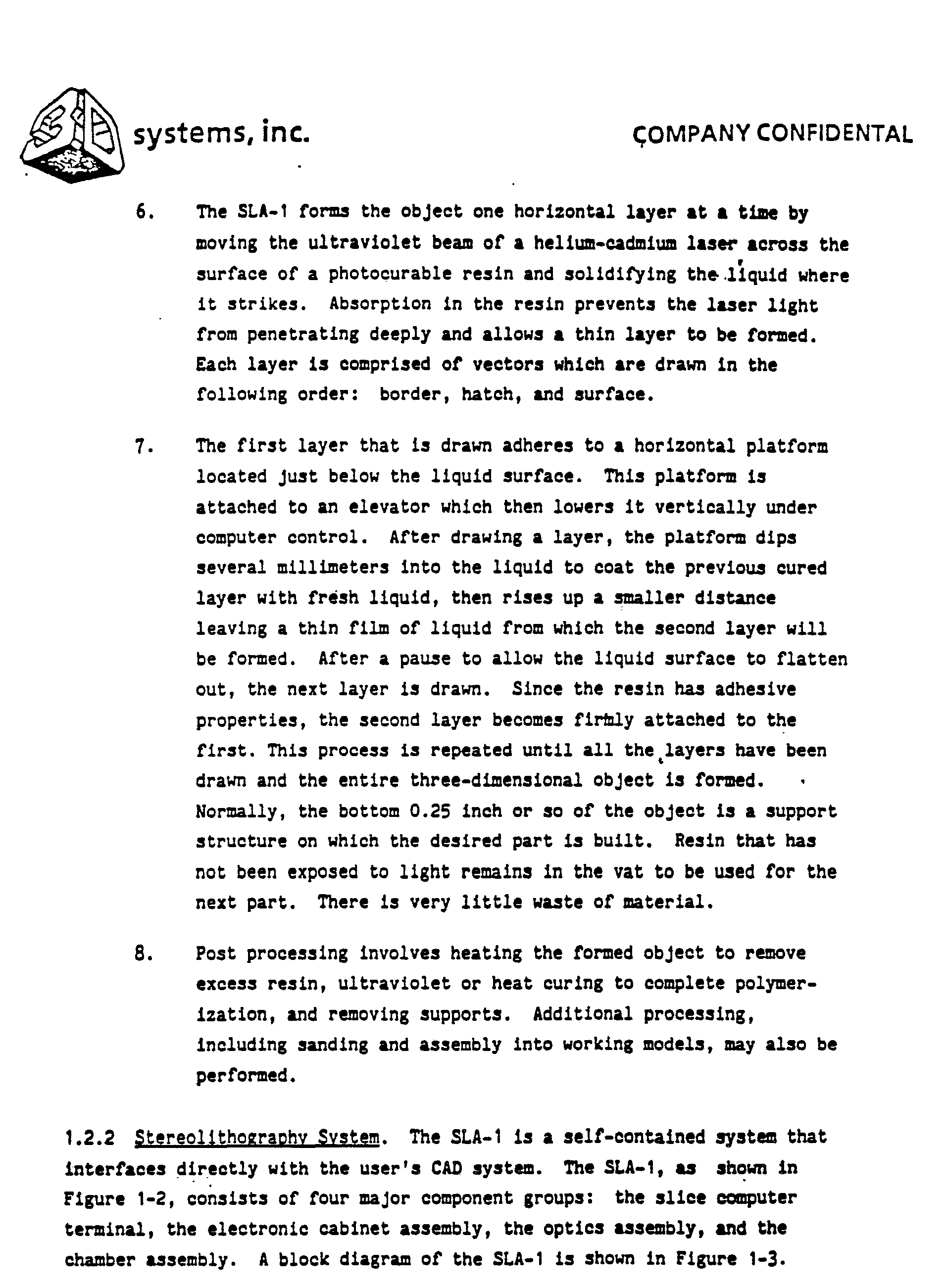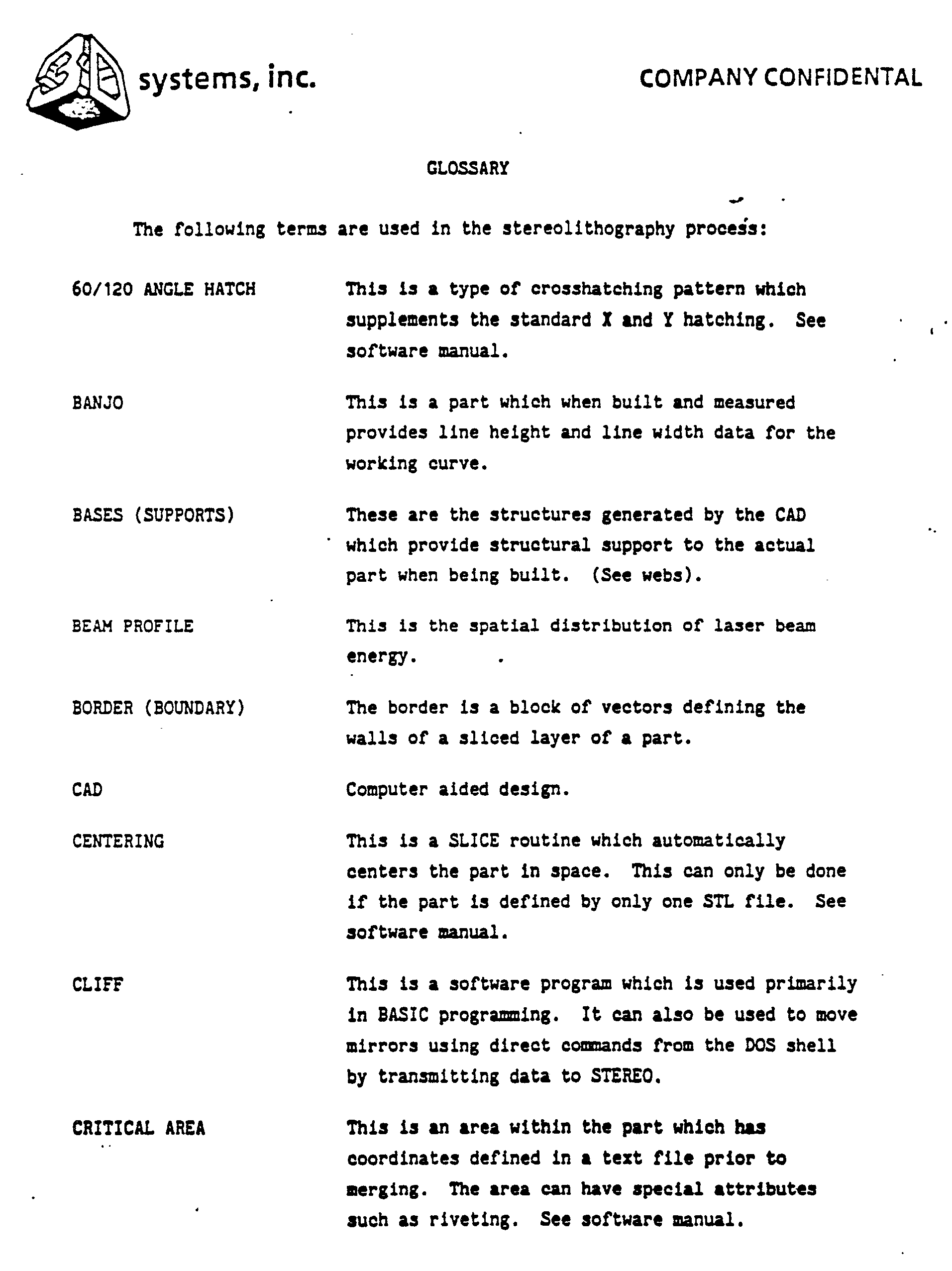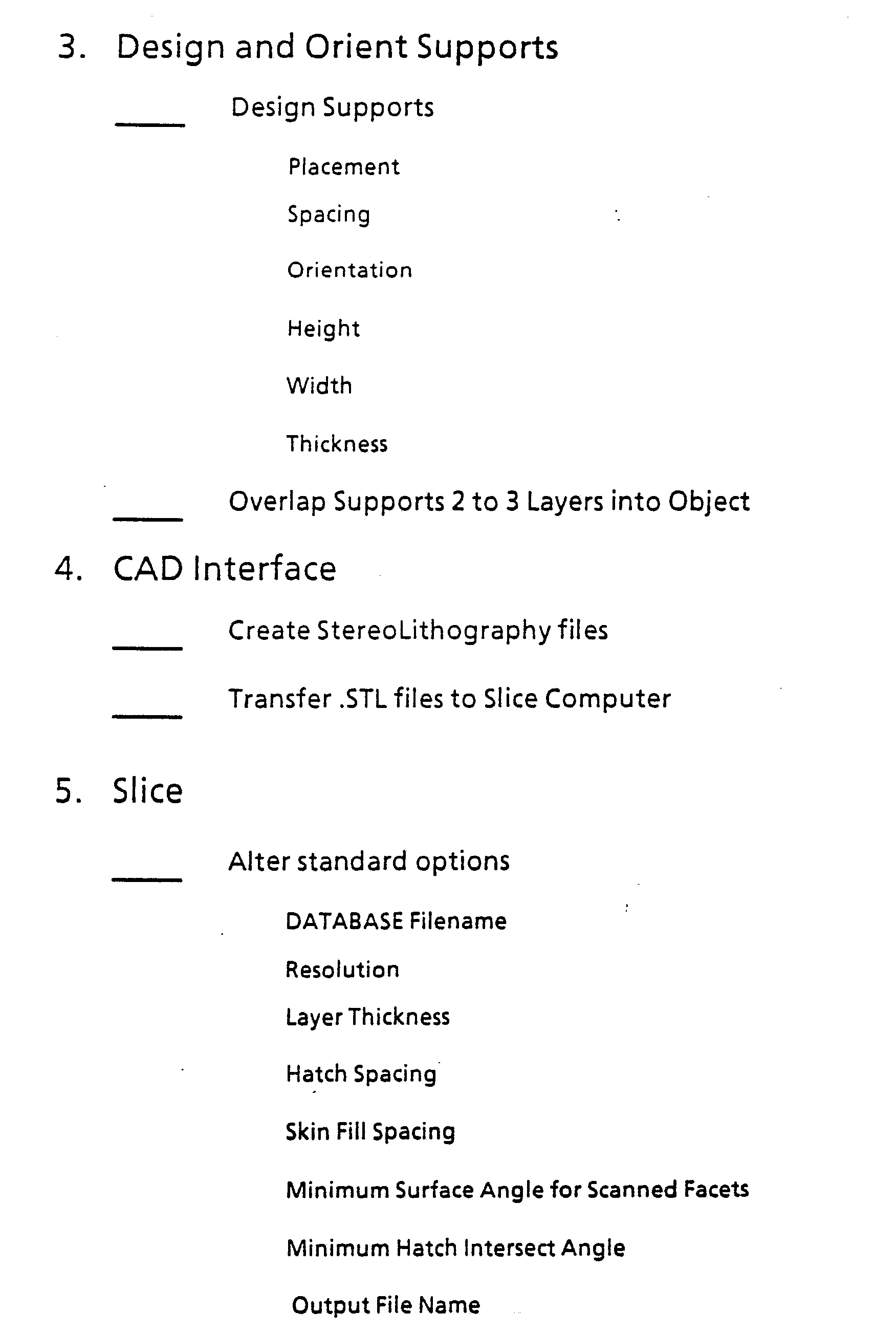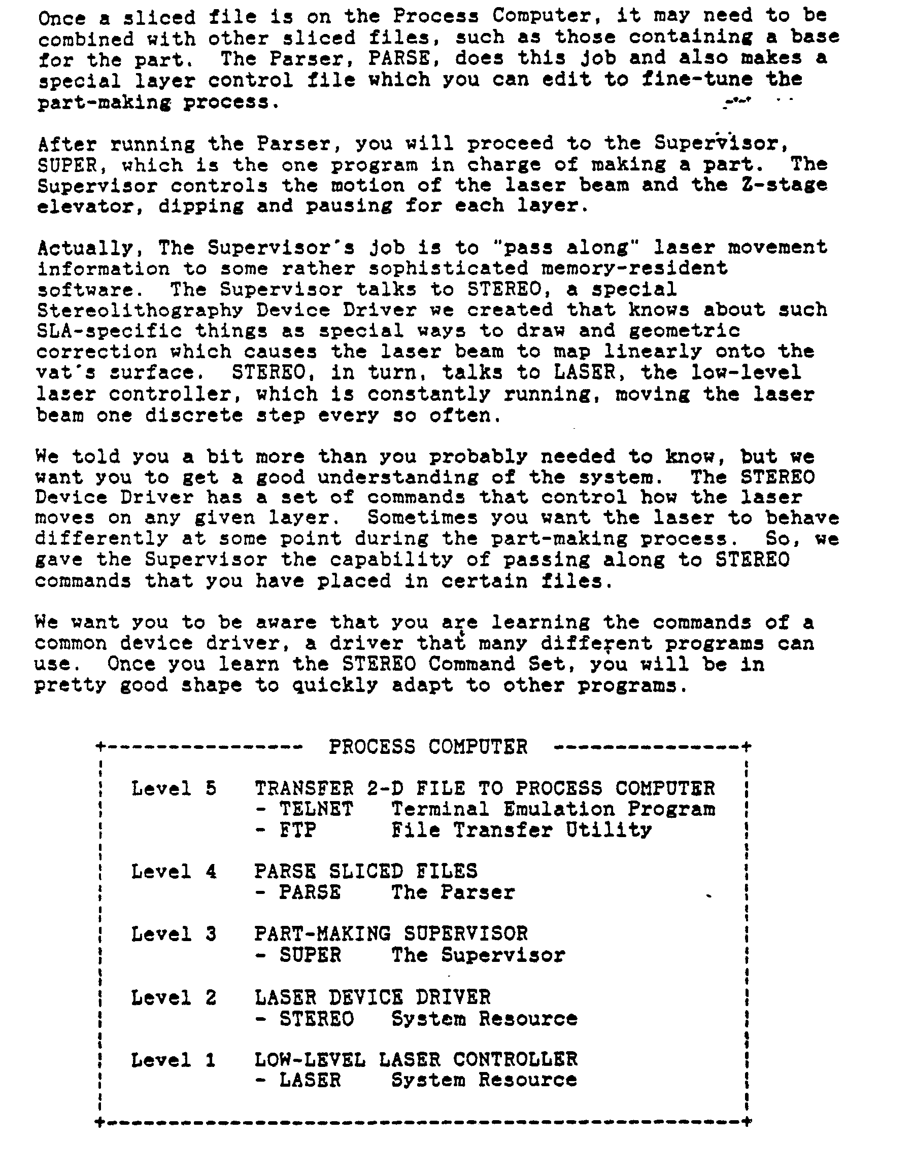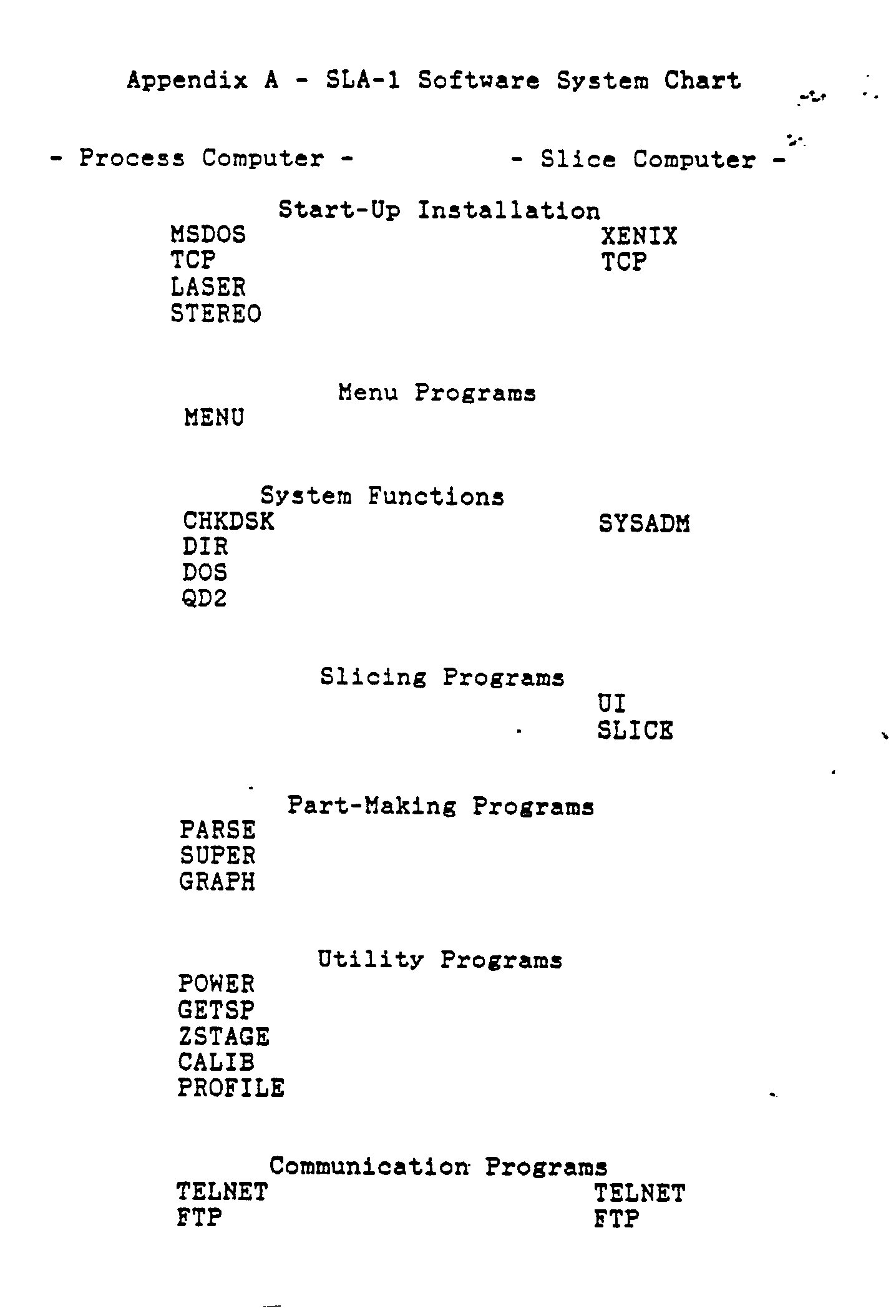 - Appendix B: 3D Systems, Inc., SLA-1 Software Manual, Beta Release, First Draft, October, 1987