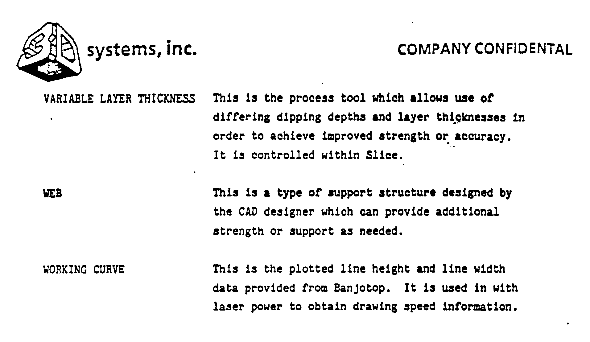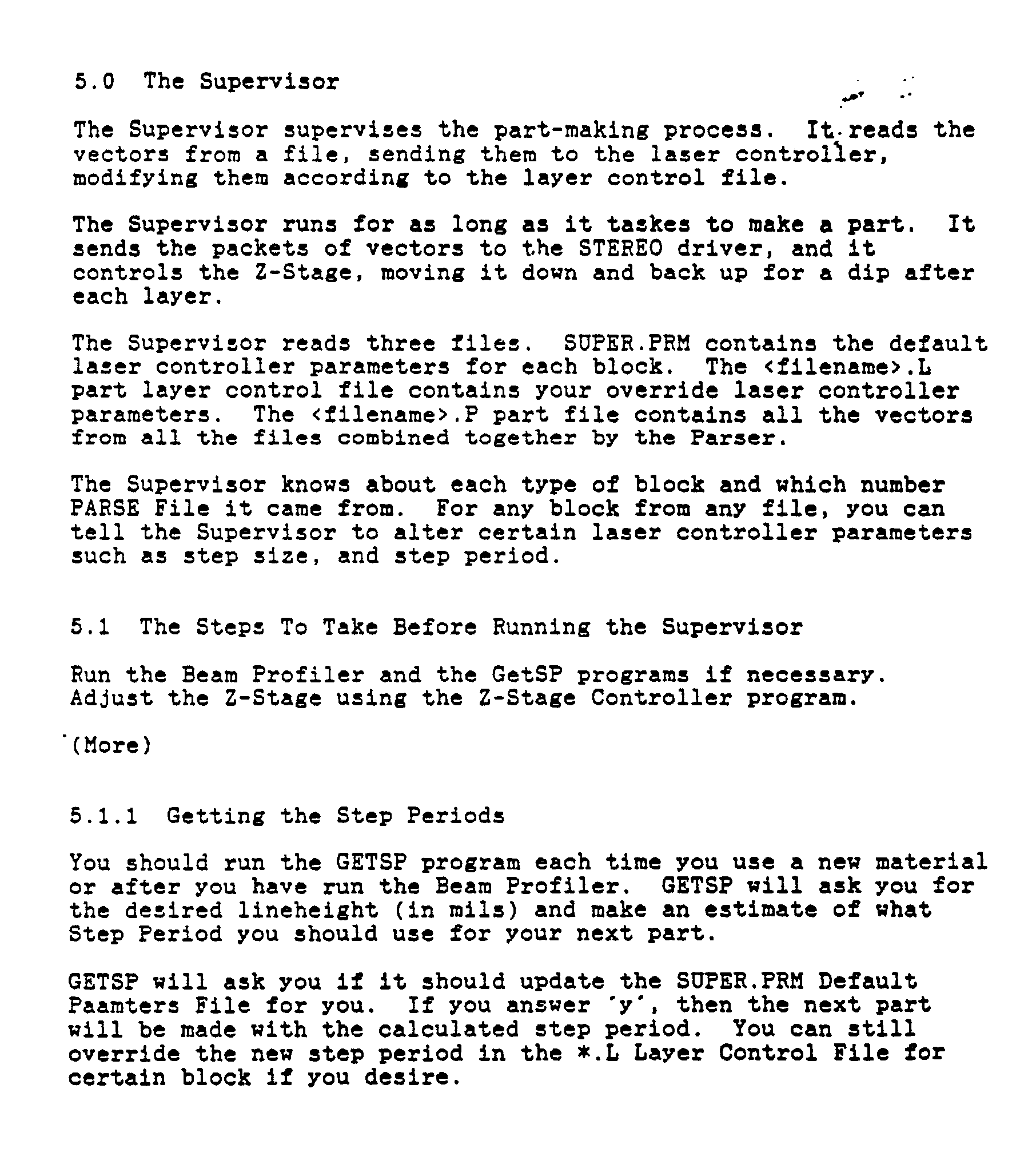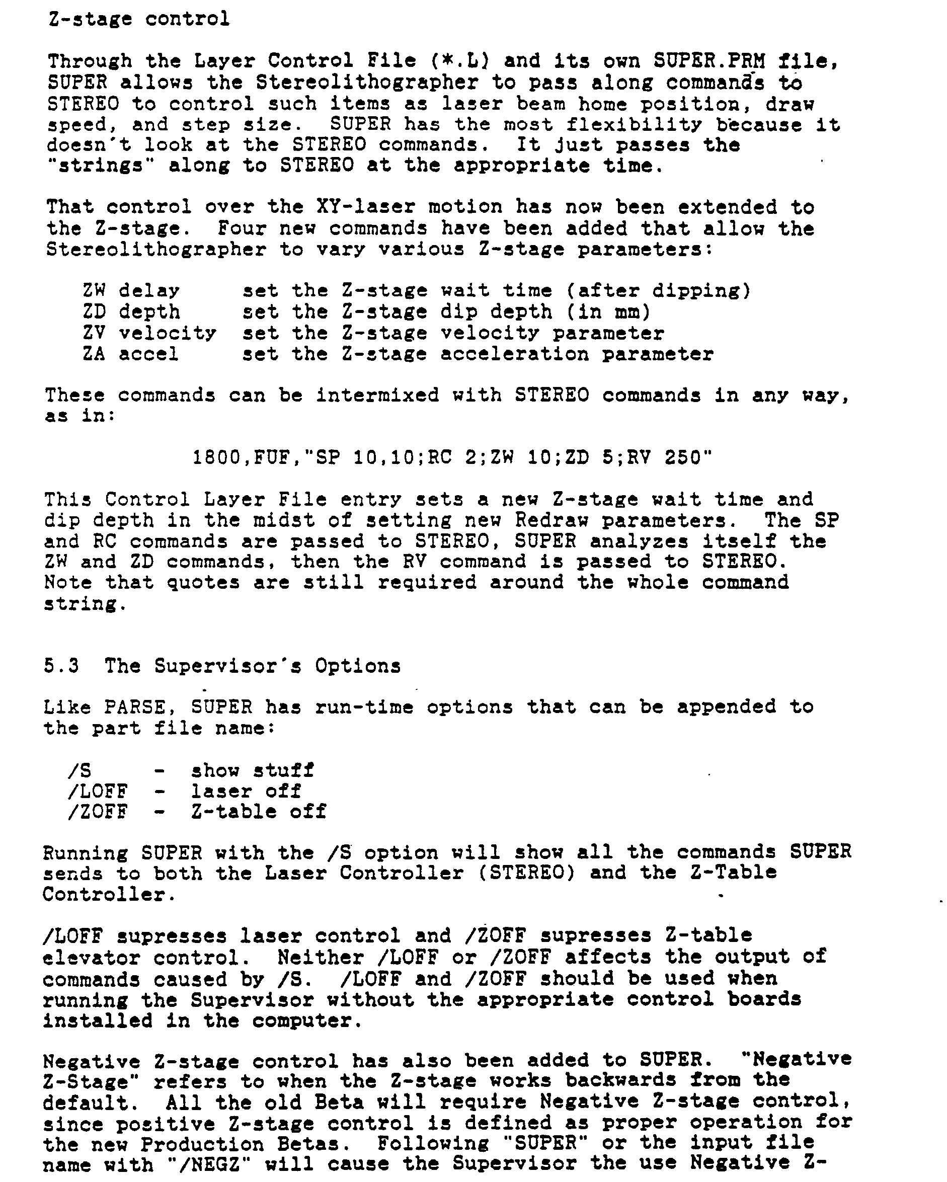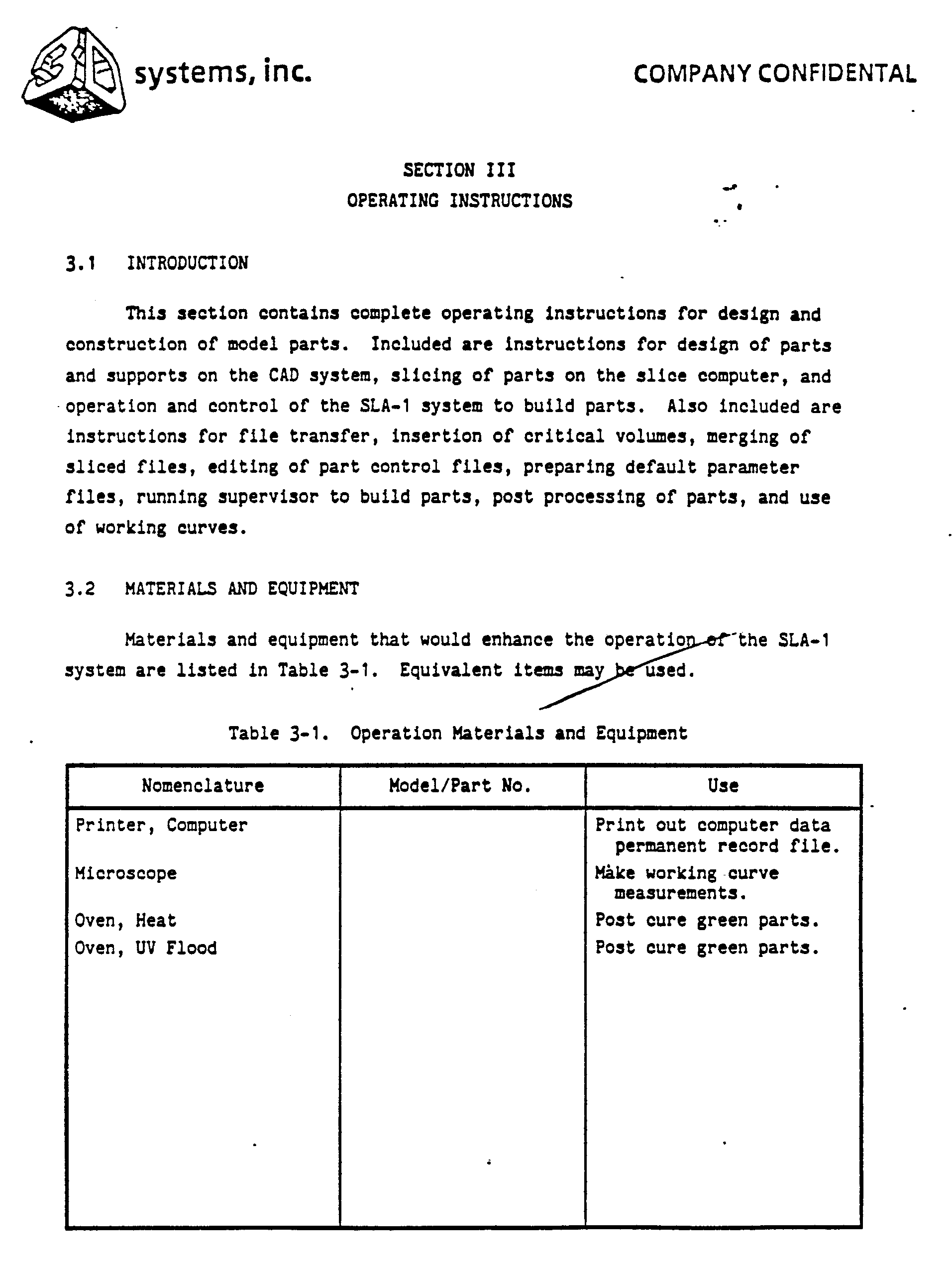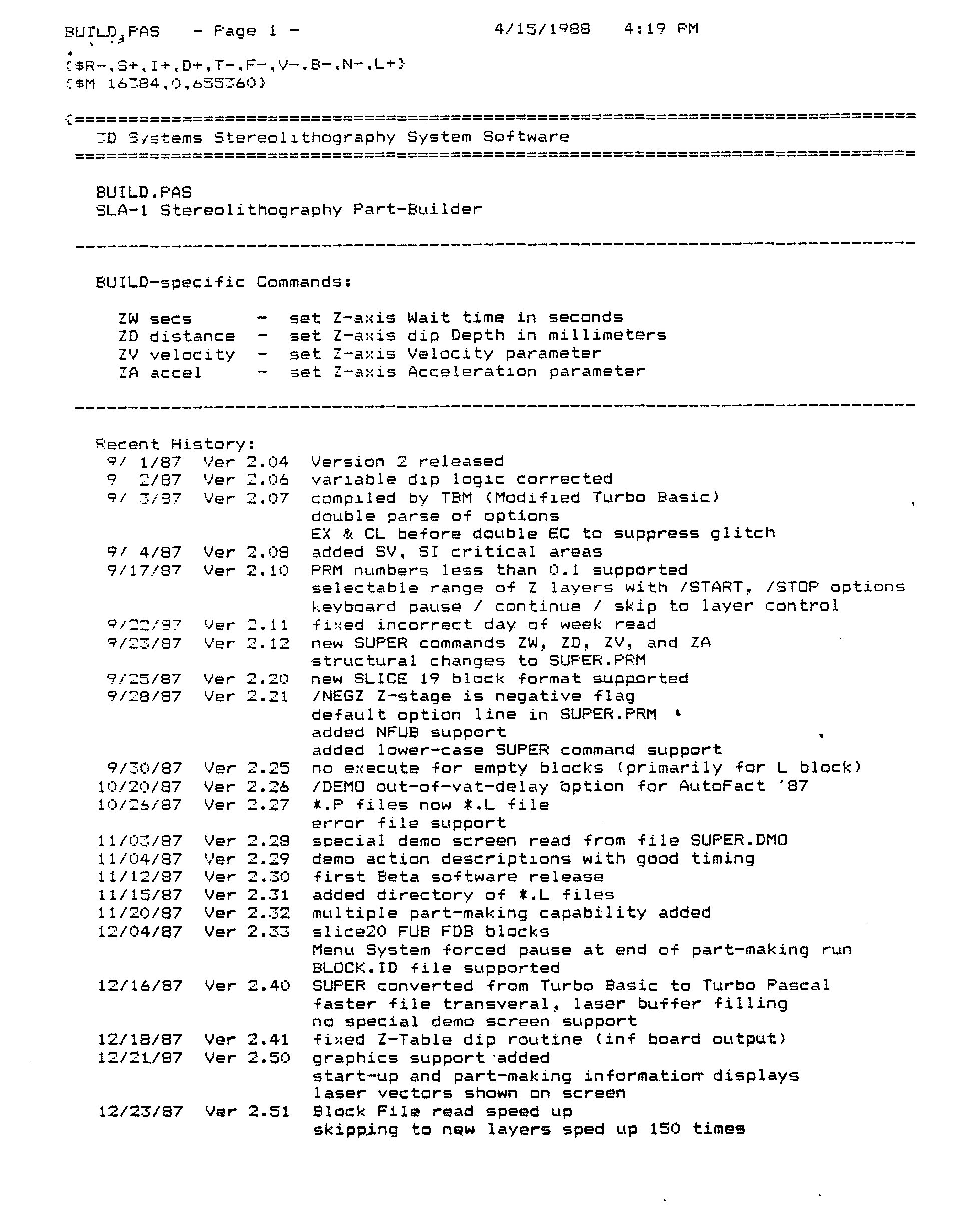 - Appendix B: 3D Systems, Inc., SLA-1 Software Manual, Beta Release, First Draft, October, 1987