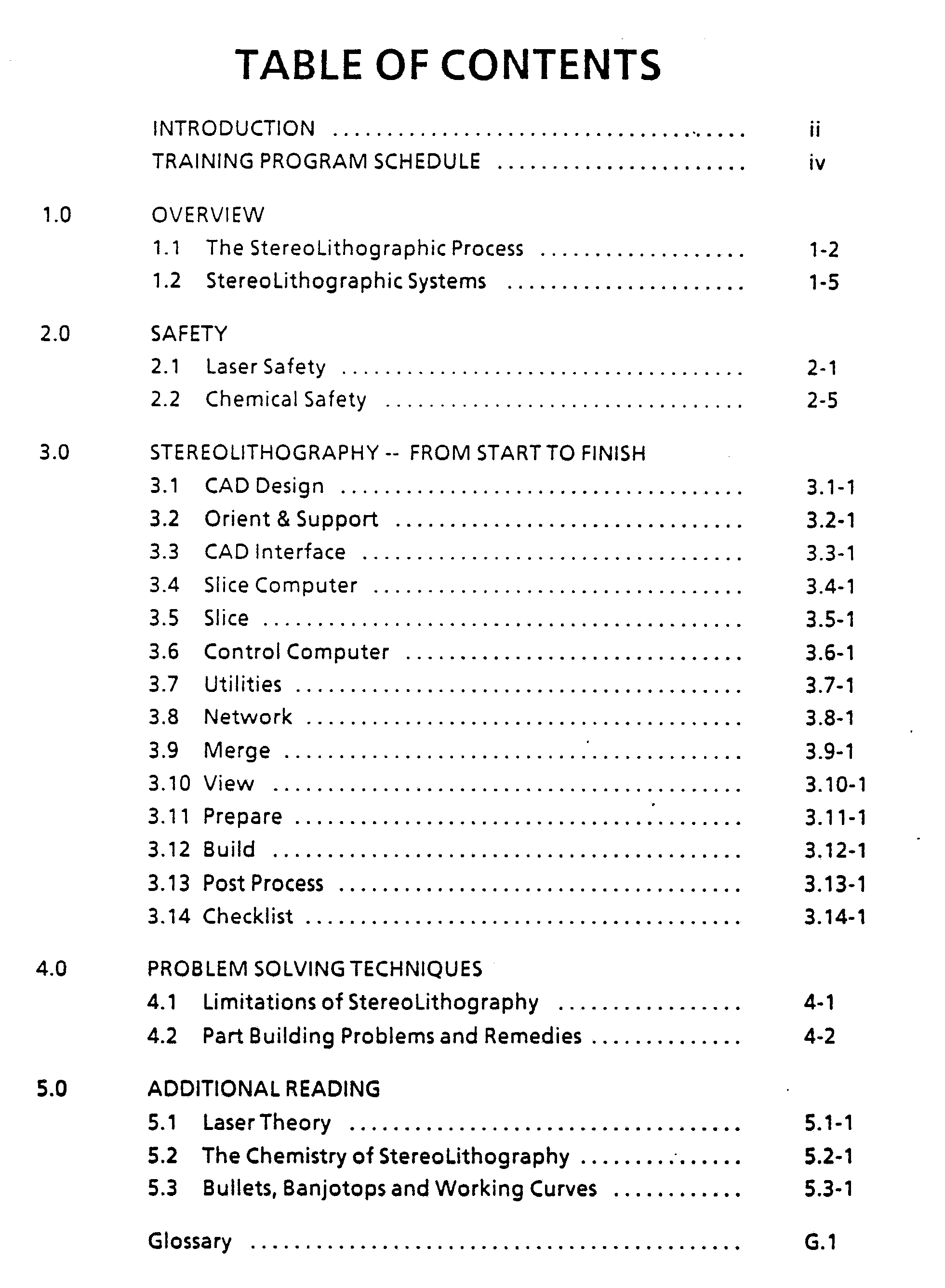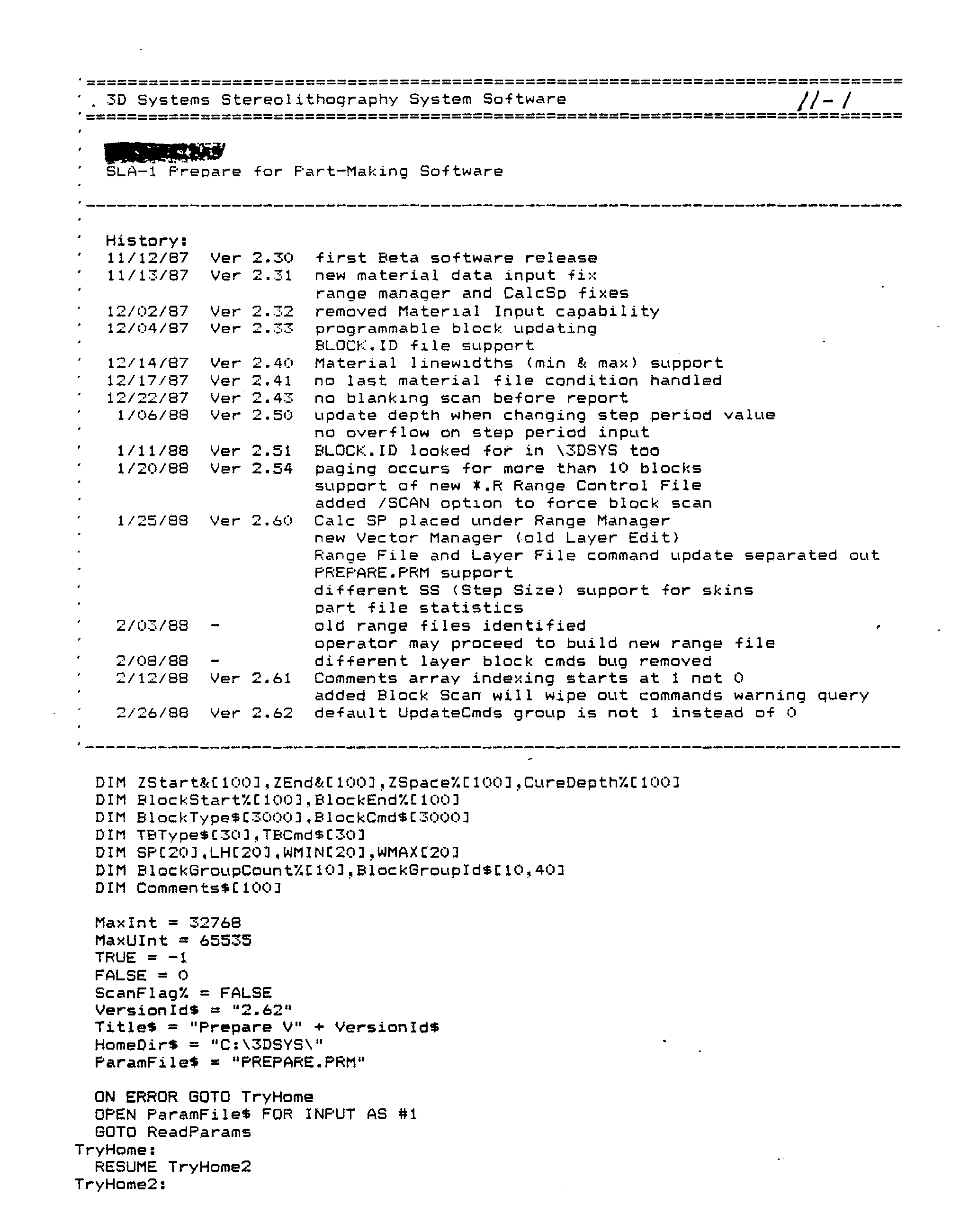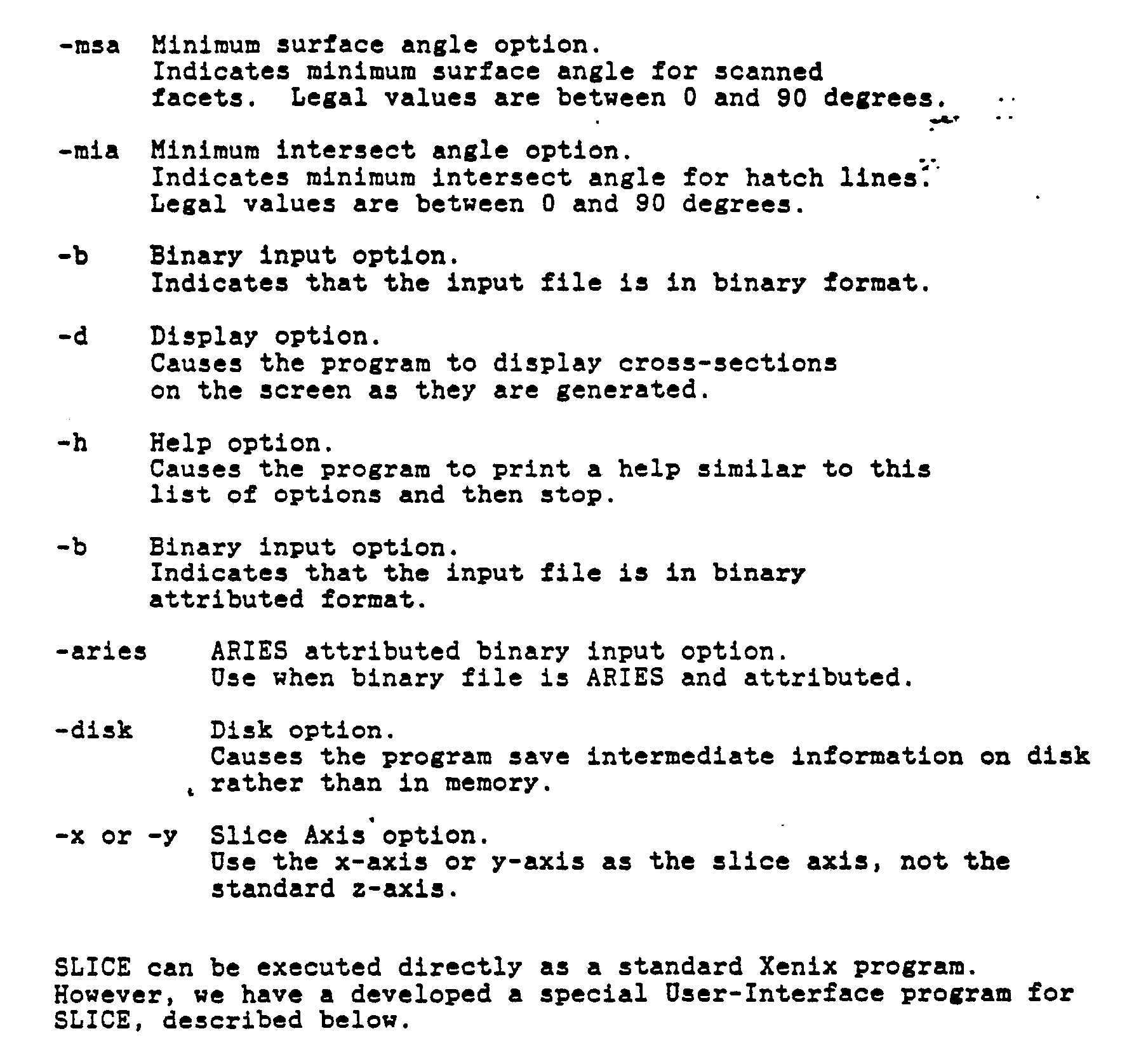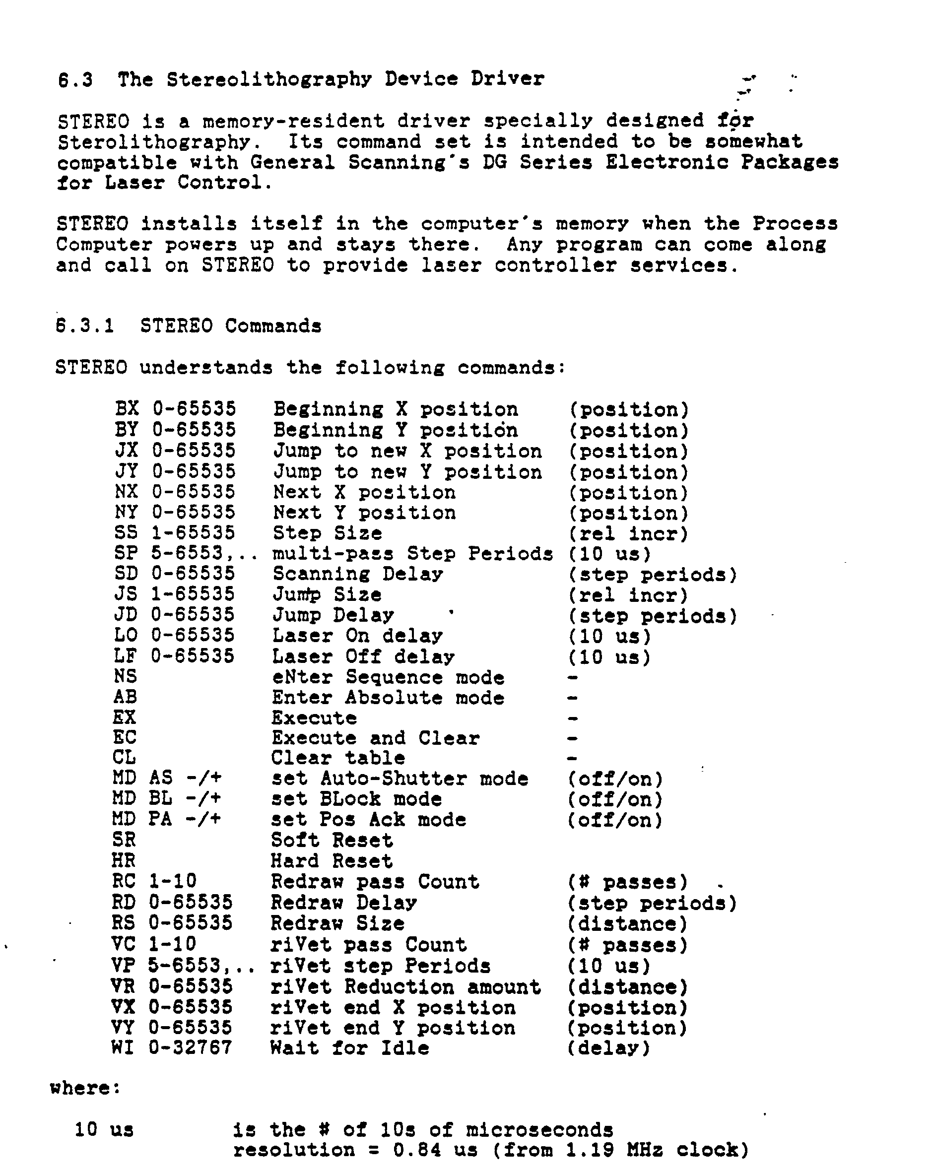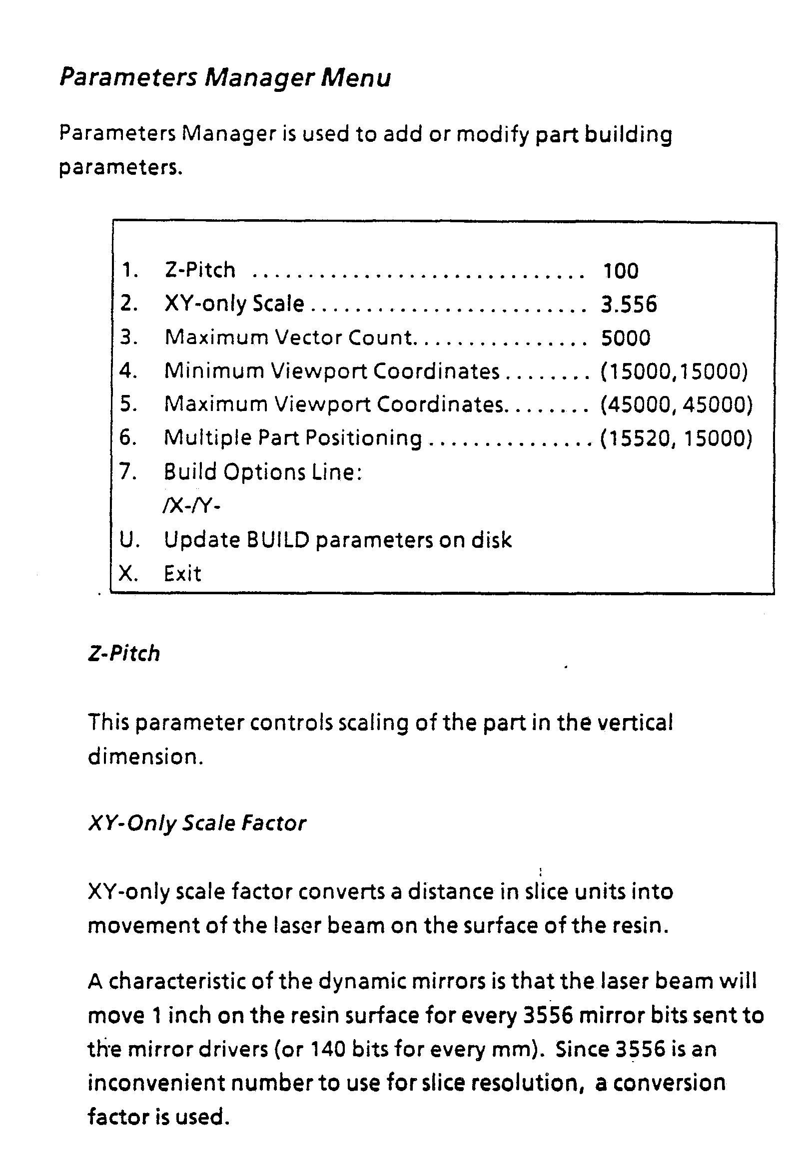 - Appendix B: 3D Systems, Inc., SLA-1 Software Manual, Beta Release, First Draft, October, 1987