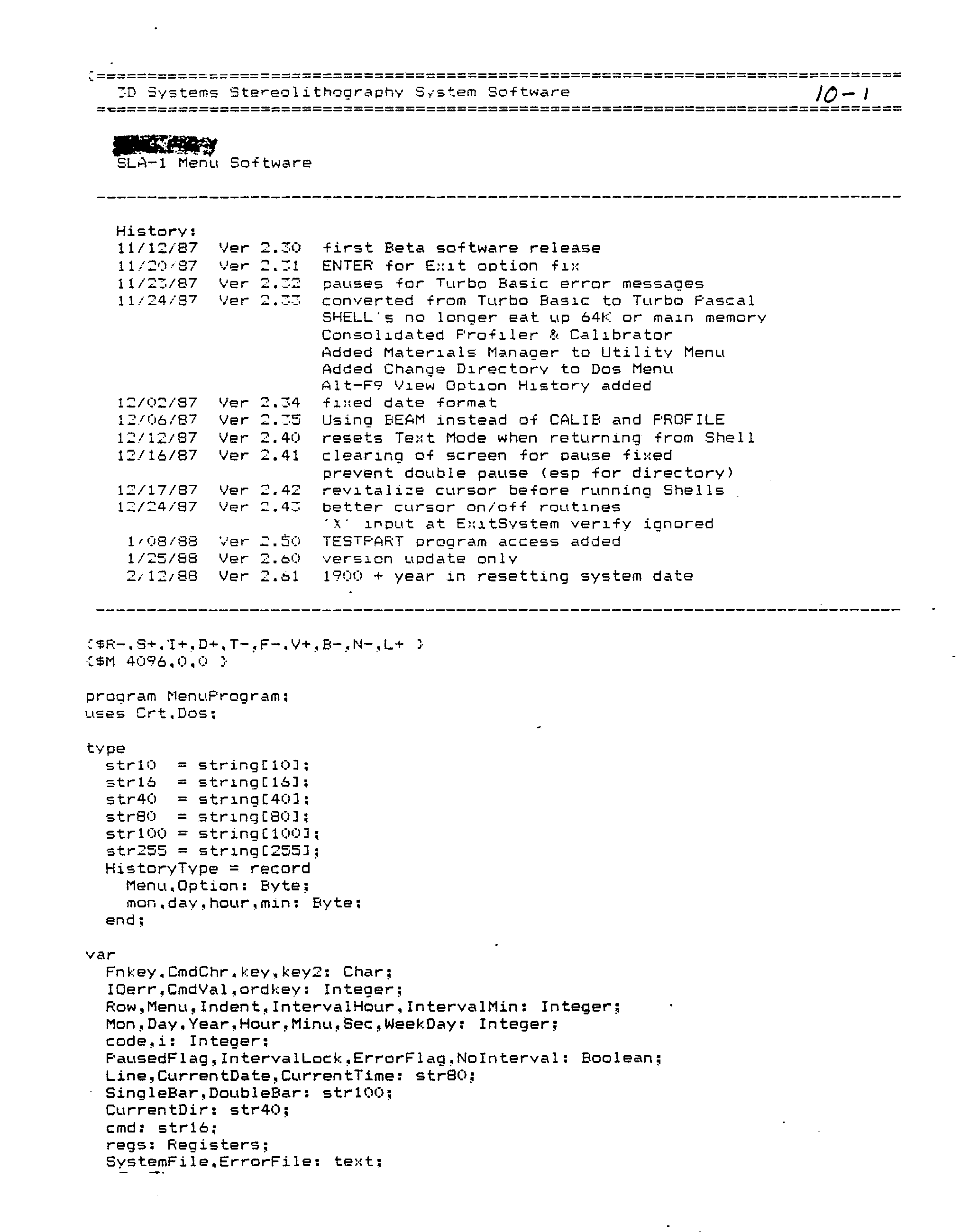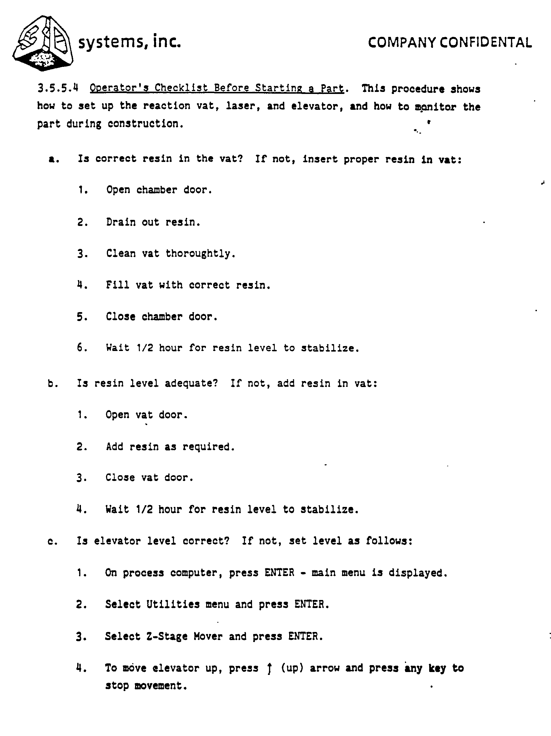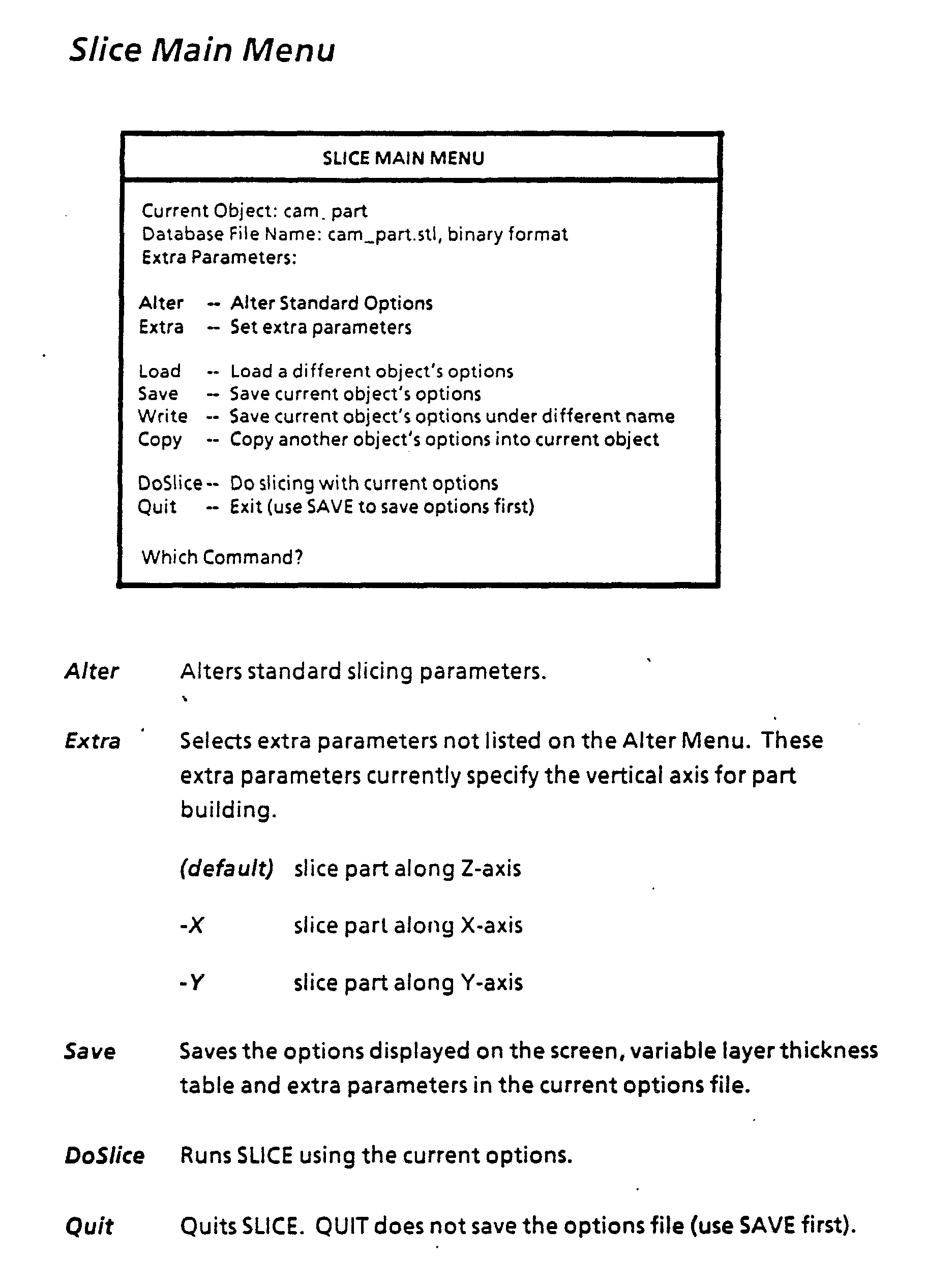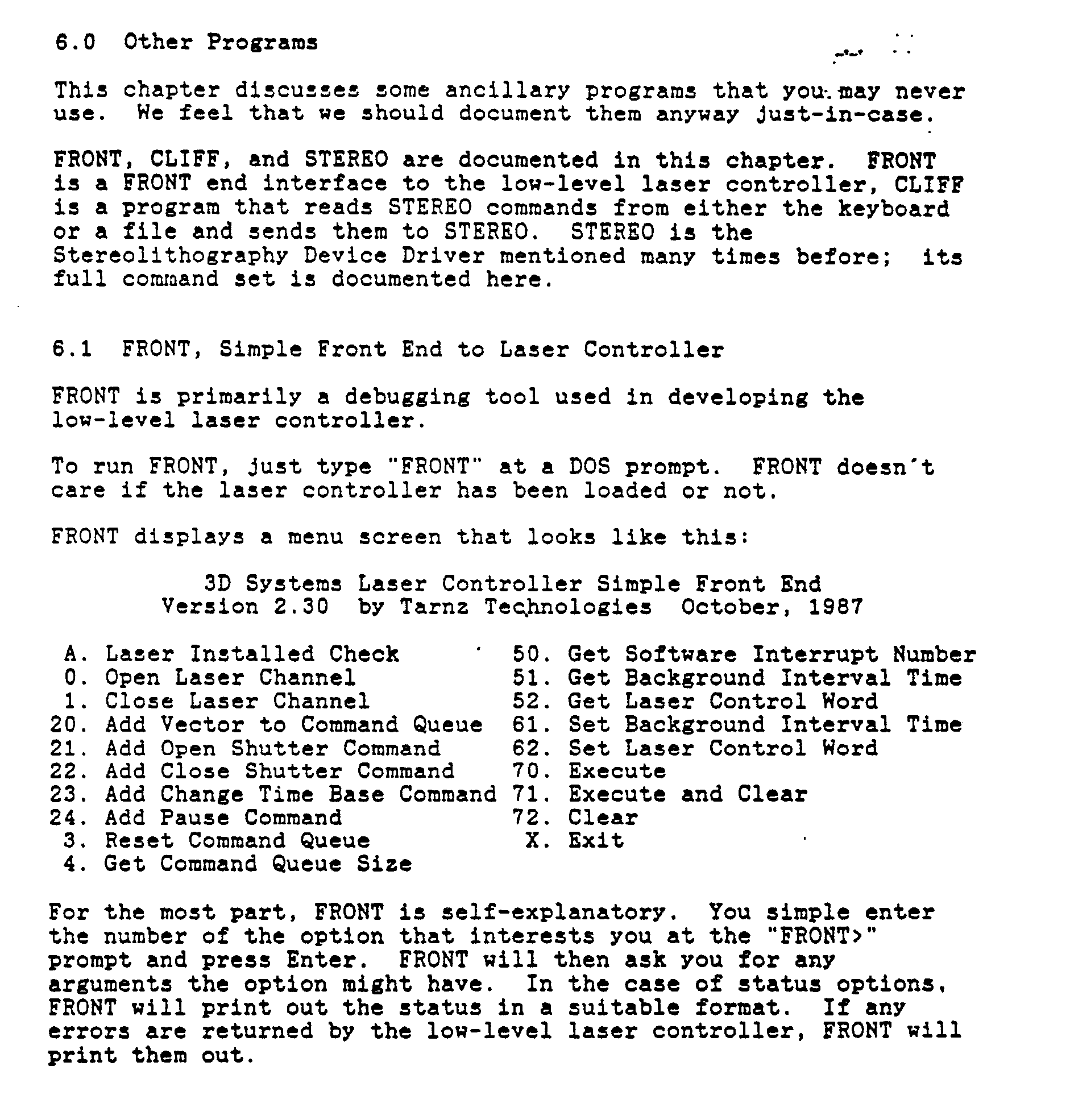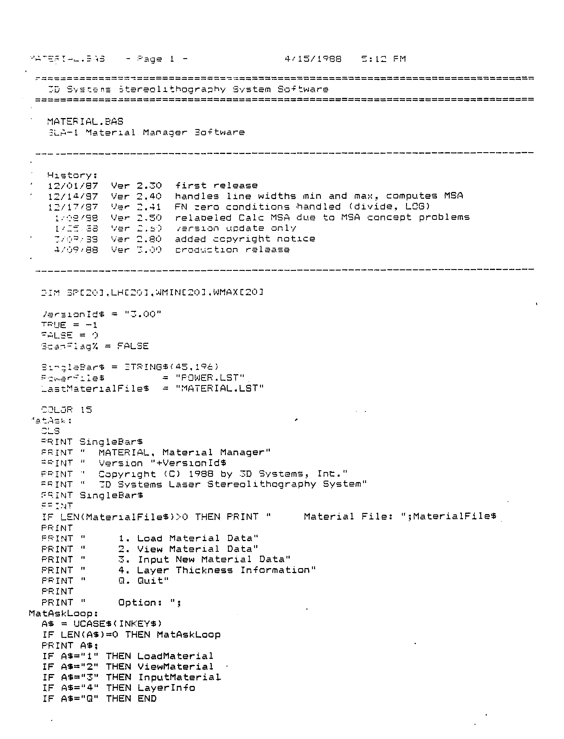 - Appendix B: 3D Systems, Inc., SLA-1 Software Manual, Beta Release, First Draft, October, 1987