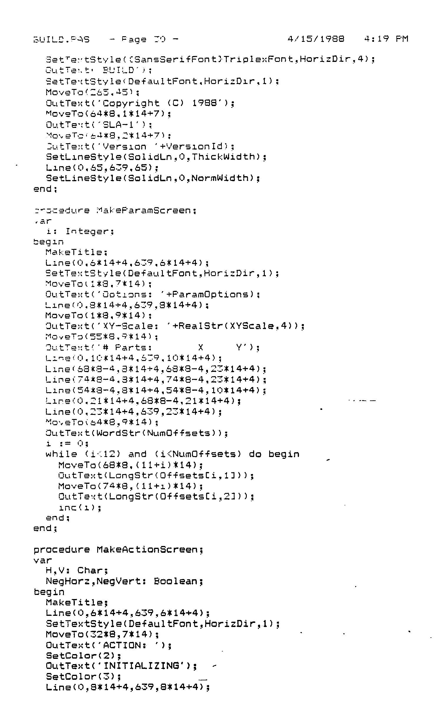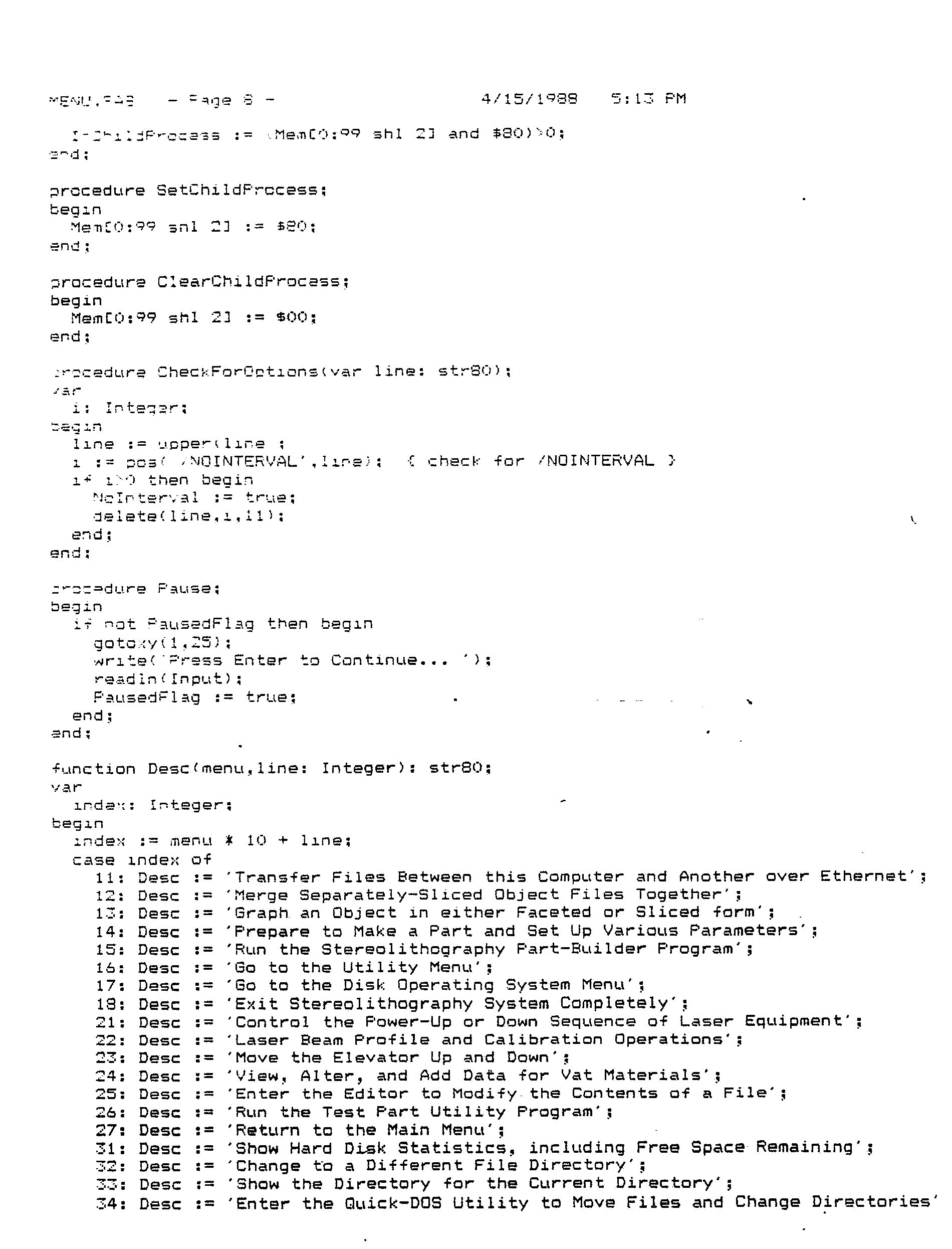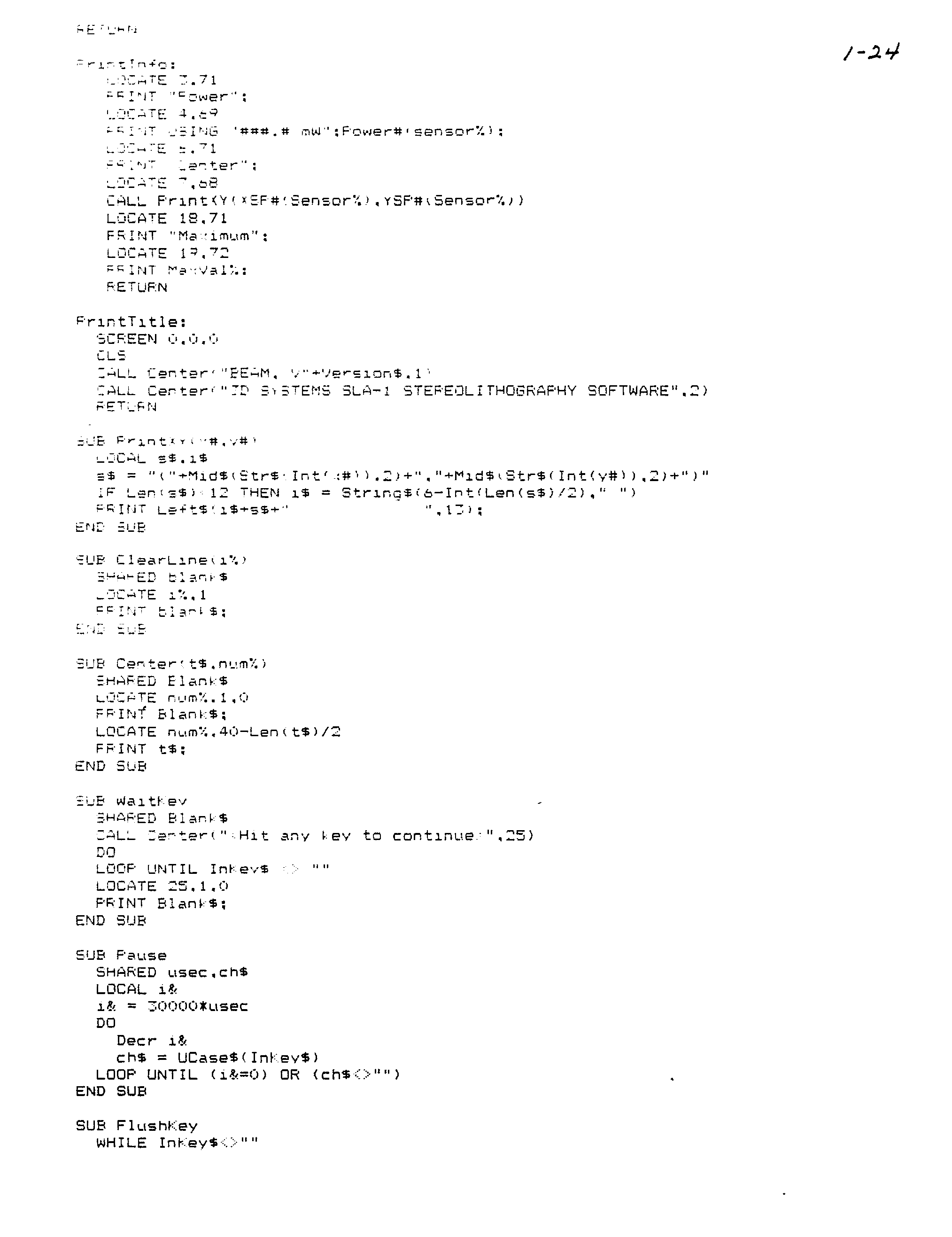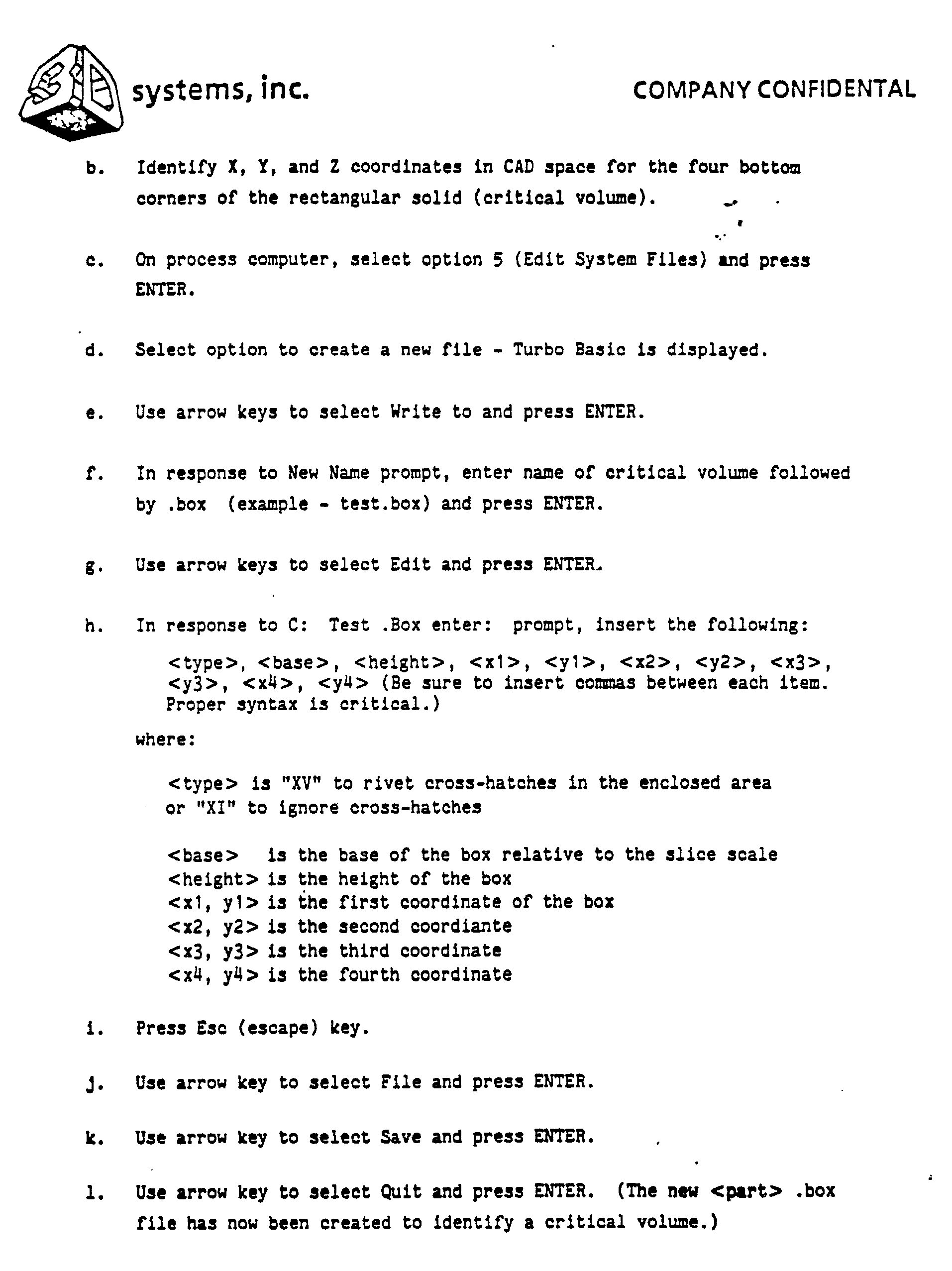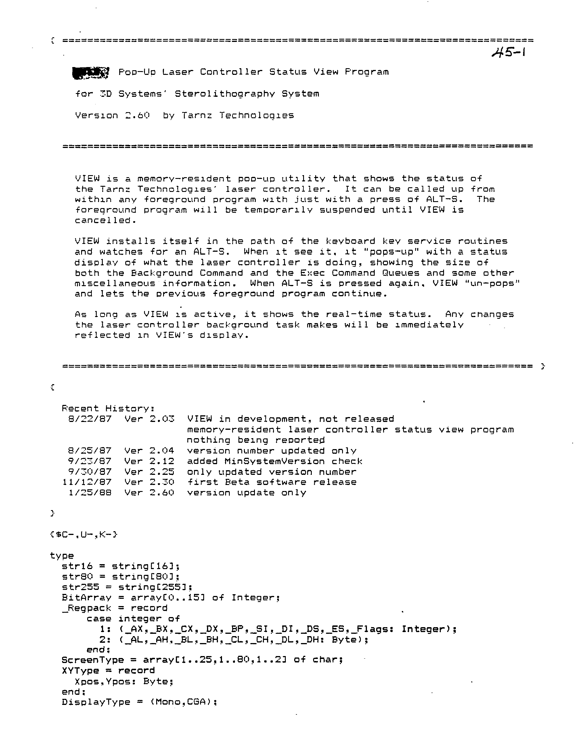 - Appendix B: 3D Systems, Inc., SLA-1 Software Manual, Beta Release, First Draft, October, 1987