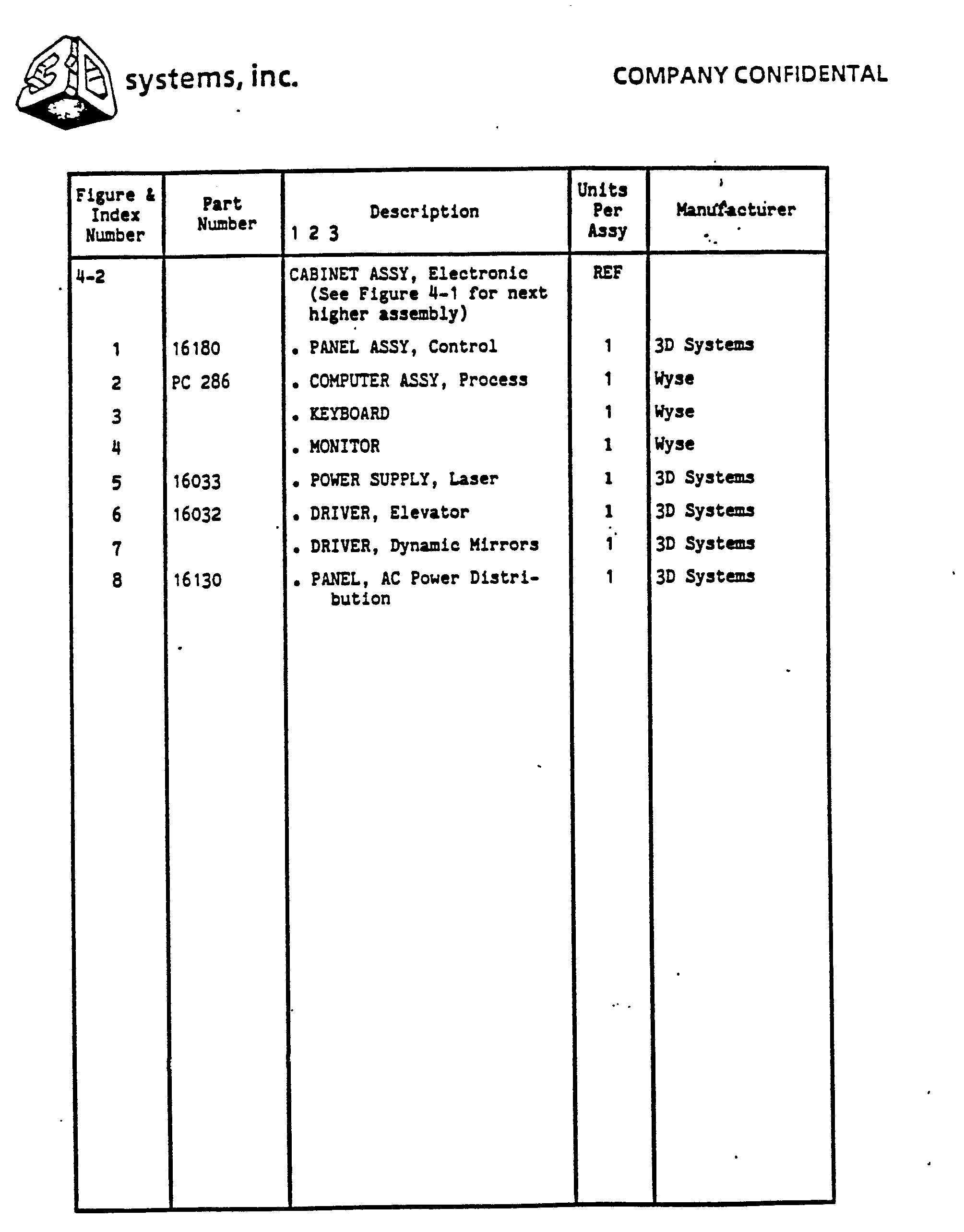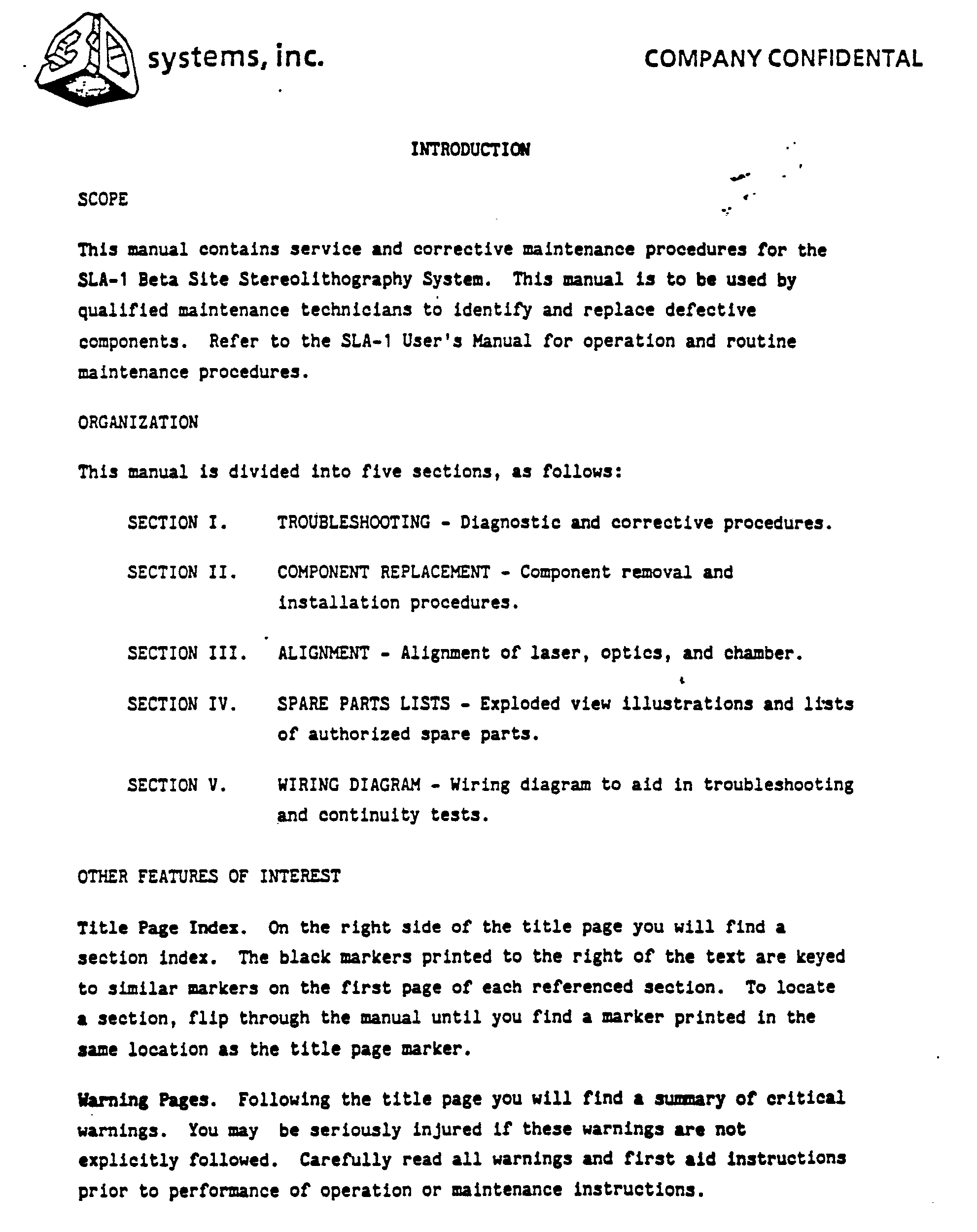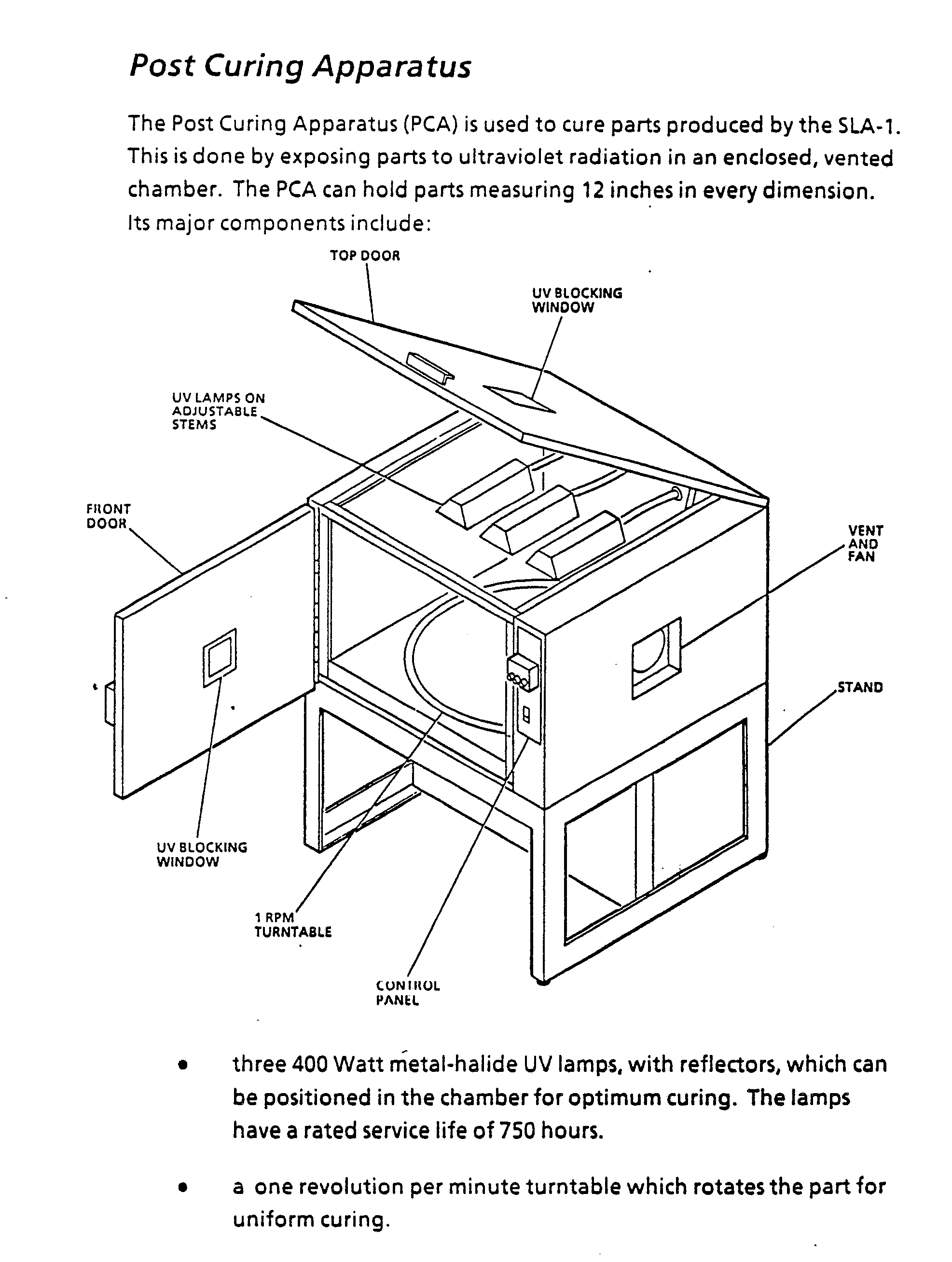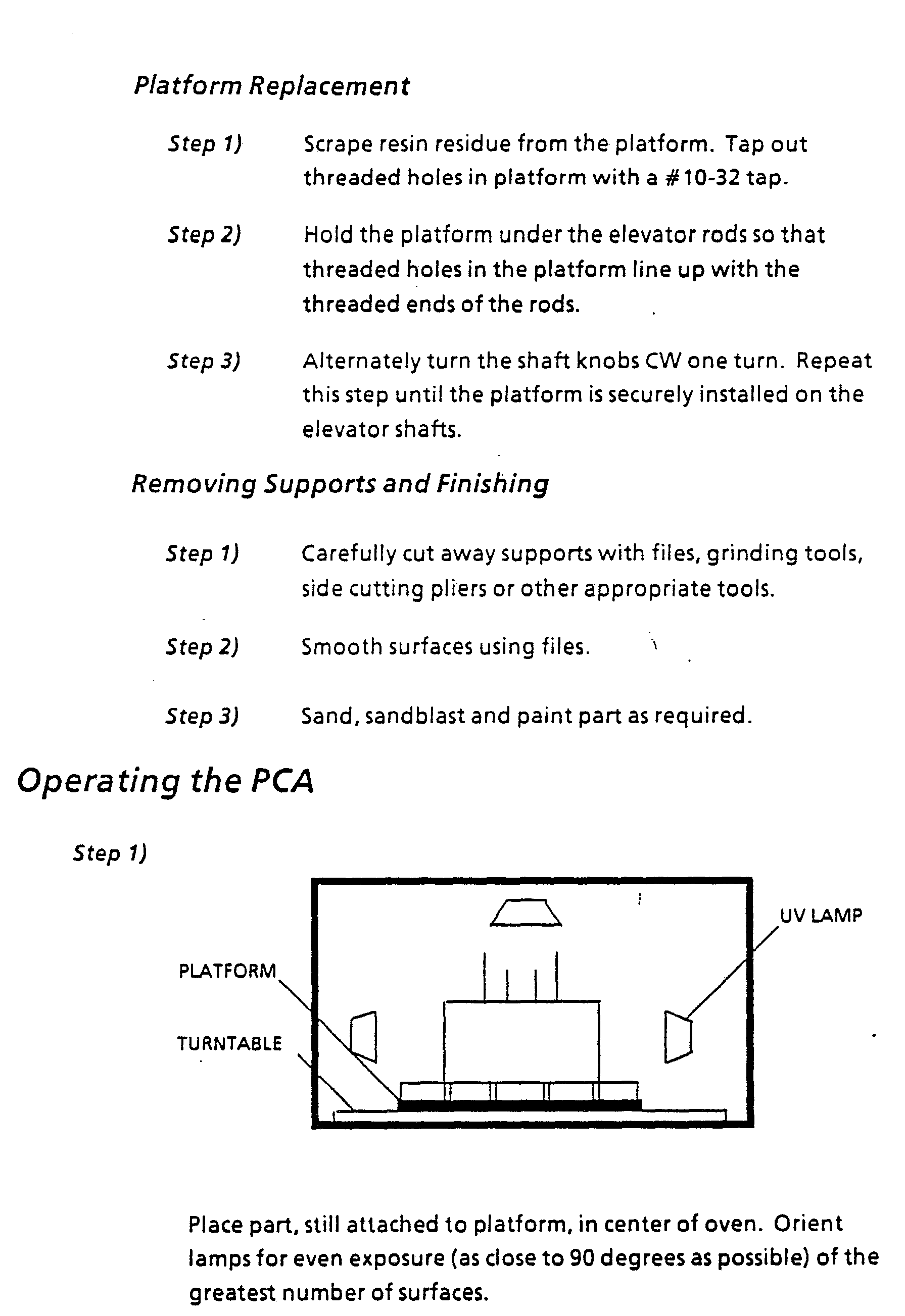 - Appendix A: 3D Systems, Inc., SLA-1 Beta Site Stereolithography System Users Manual and Service Manual, November, 1987