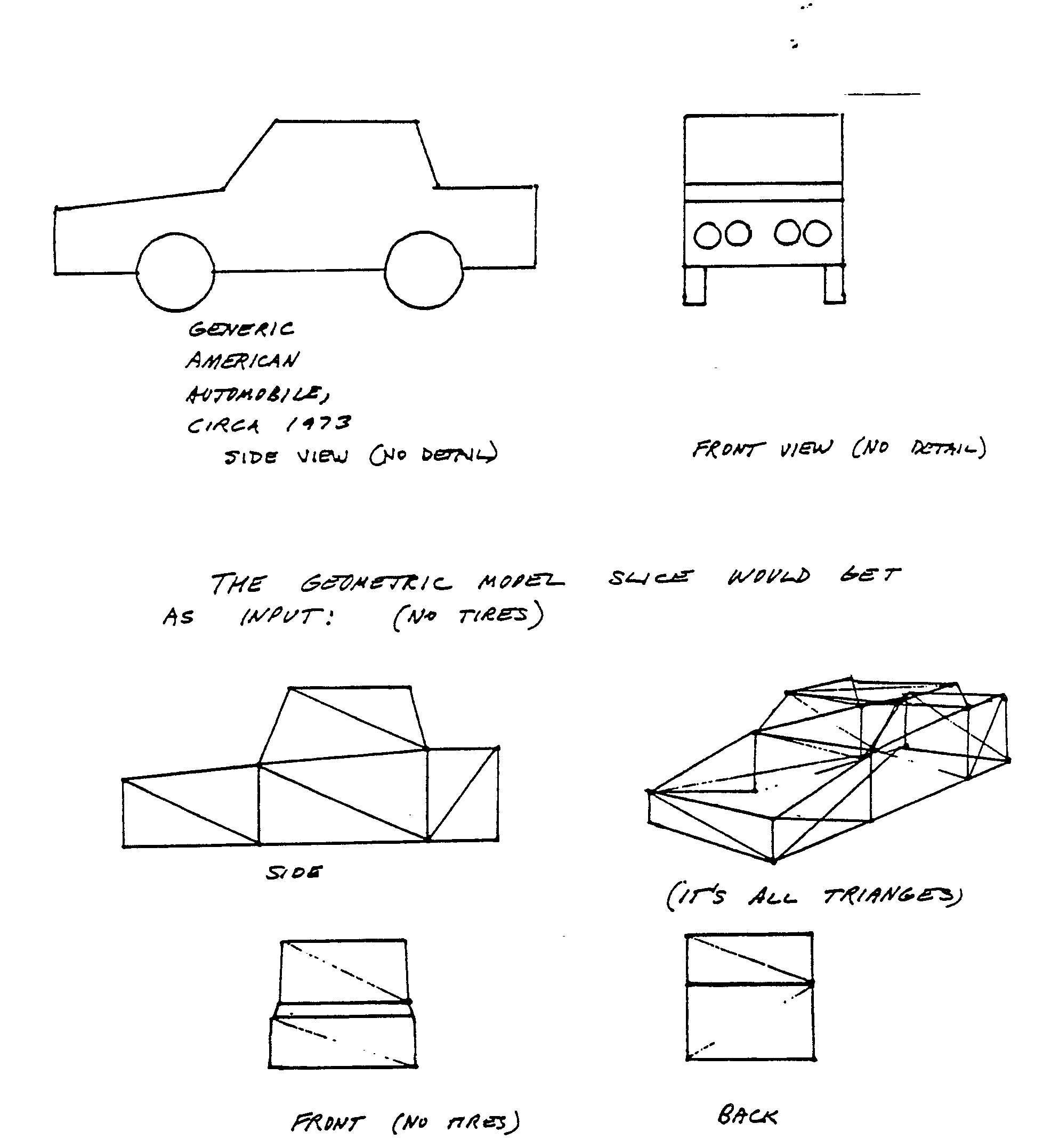 The data base of a CAD system can take several forms. One form consists of representing the surface of an object as a mesh of polygons, typically triangles. These triangles completely form the inner and outer surfaces of the object. This CAD representation also includes a unit length normal vector for each triangle. The normal points away from the solid which the triangle is bounding and indicate slope. This invention provides a means of processing CAD data, which may be provided as "PHIGS" or the like, into layer-by-layer vector data that can be used for forming models through stereolithography. Such information may ultimately be converted to raster scan output data or the like, without in any way departing from the spirit and scope of the invention.