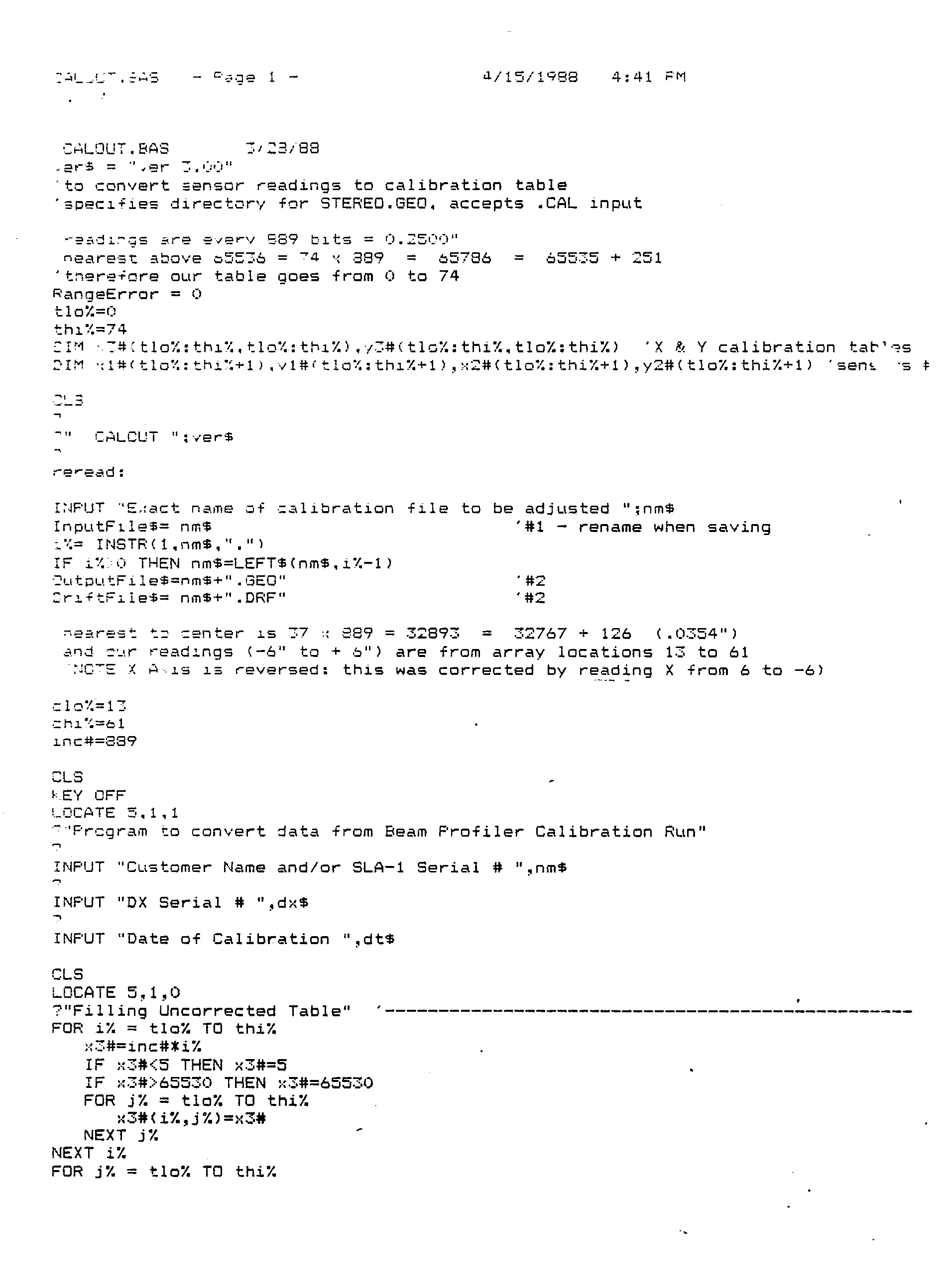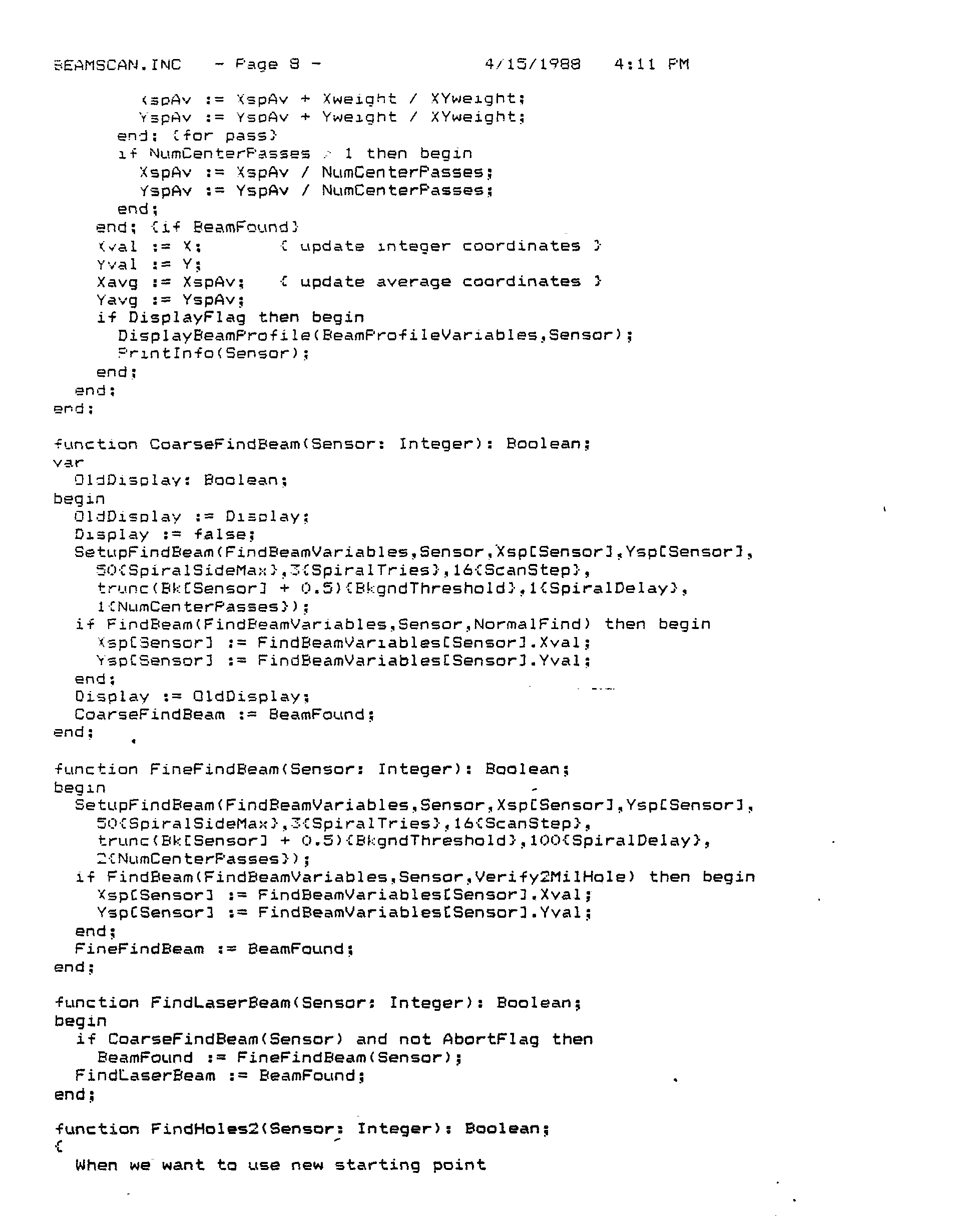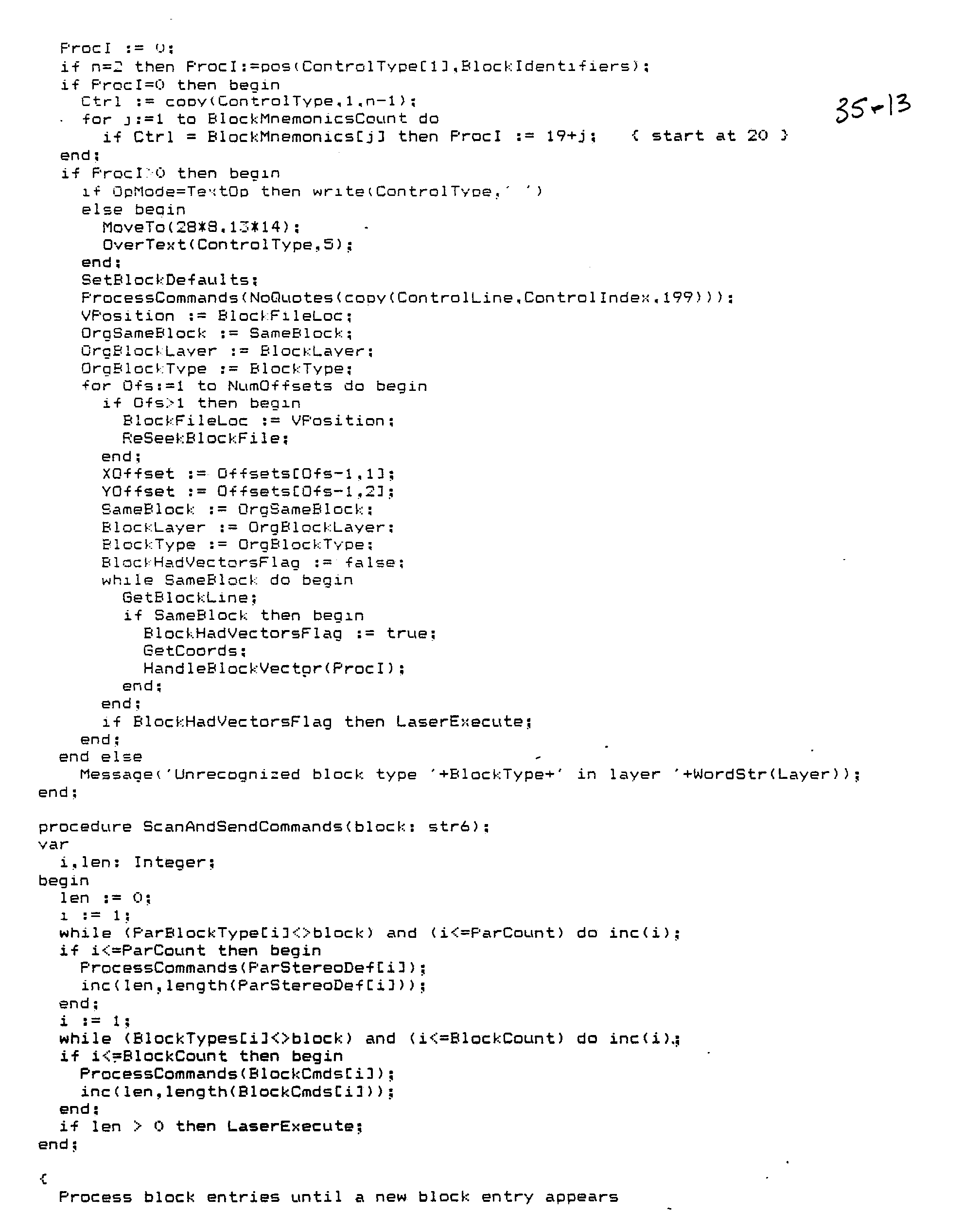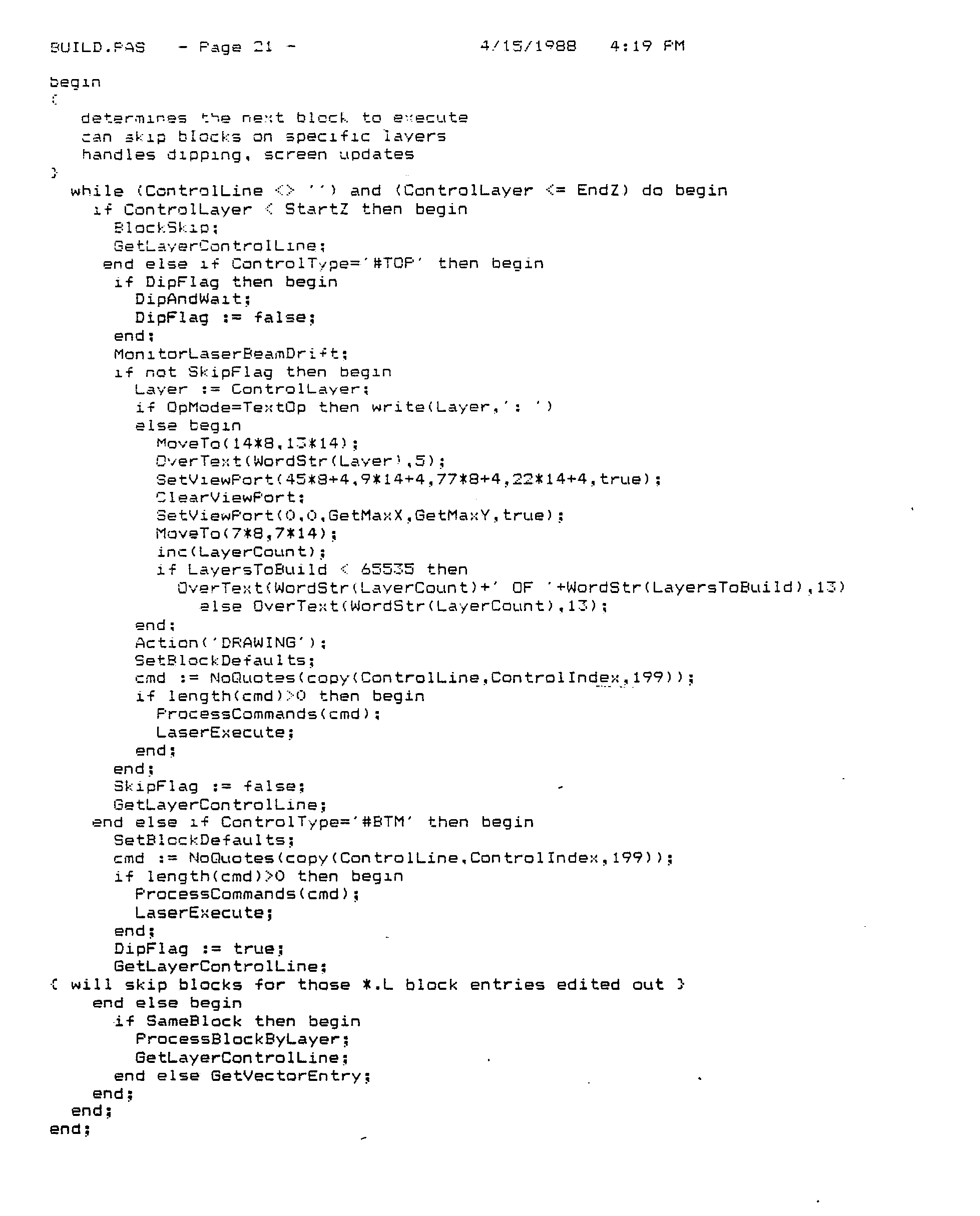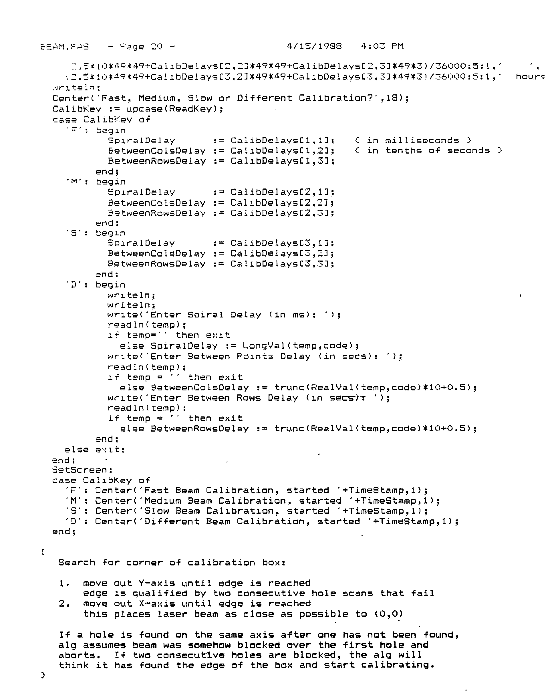Beam width compensation is presently implemented in SLICE version 3.20. Several steps have been added to SLICE version 3.20 for beam width compensation, which steps are not reflected in Figures 58 and 72. These steps will now be described.