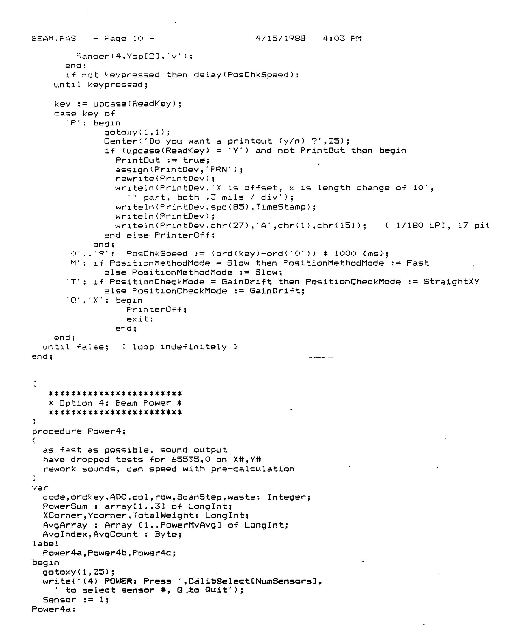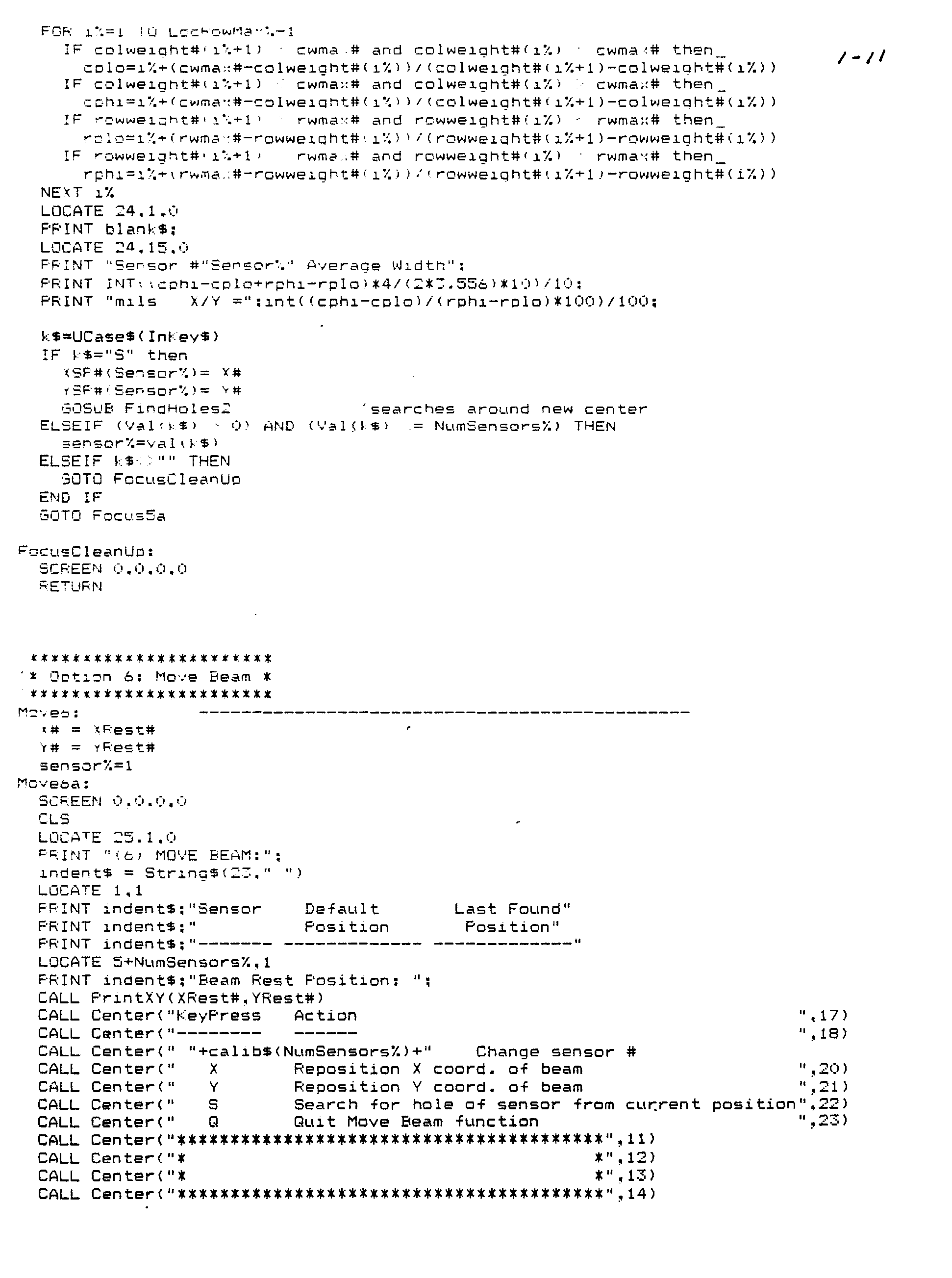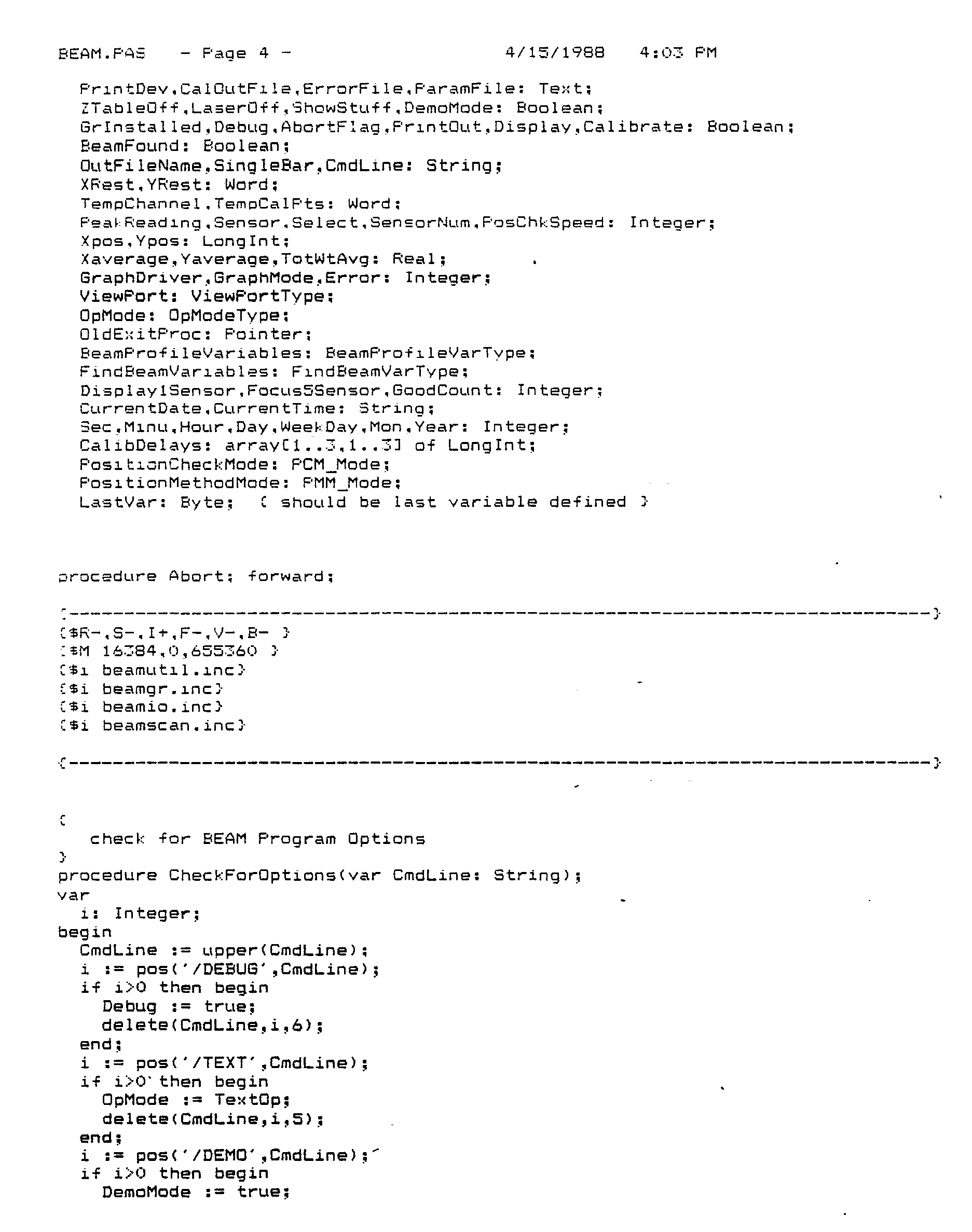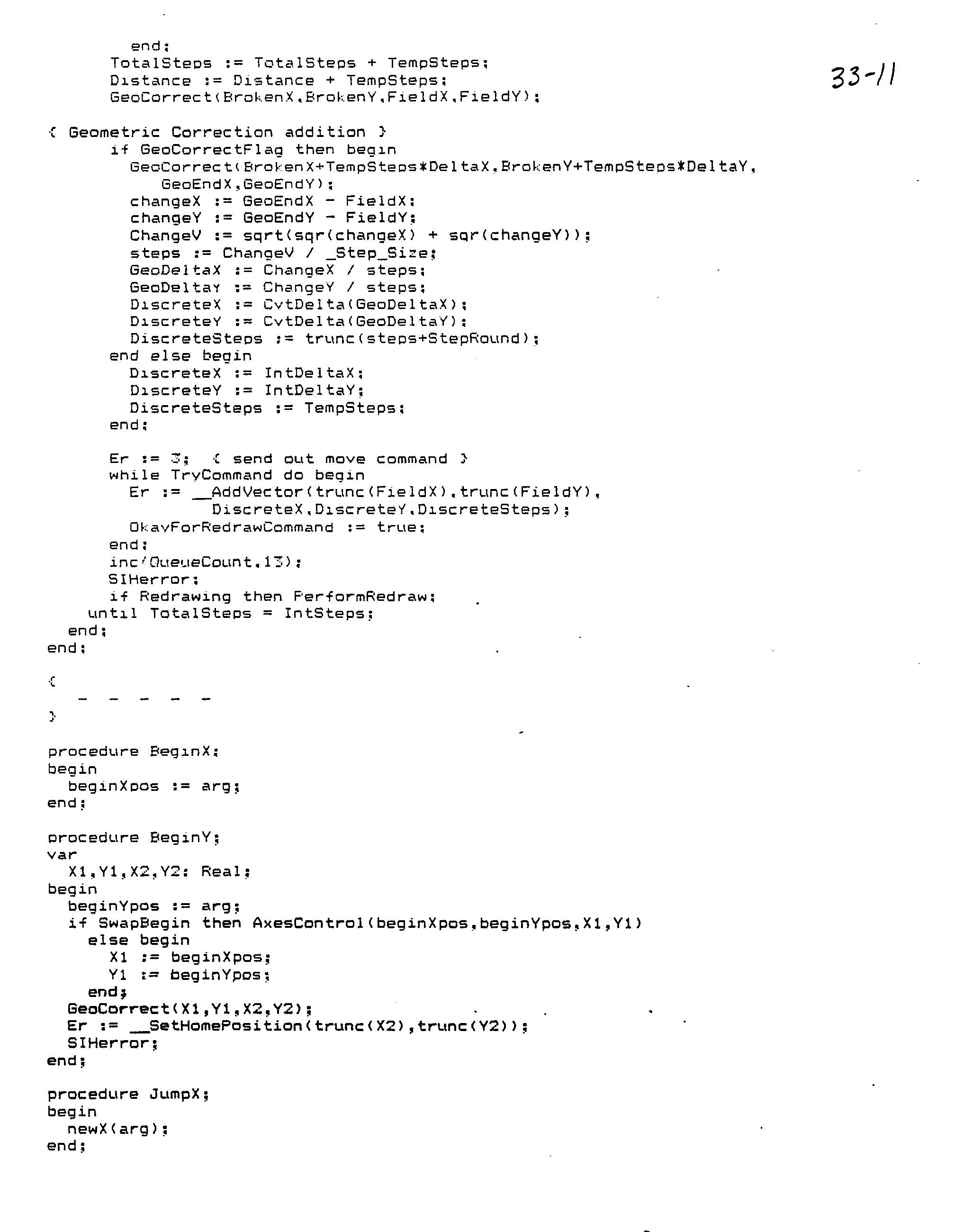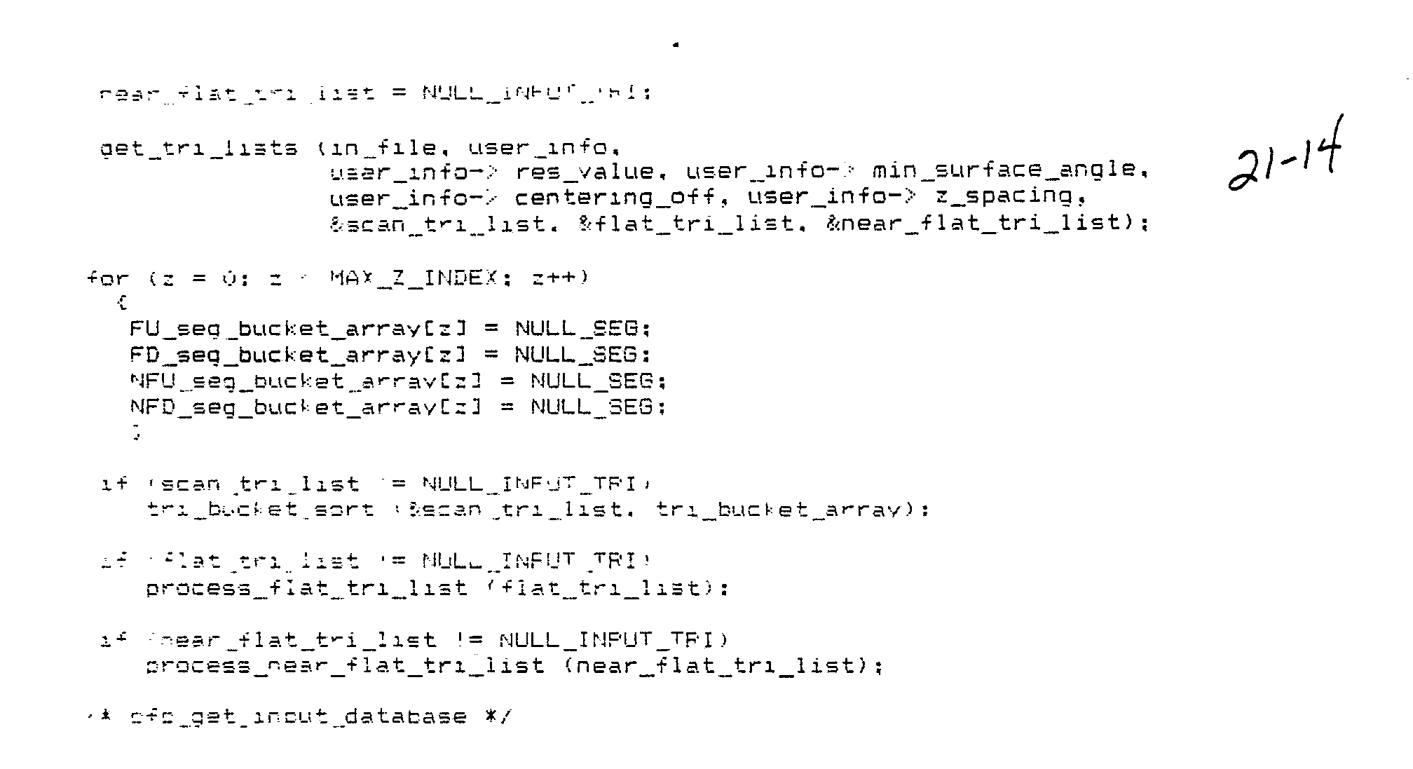 Beam width compensation is presently implemented in SLICE version 3.20. Several steps have been added to SLICE version 3.20 for beam width compensation, which steps are not reflected in Figures 58 and 72. These steps will now be described.