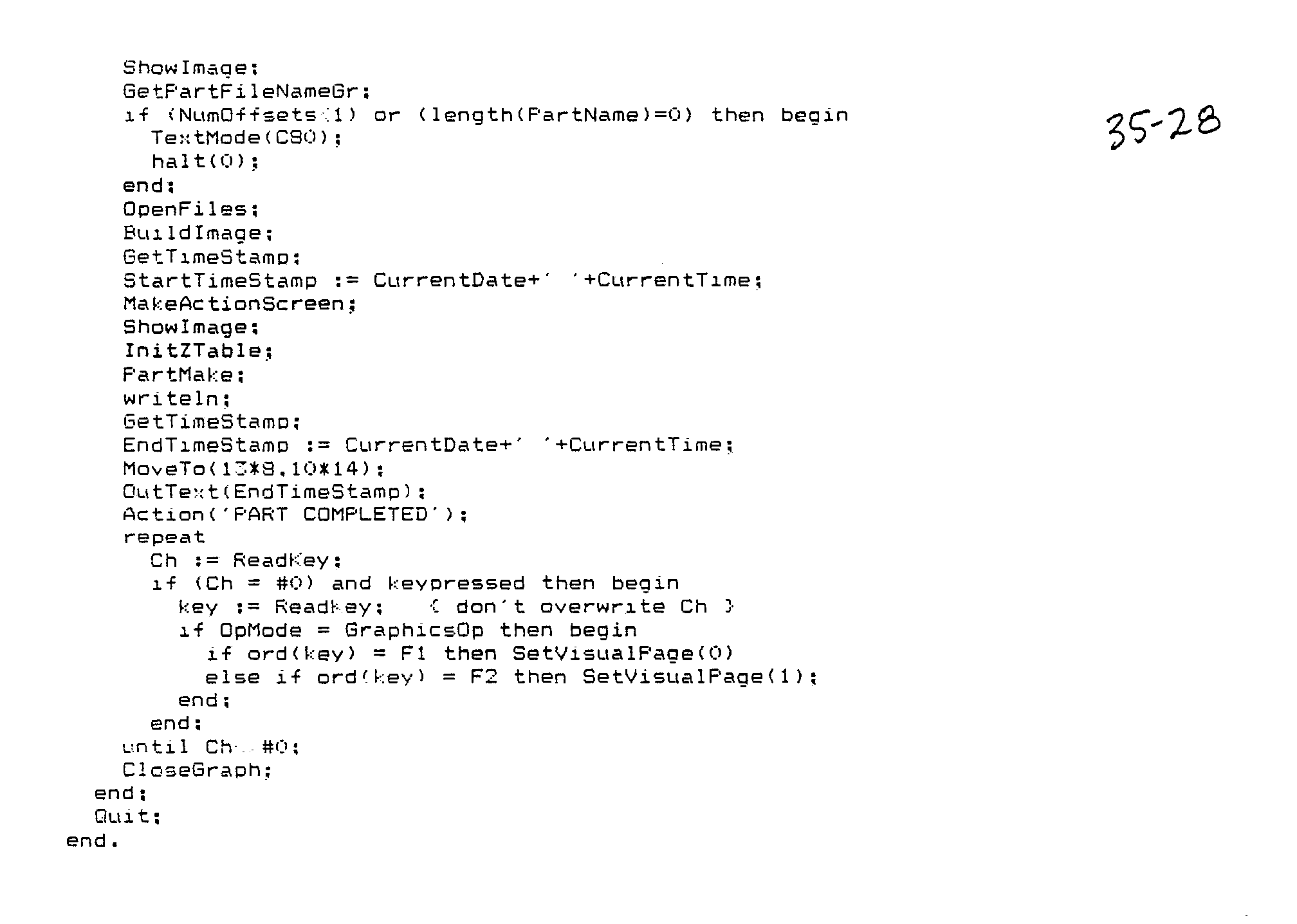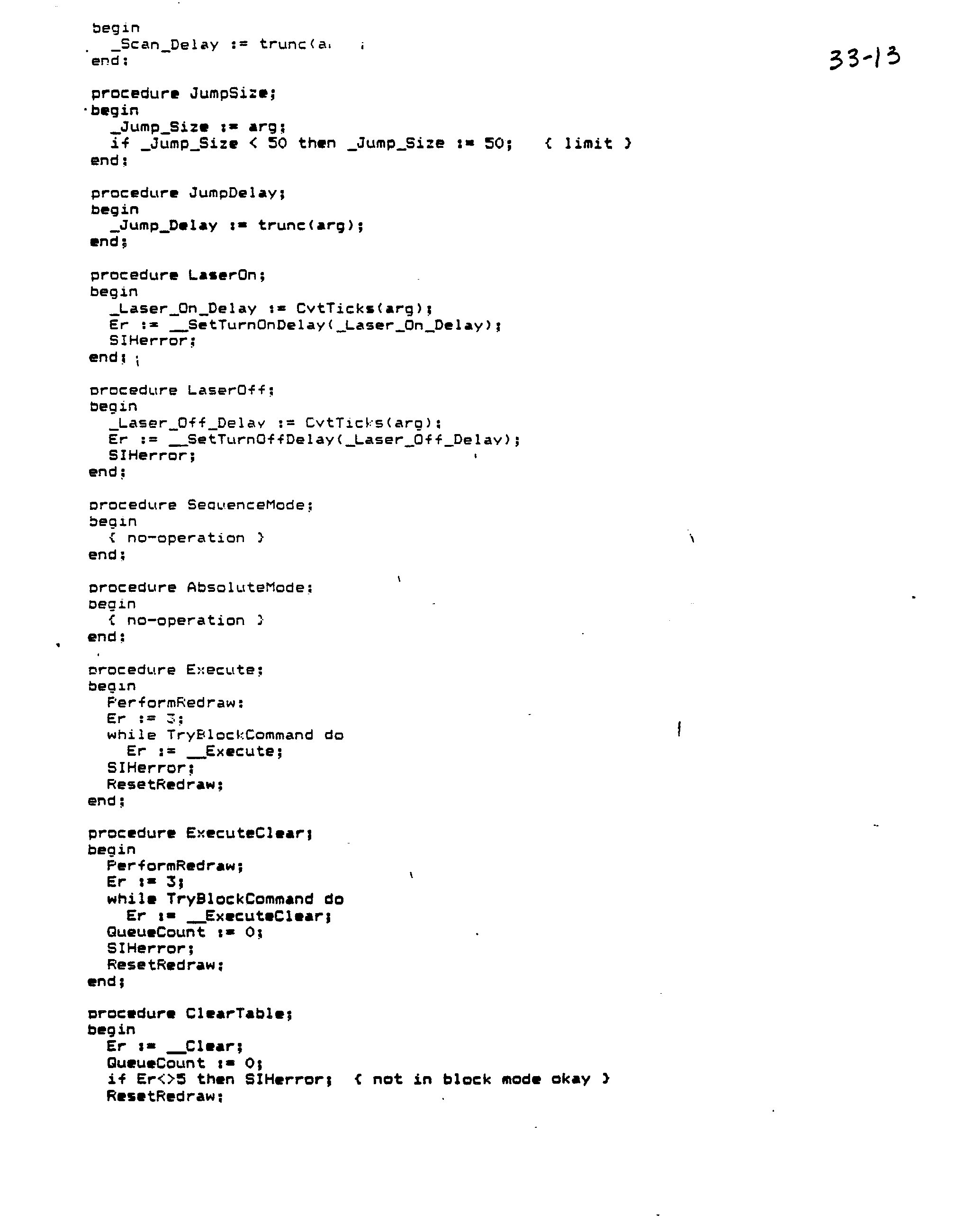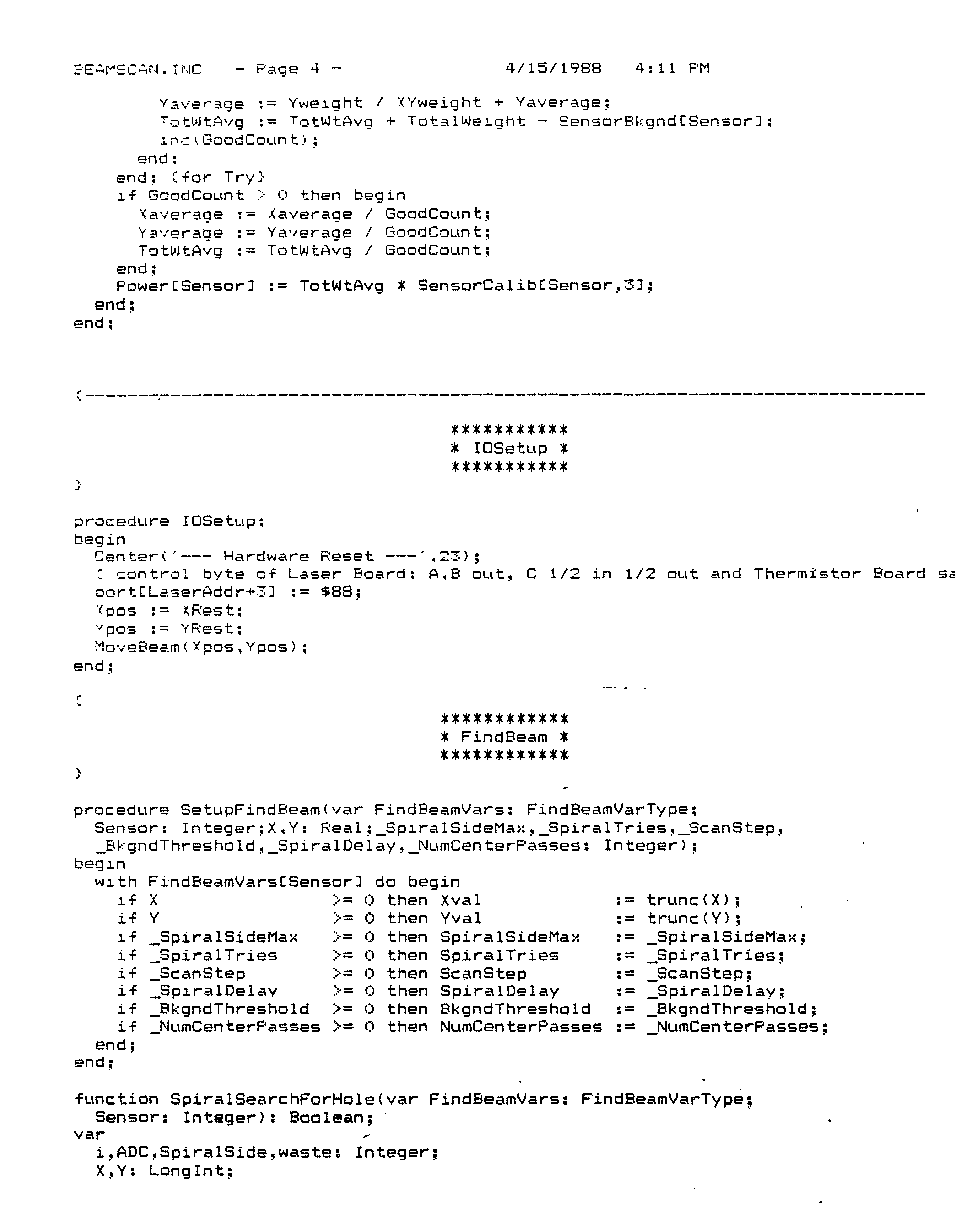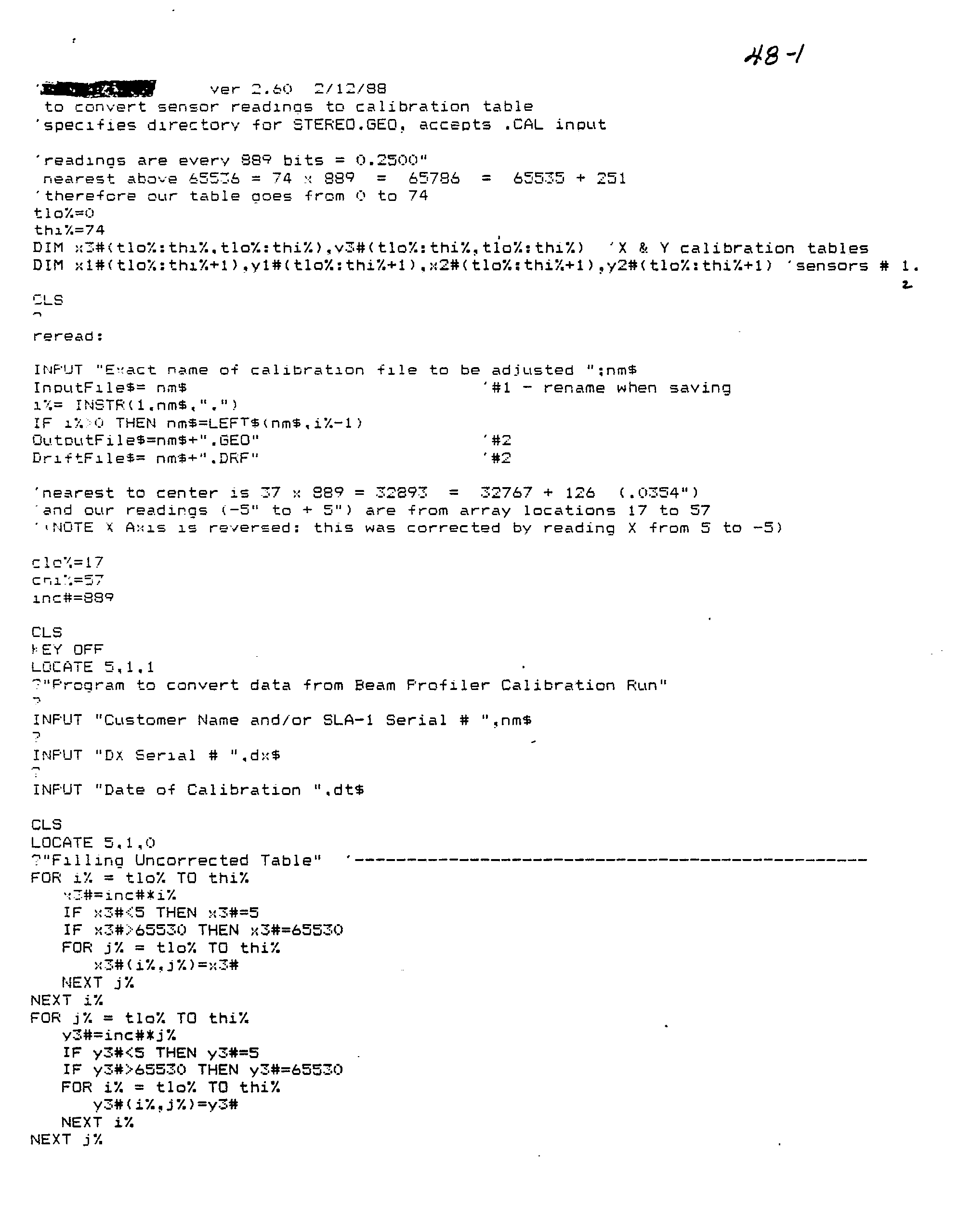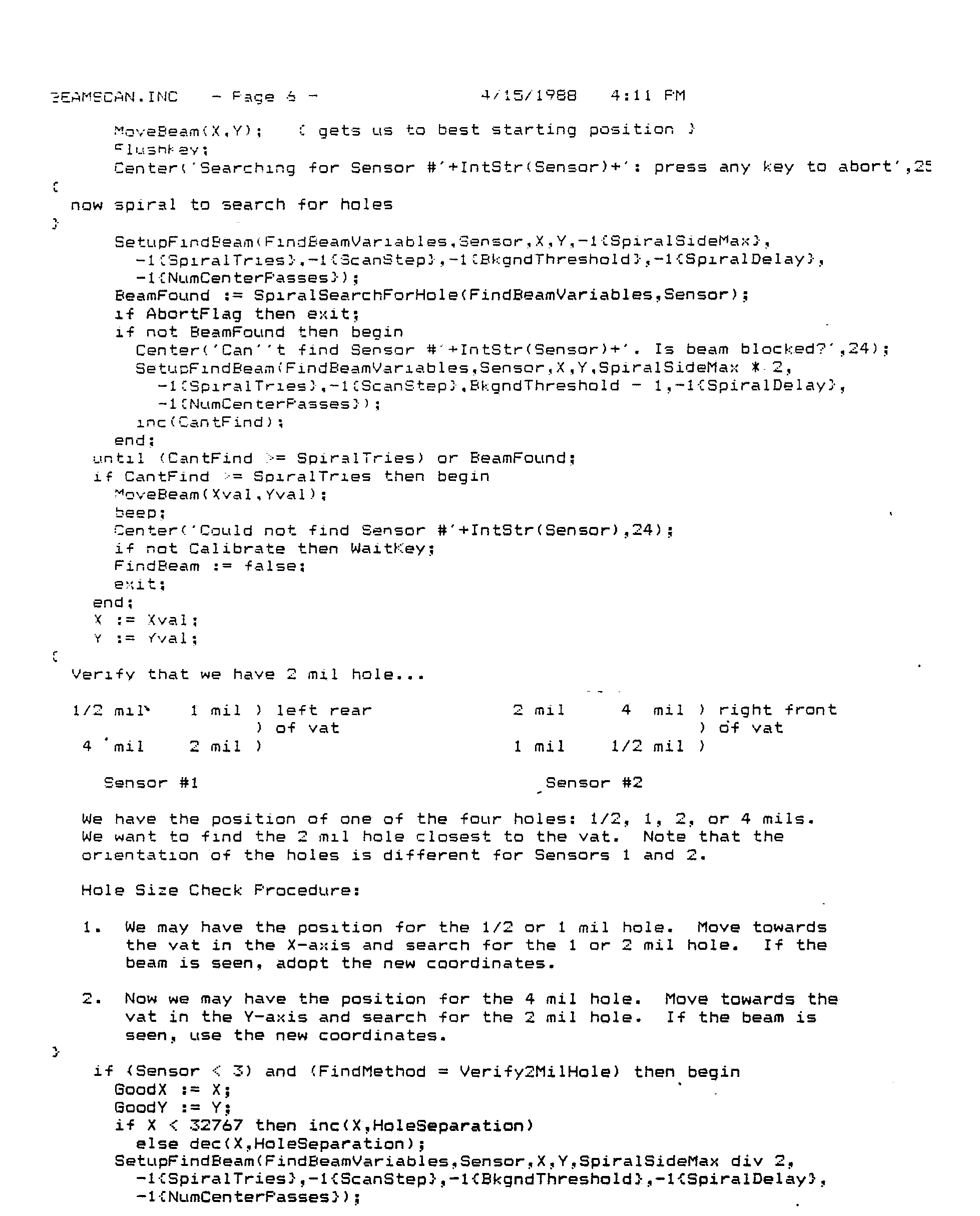 Beam width compensation is presently implemented in SLICE version 3.20. Several steps have been added to SLICE version 3.20 for beam width compensation, which steps are not reflected in Figures 58 and 72. These steps will now be described.
