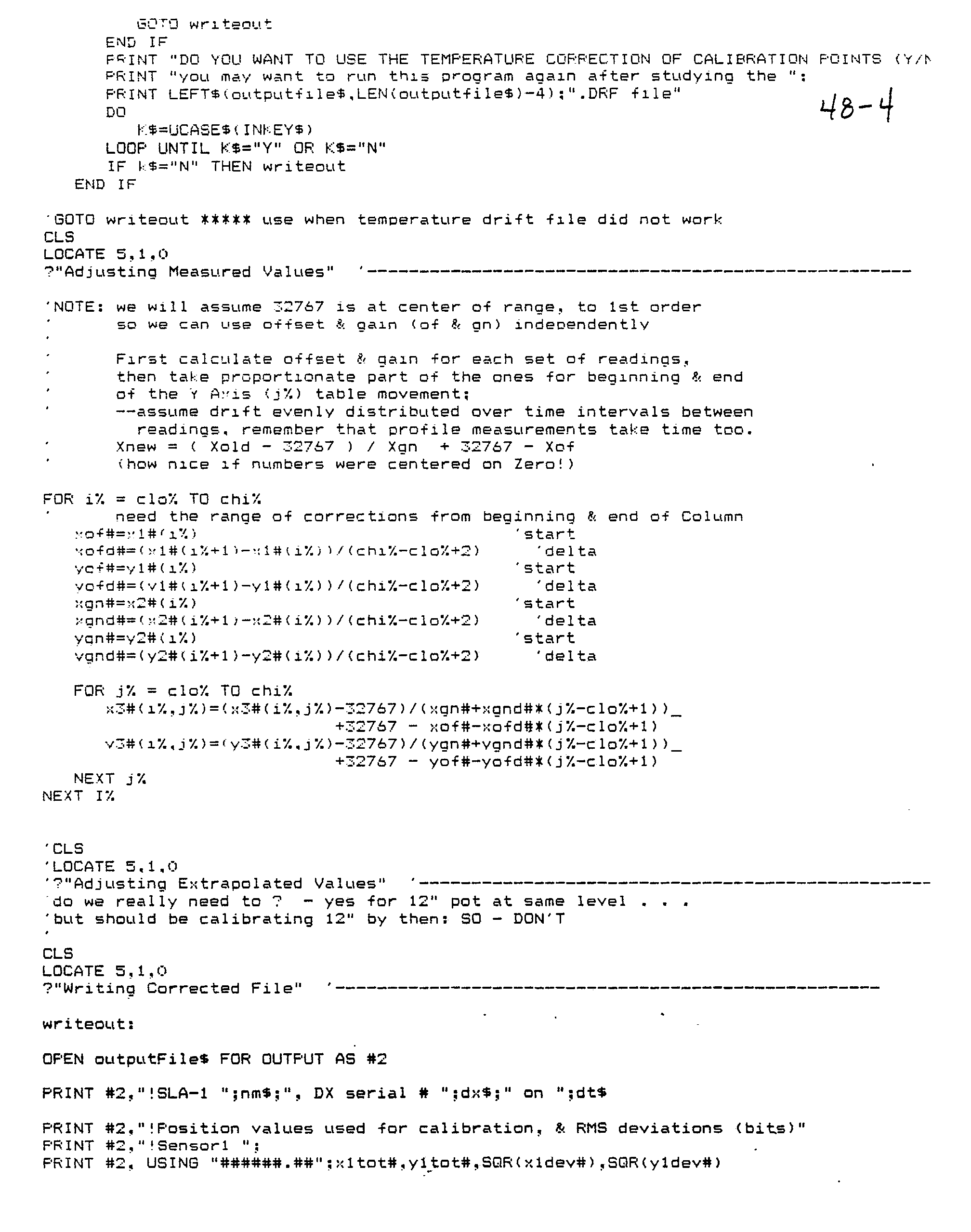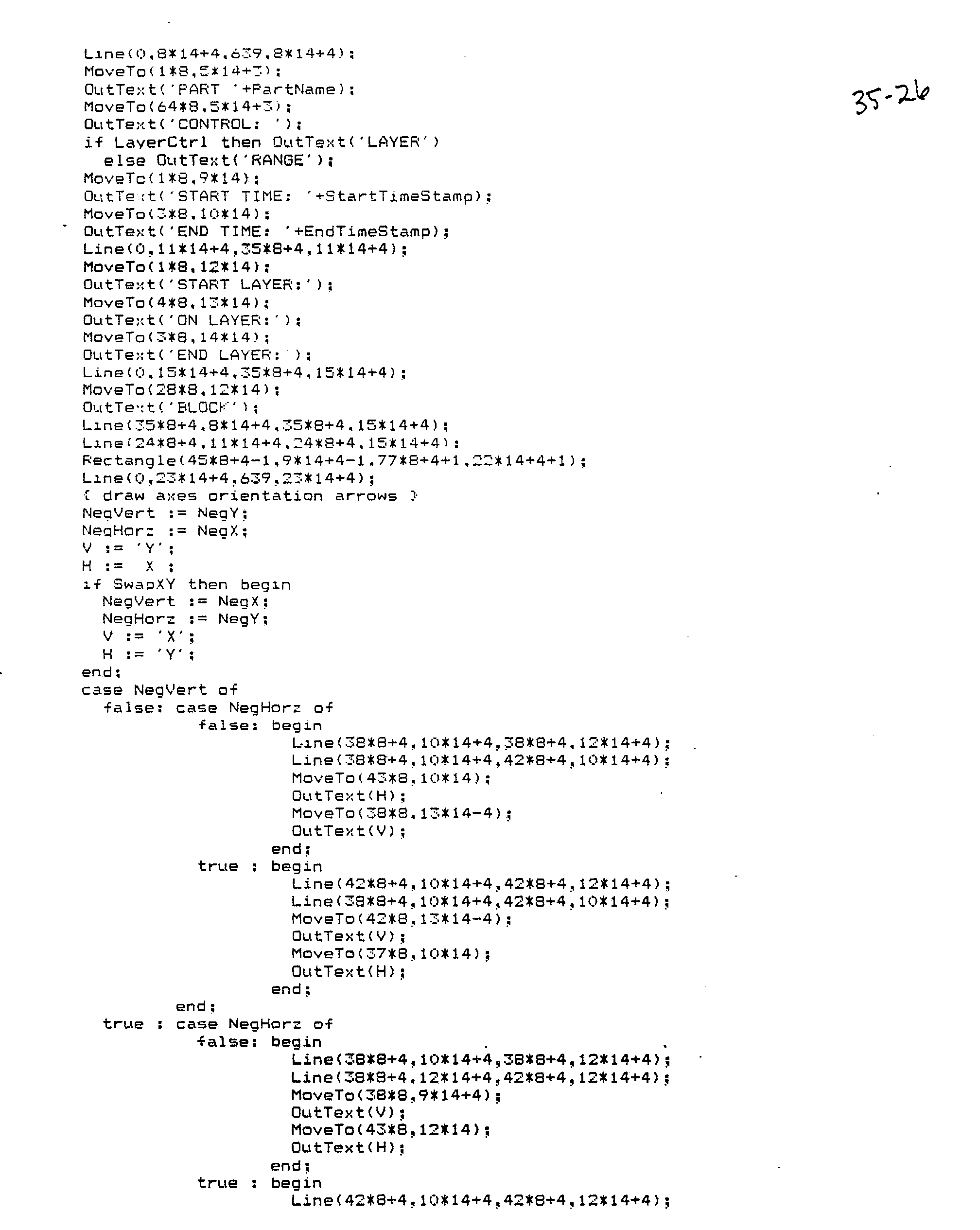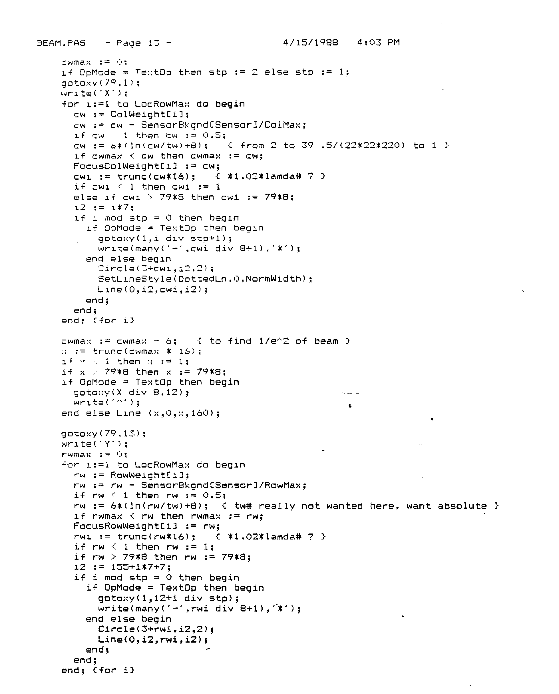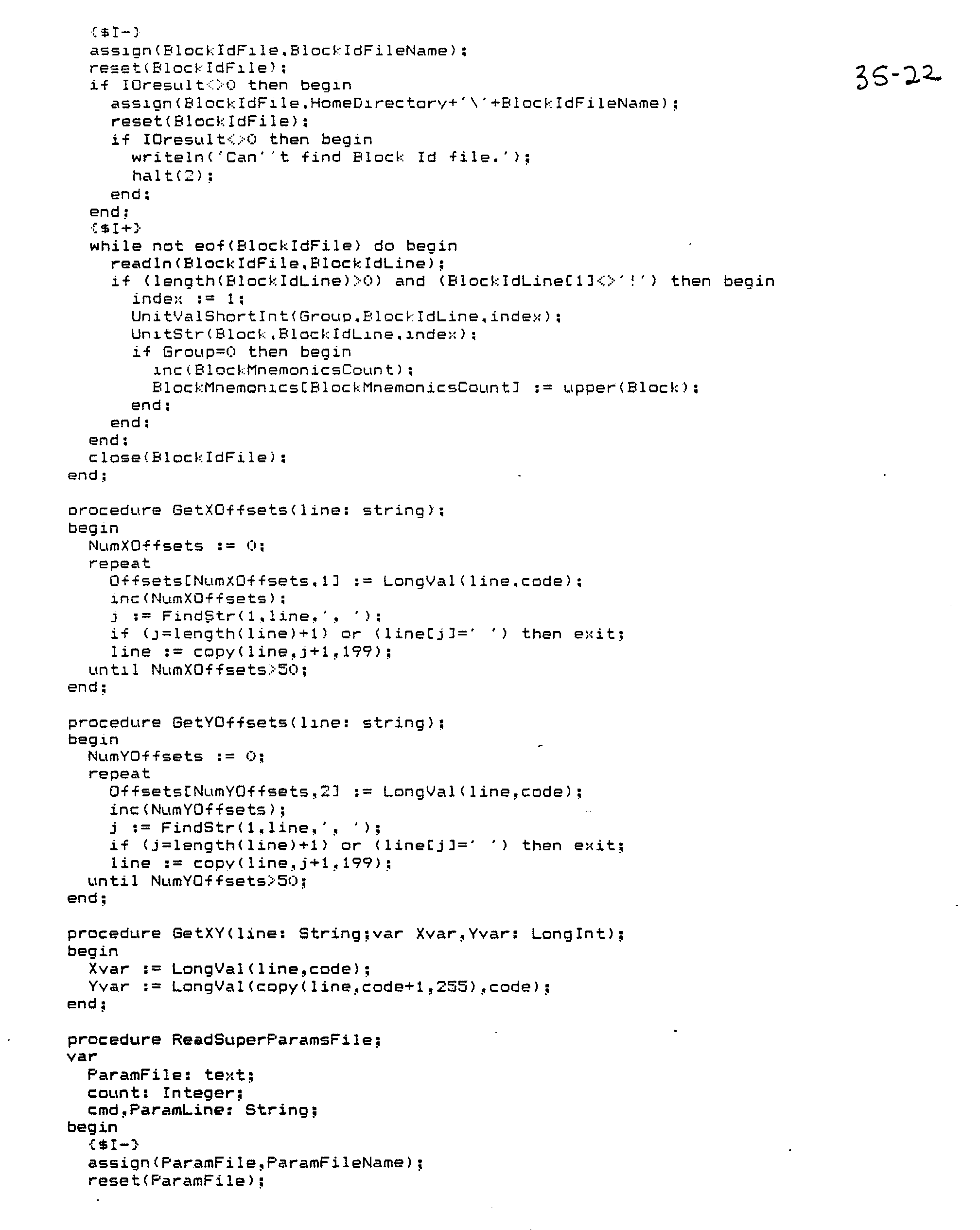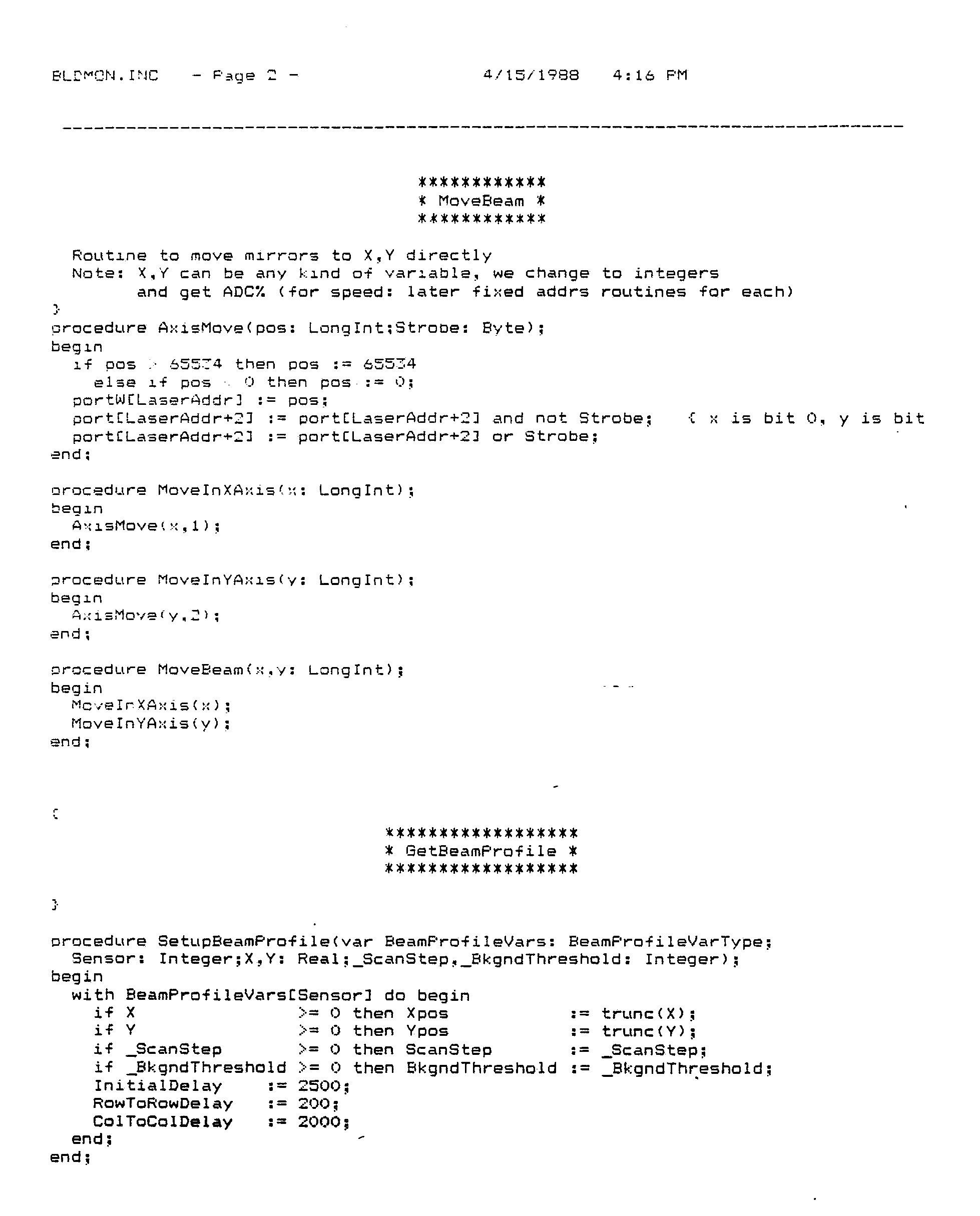 Beam width compensation is presently implemented in SLICE version 3.20. Several steps have been added to SLICE version 3.20 for beam width compensation, which steps are not reflected in Figures 58 and 72. These steps will now be described.