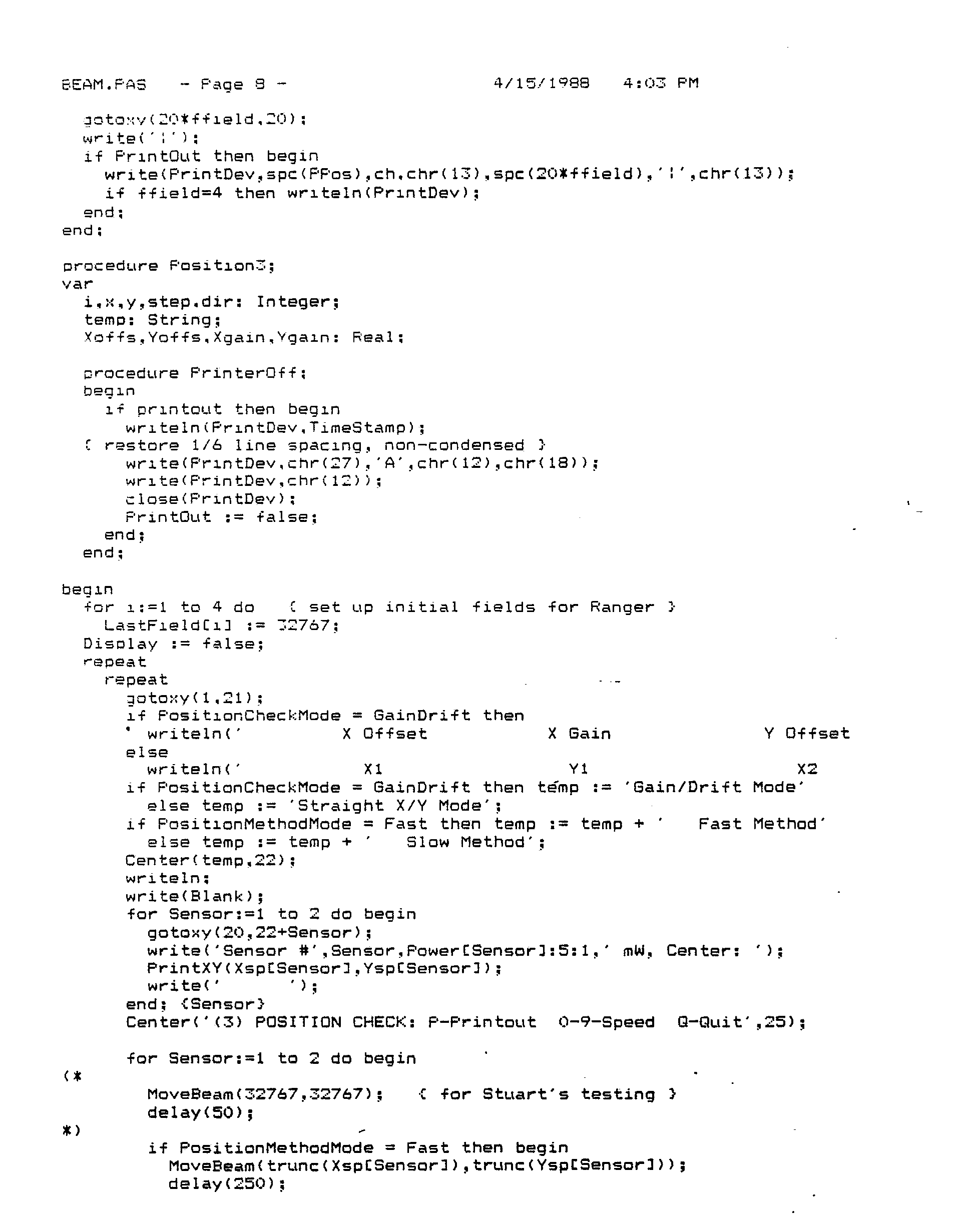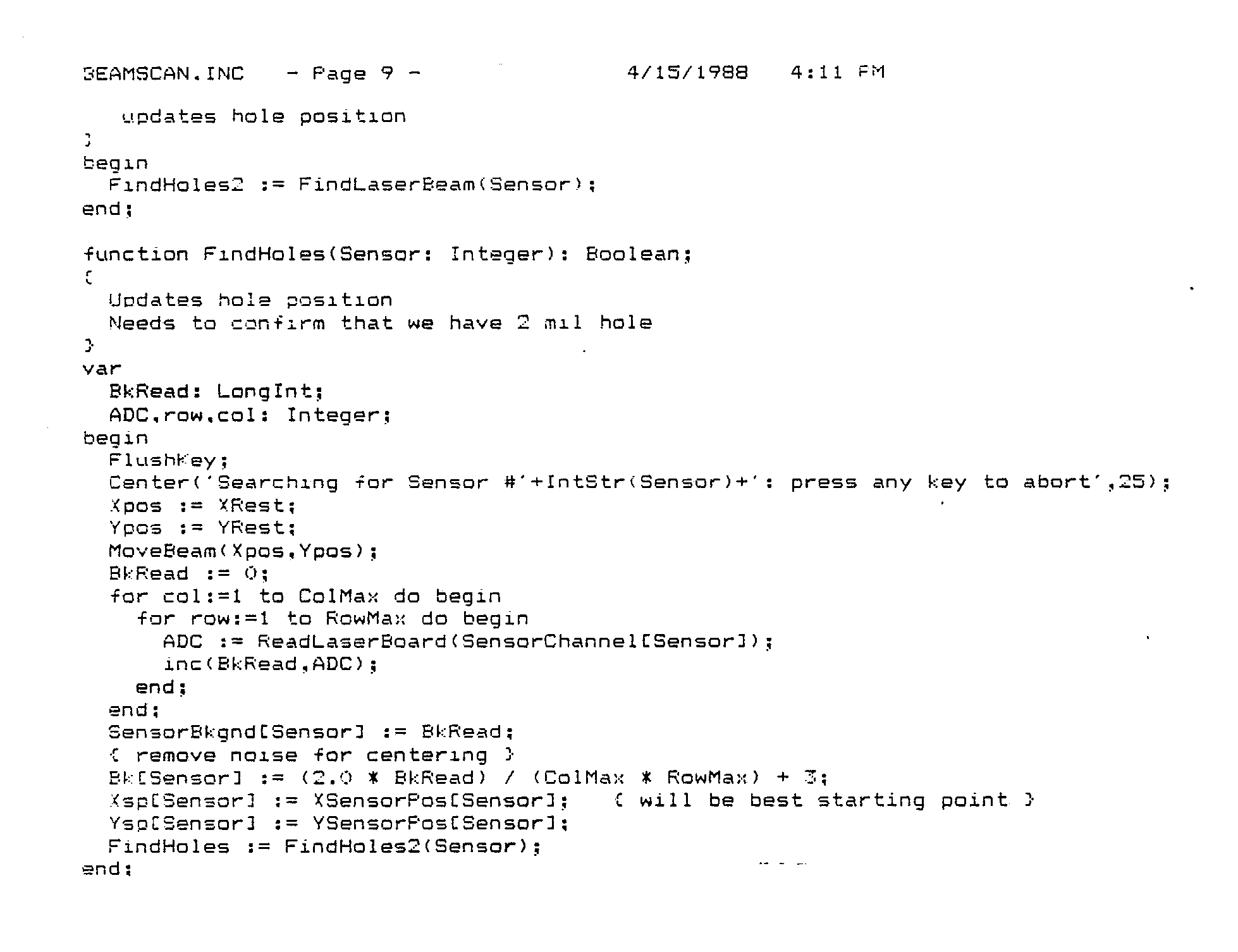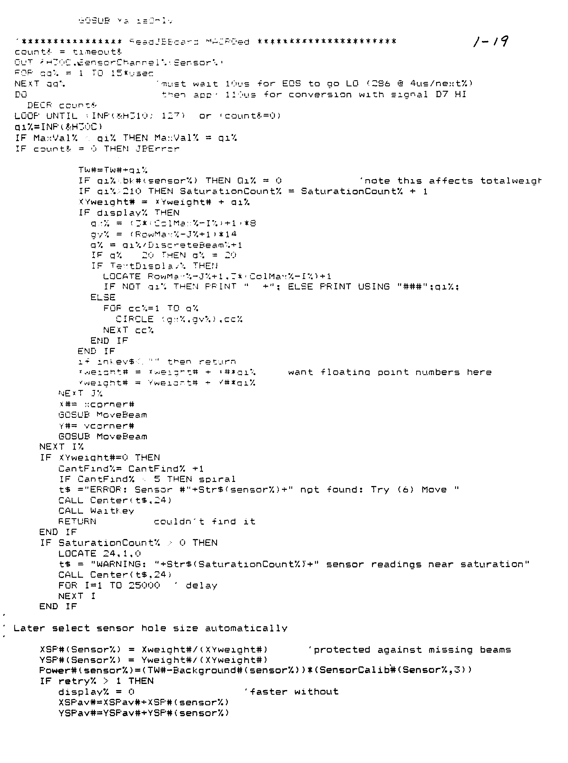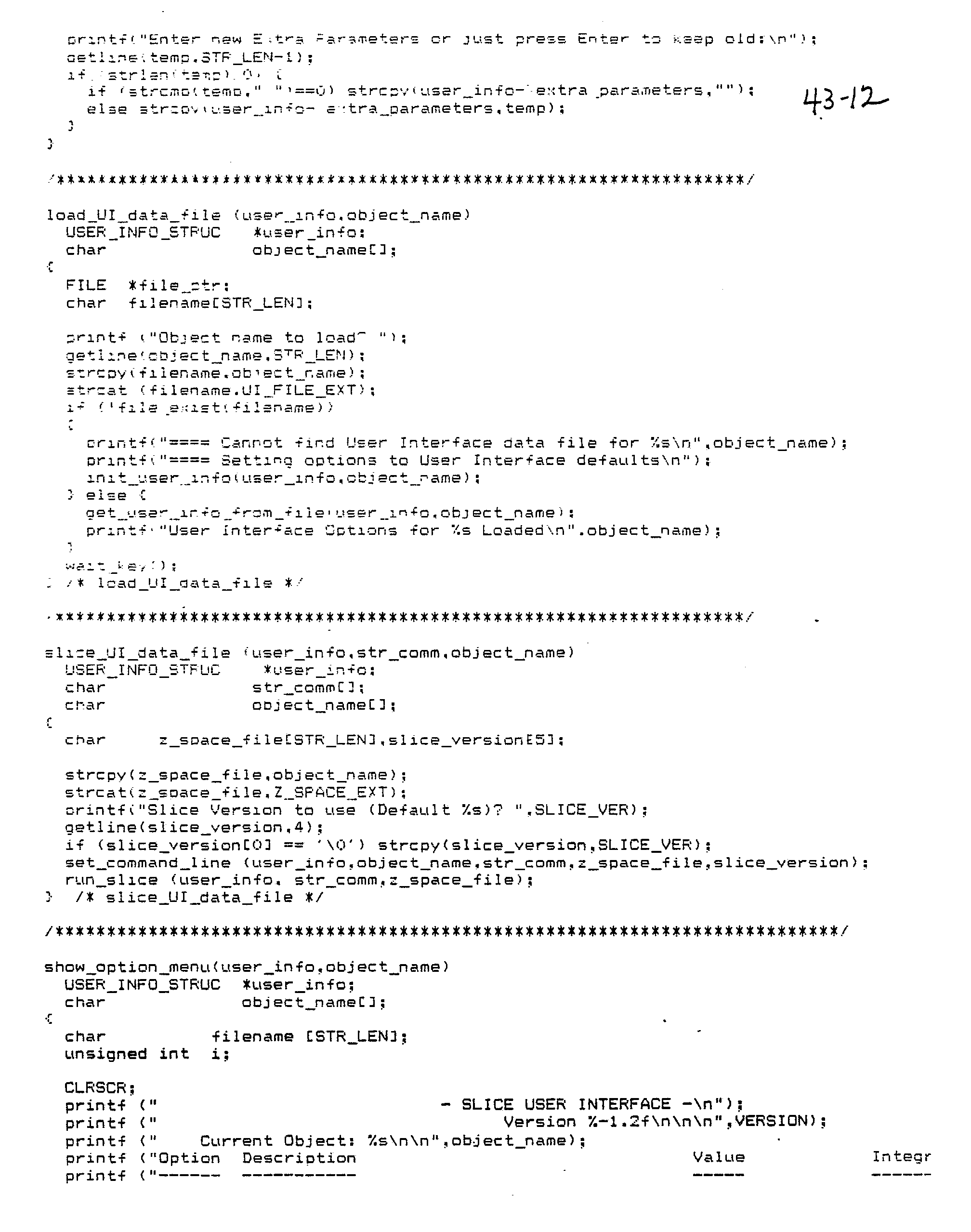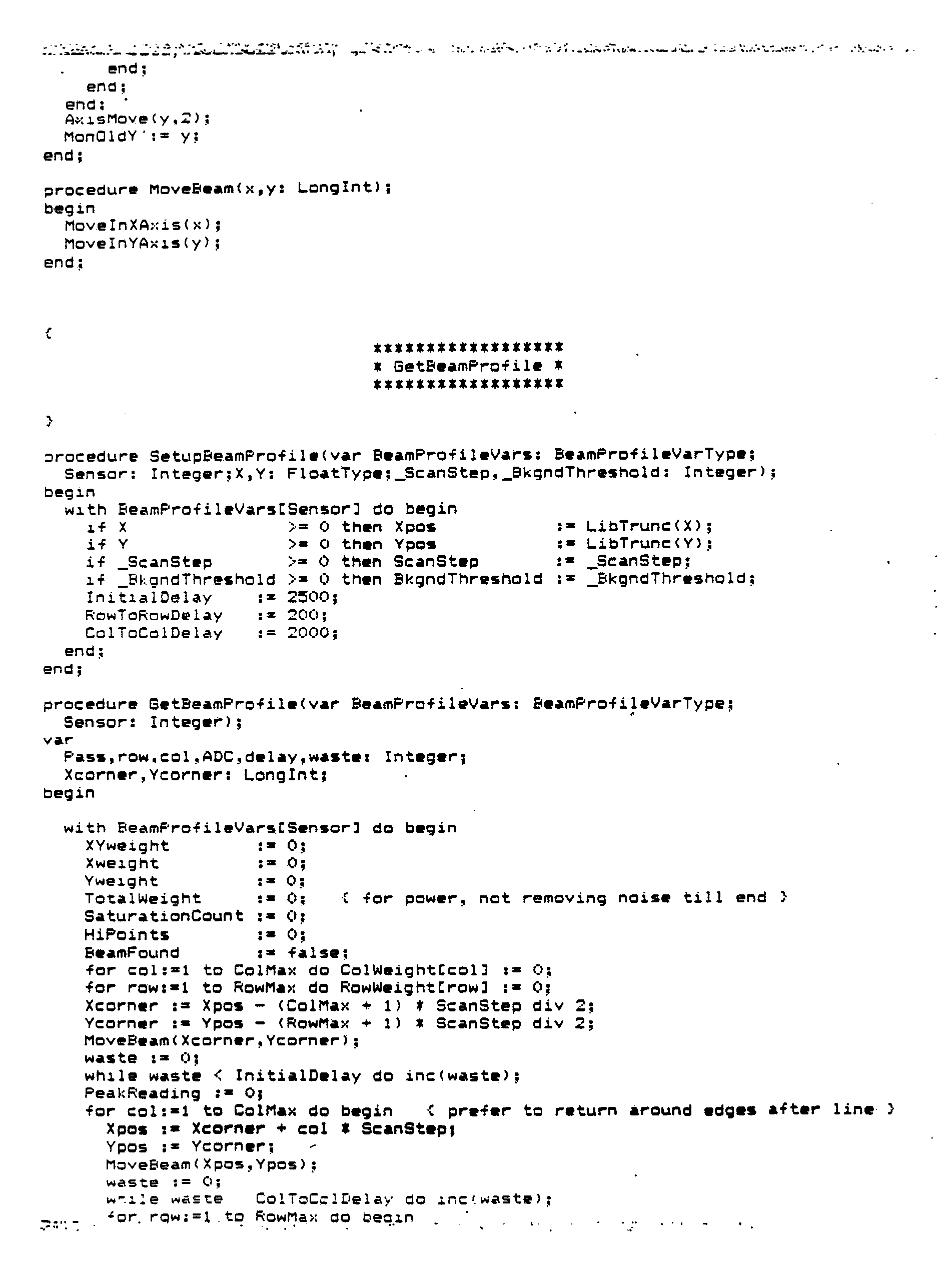 Beam width compensation is presently implemented in SLICE version 3.20. Several steps have been added to SLICE version 3.20 for beam width compensation, which steps are not reflected in Figures 58 and 72. These steps will now be described.
