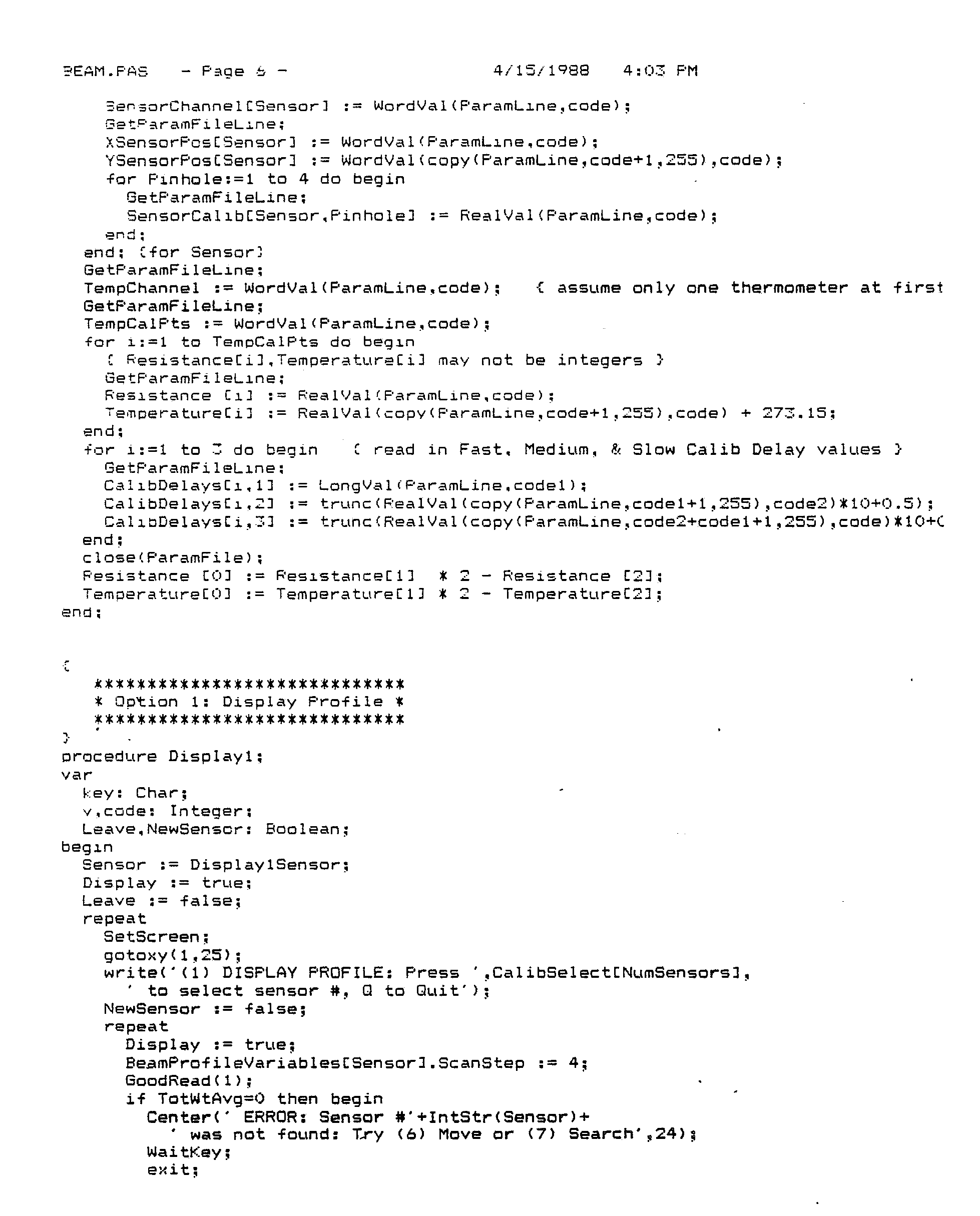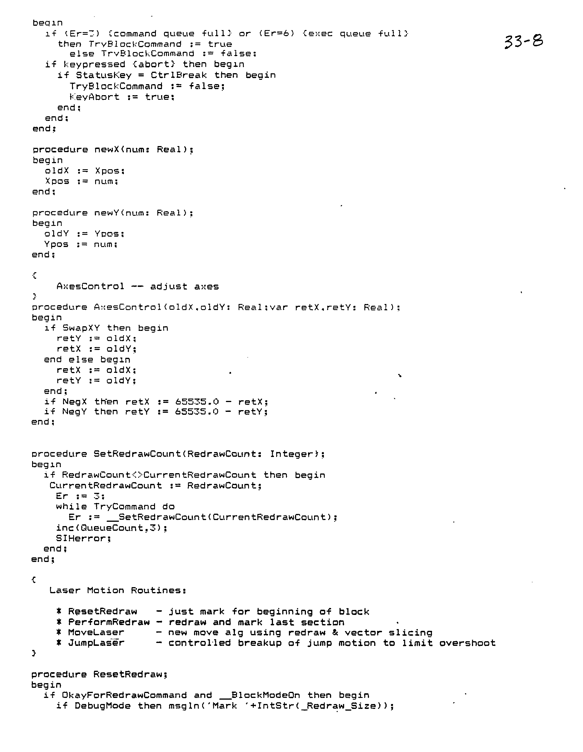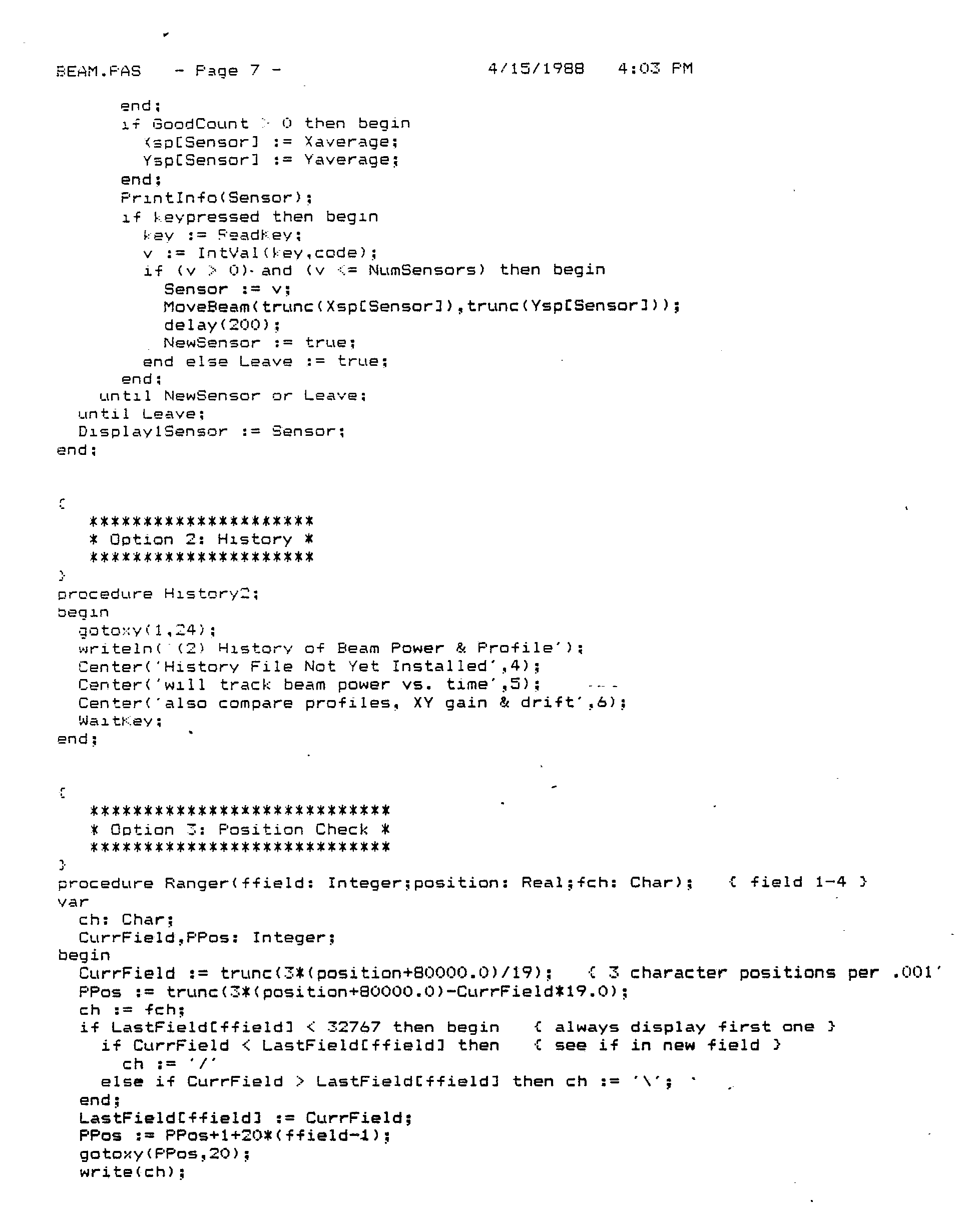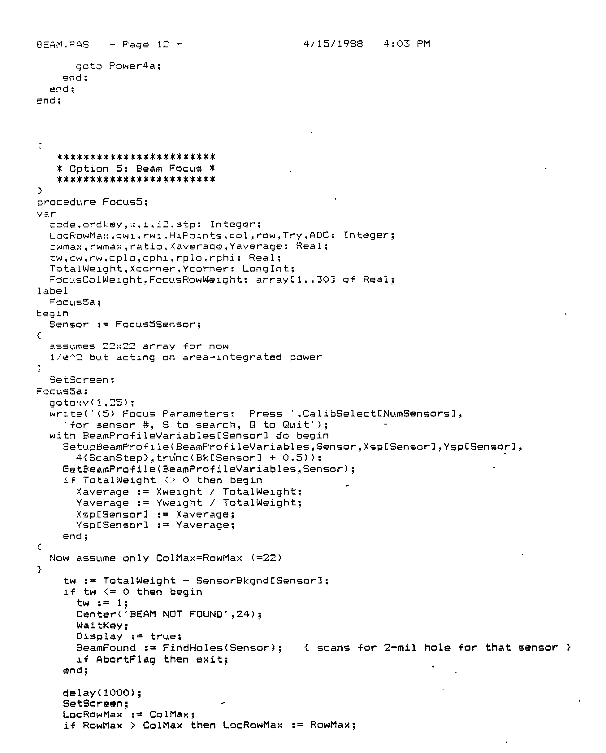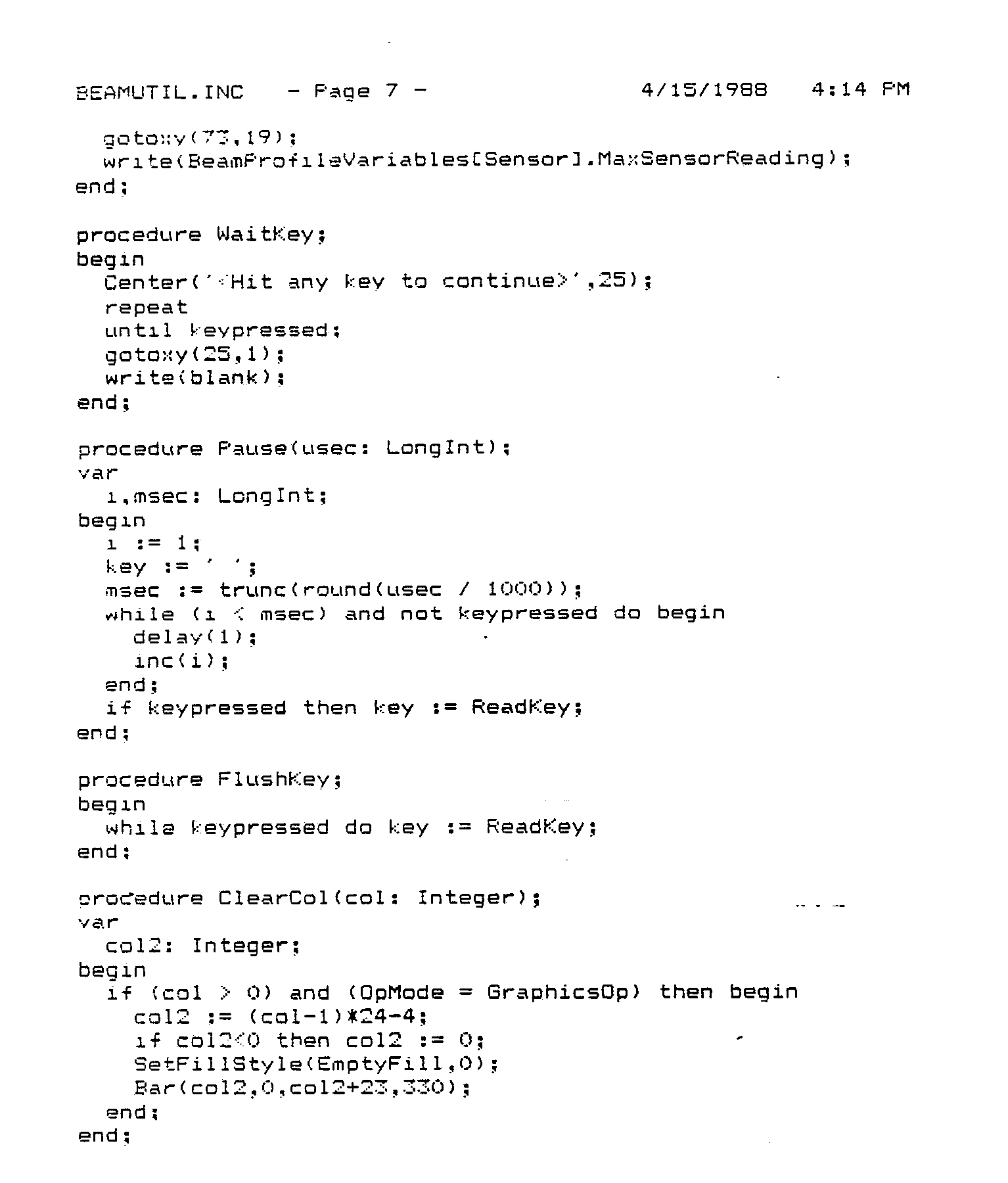 Beam width compensation is presently implemented in SLICE version 3.20. Several steps have been added to SLICE version 3.20 for beam width compensation, which steps are not reflected in Figures 58 and 72. These steps will now be described.