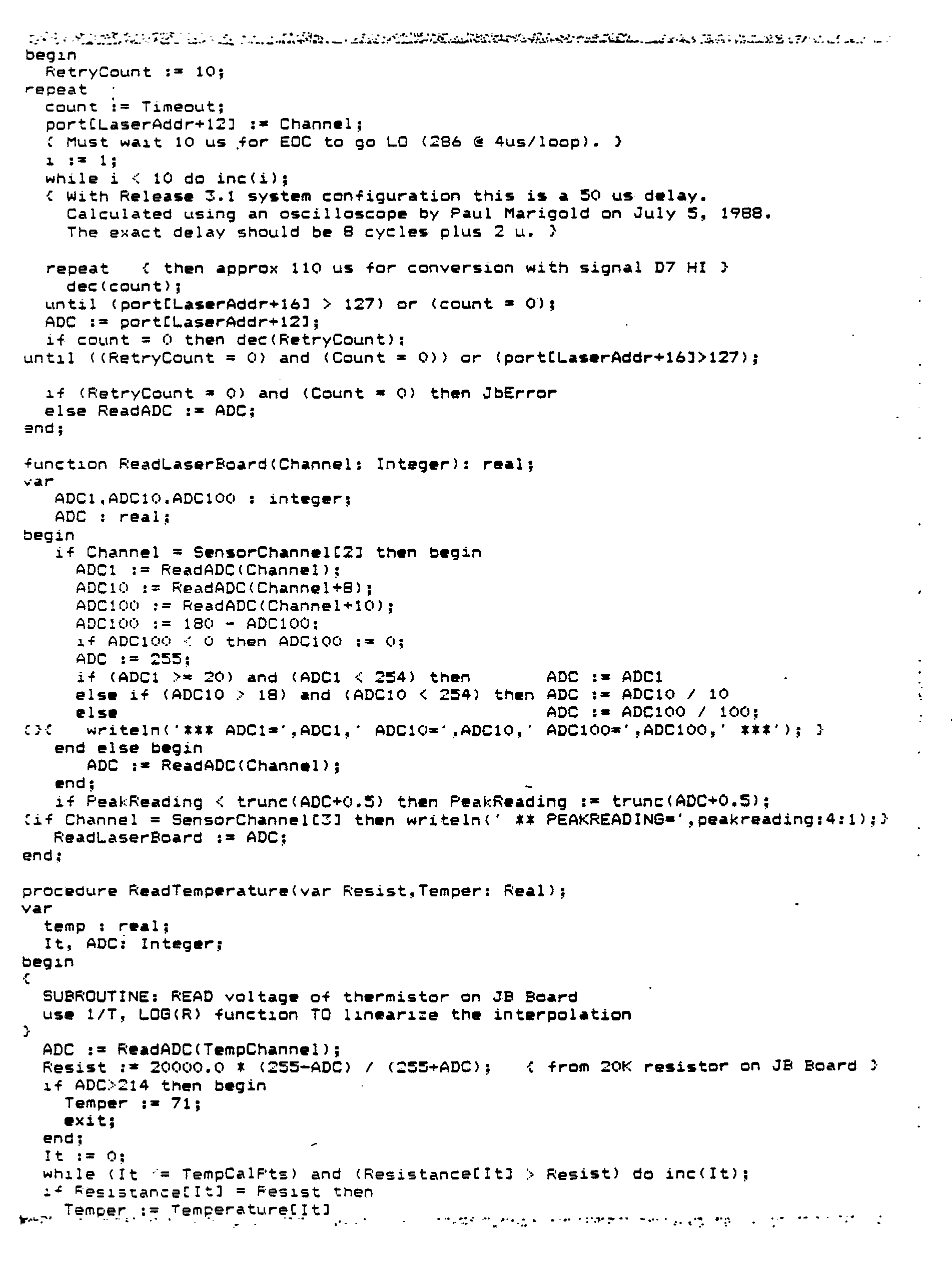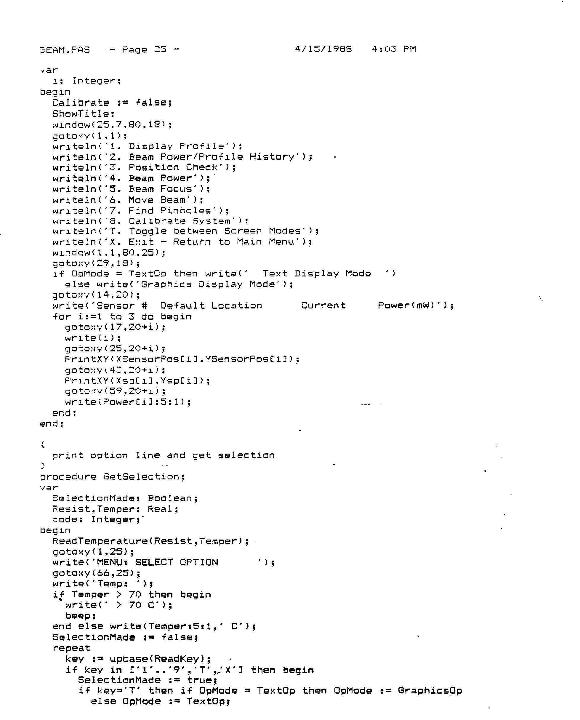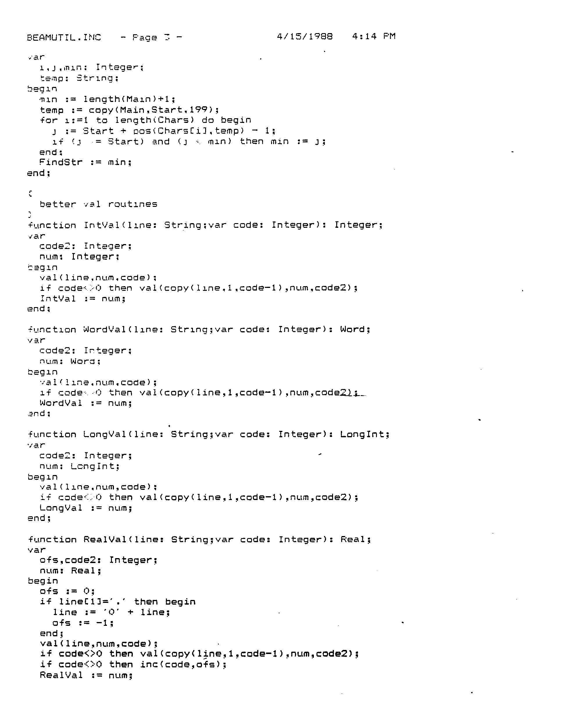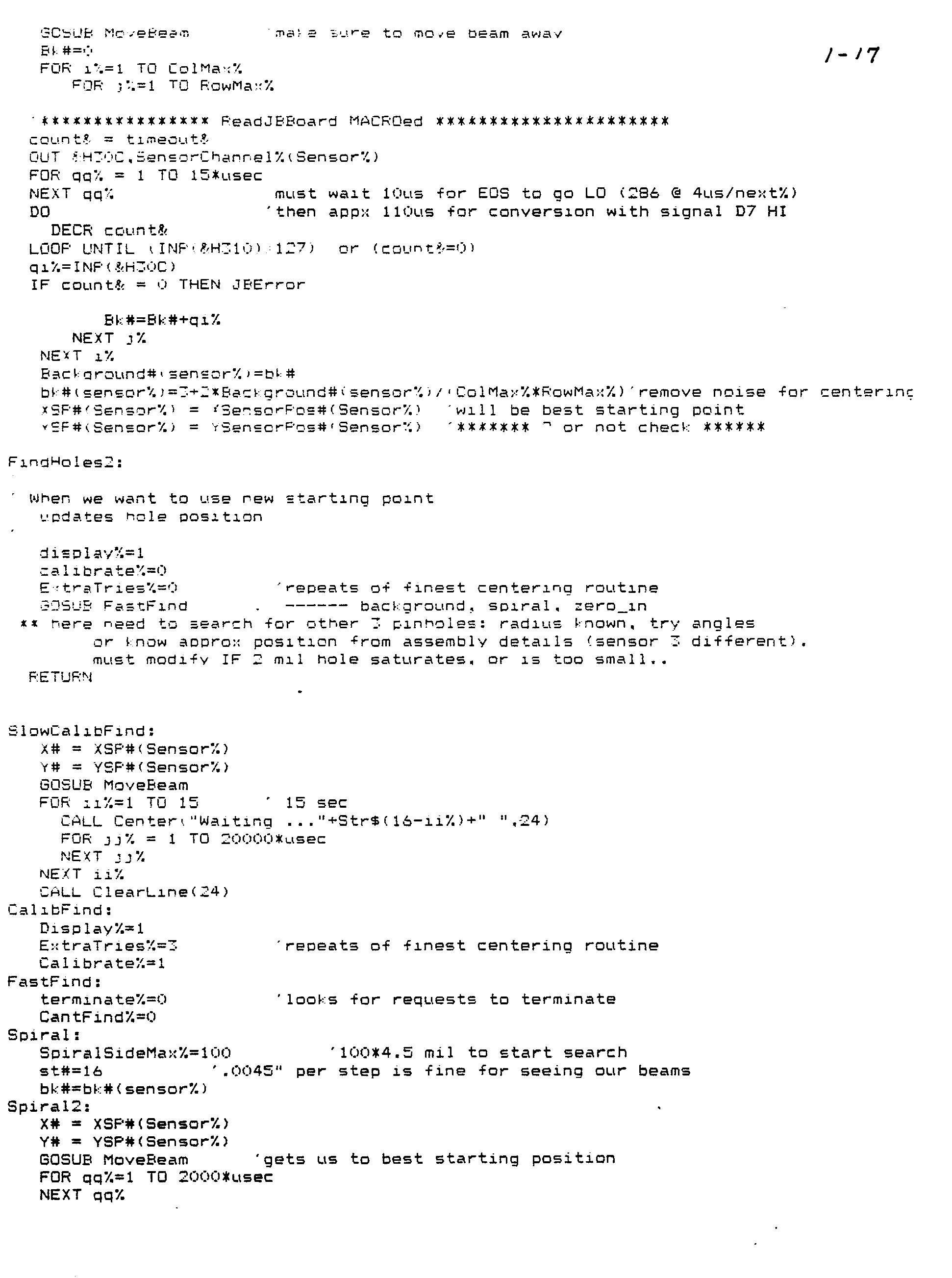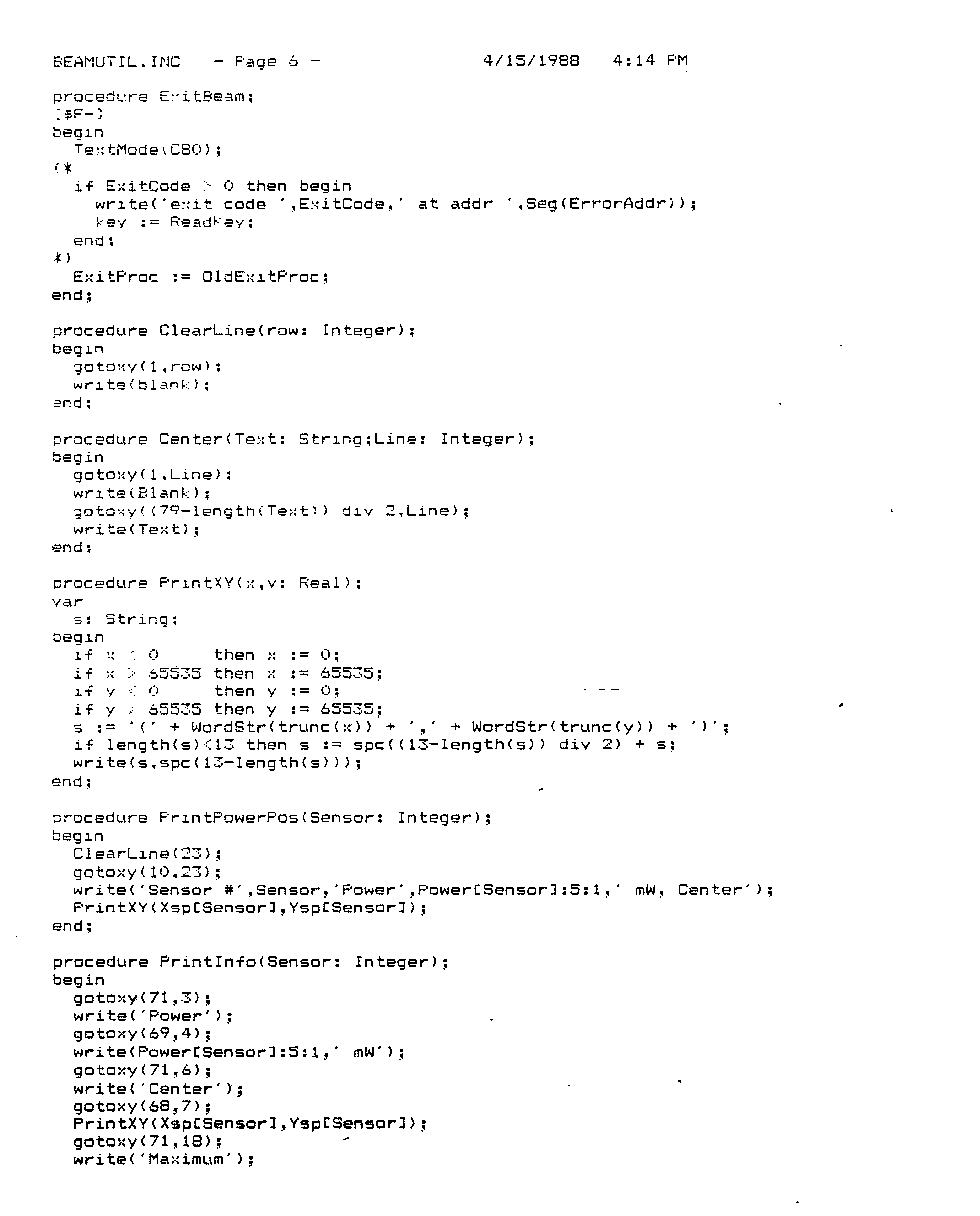Beam width compensation is presently implemented in SLICE version 3.20. Several steps have been added to SLICE version 3.20 for beam width compensation, which steps are not reflected in Figures 58 and 72. These steps will now be described.