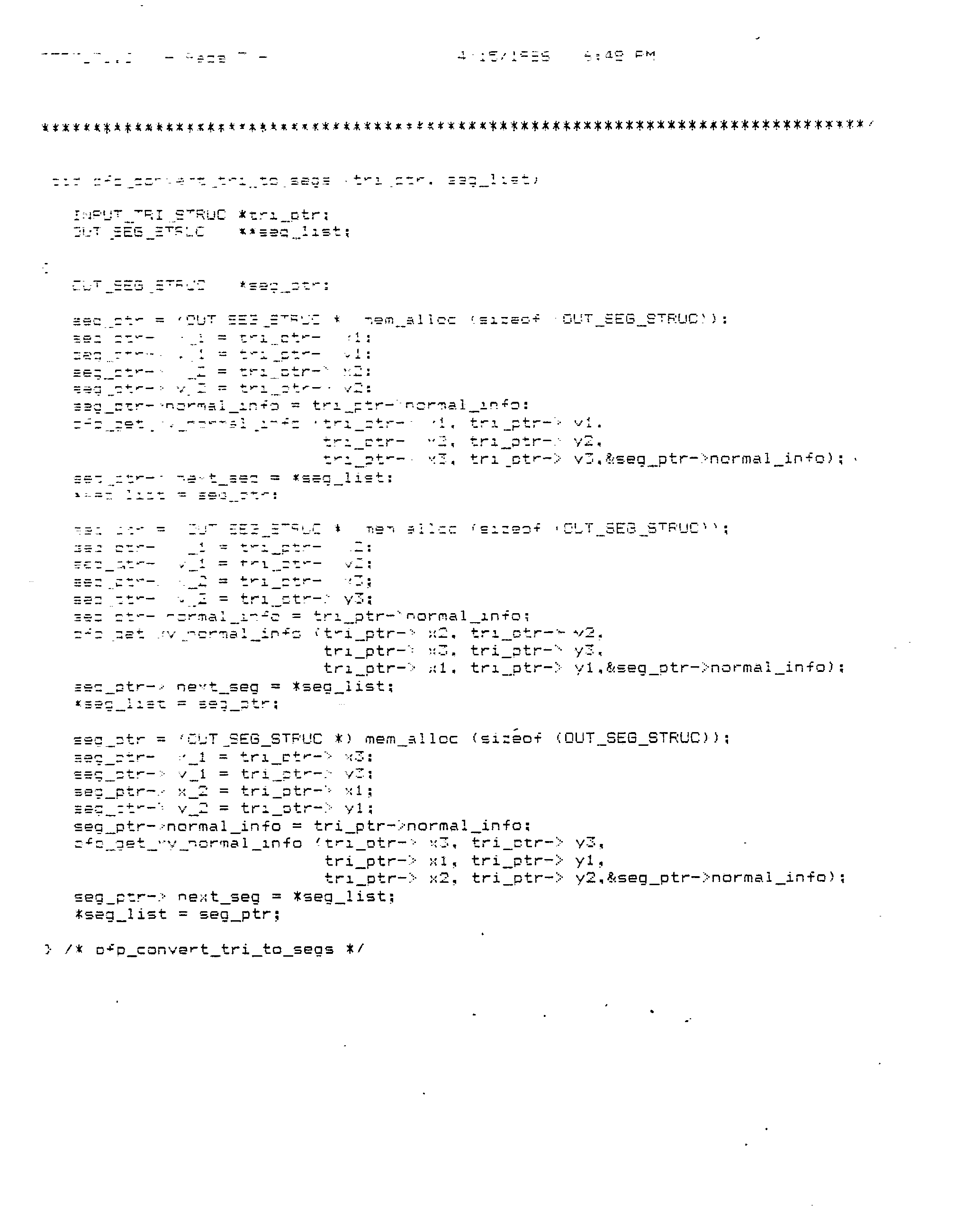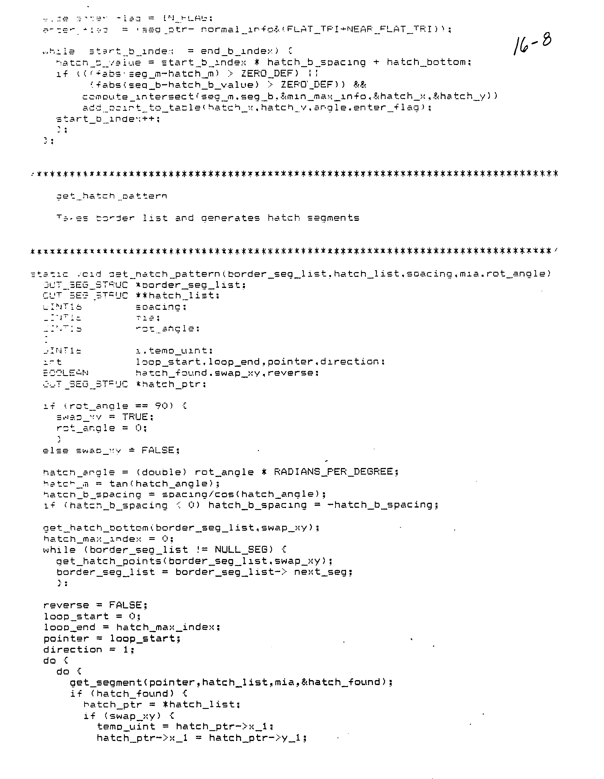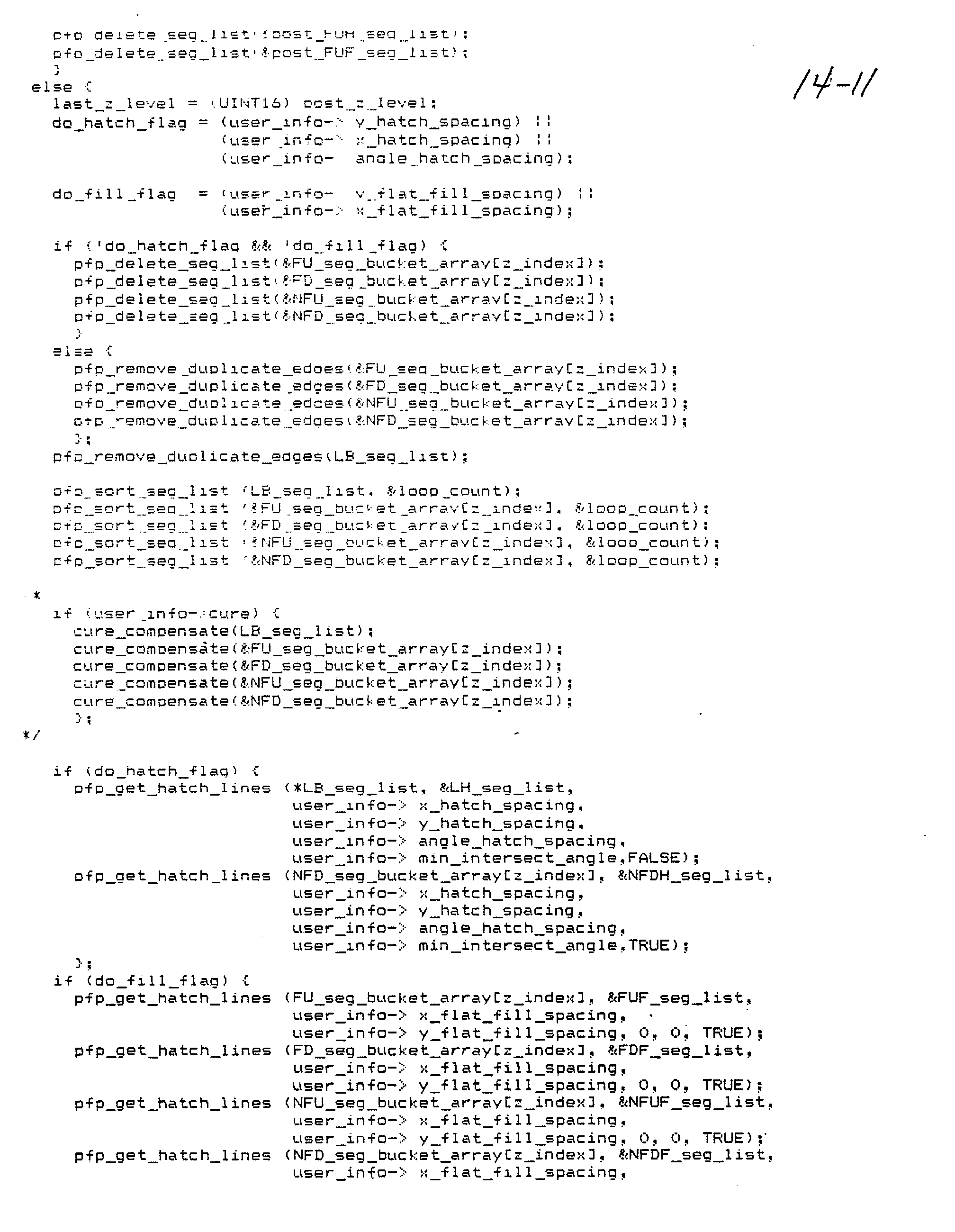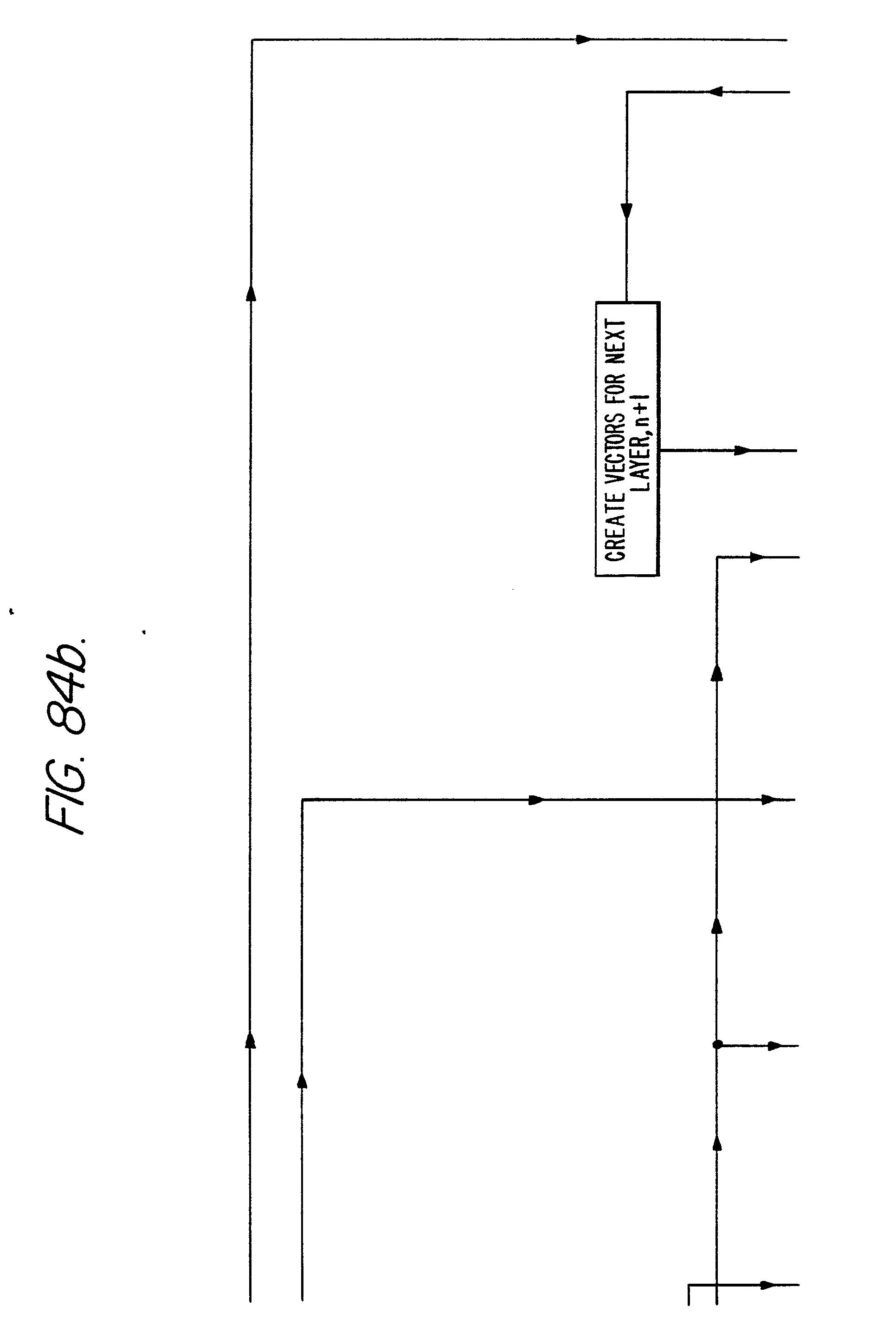 The beam width compensation substeps for each border vector type will be the same, which substeps are flowcharted in Figure 85. As indicated, in substep 639, the segment normals for the boundary vectors are recomputed if not already done so in previous processing steps. As indicated in Figure 84, the recalibration of segment normals is presently being performed for all but the boundary layer vectors. In the absence of beam width compensation, it is not necessary to recompute the segment normals for these vectors, since they are only being used to generate hatch and skin fill vectors, and any flips of segments normals will be corrected for by the "net summation" hatch or skin fill vector generation algorithm.