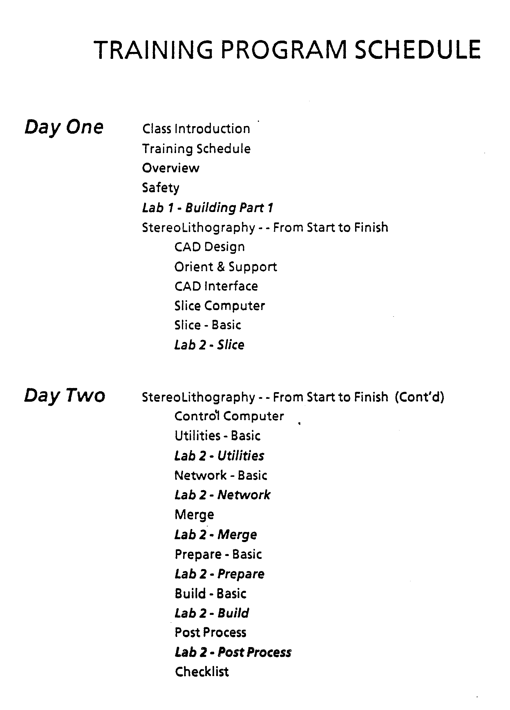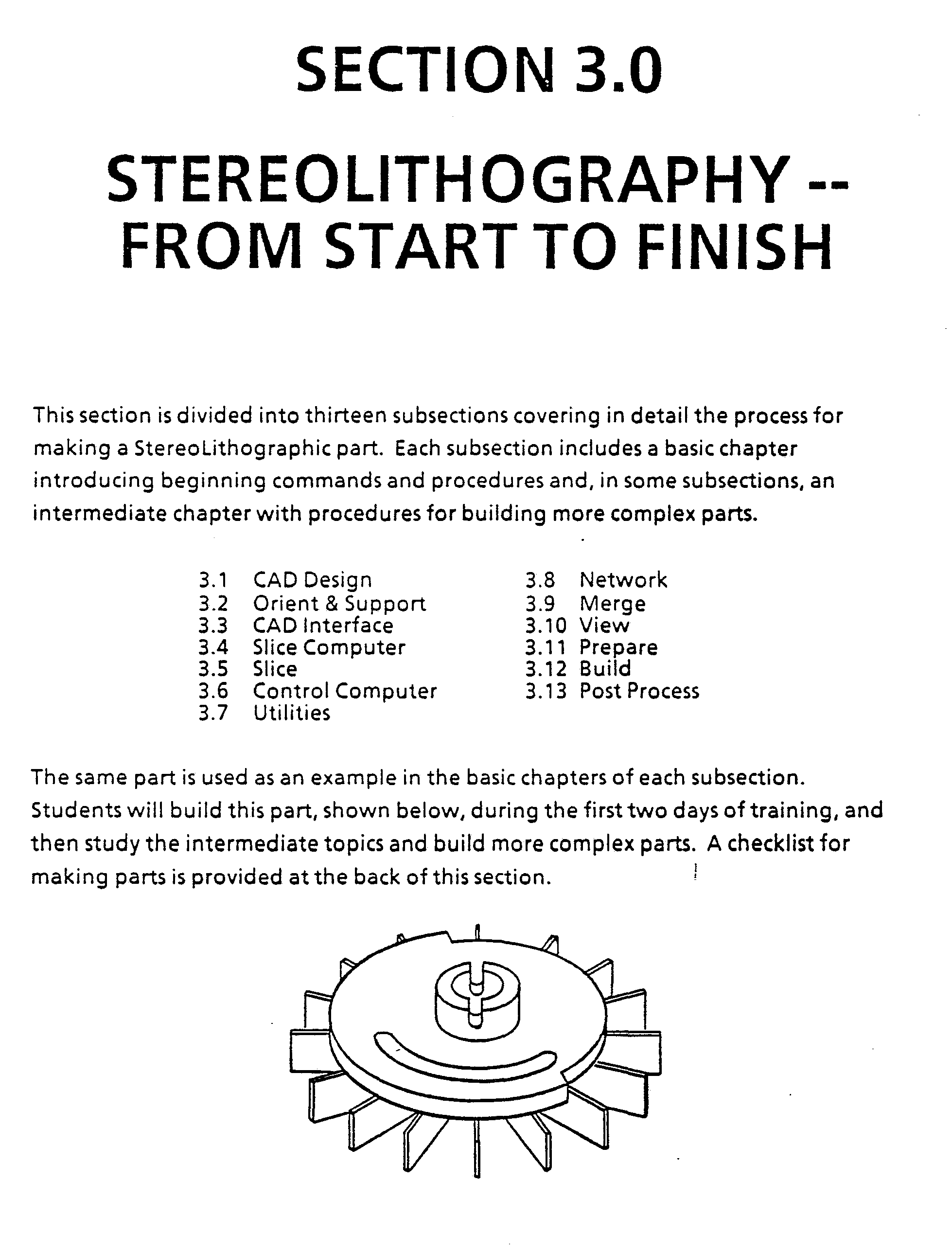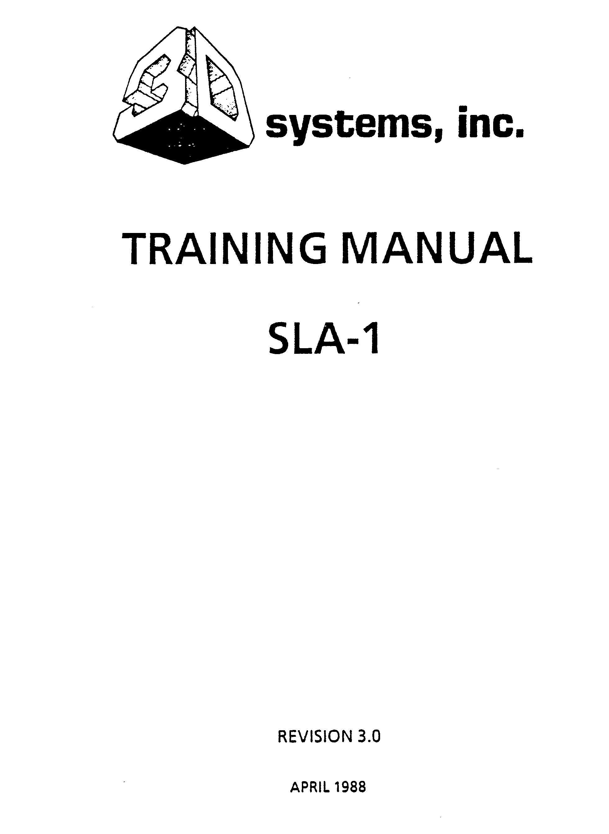 - Appendix D: 3D Systems, Inc., SLA-1, Training Manual. Revision 3.0, April 1988