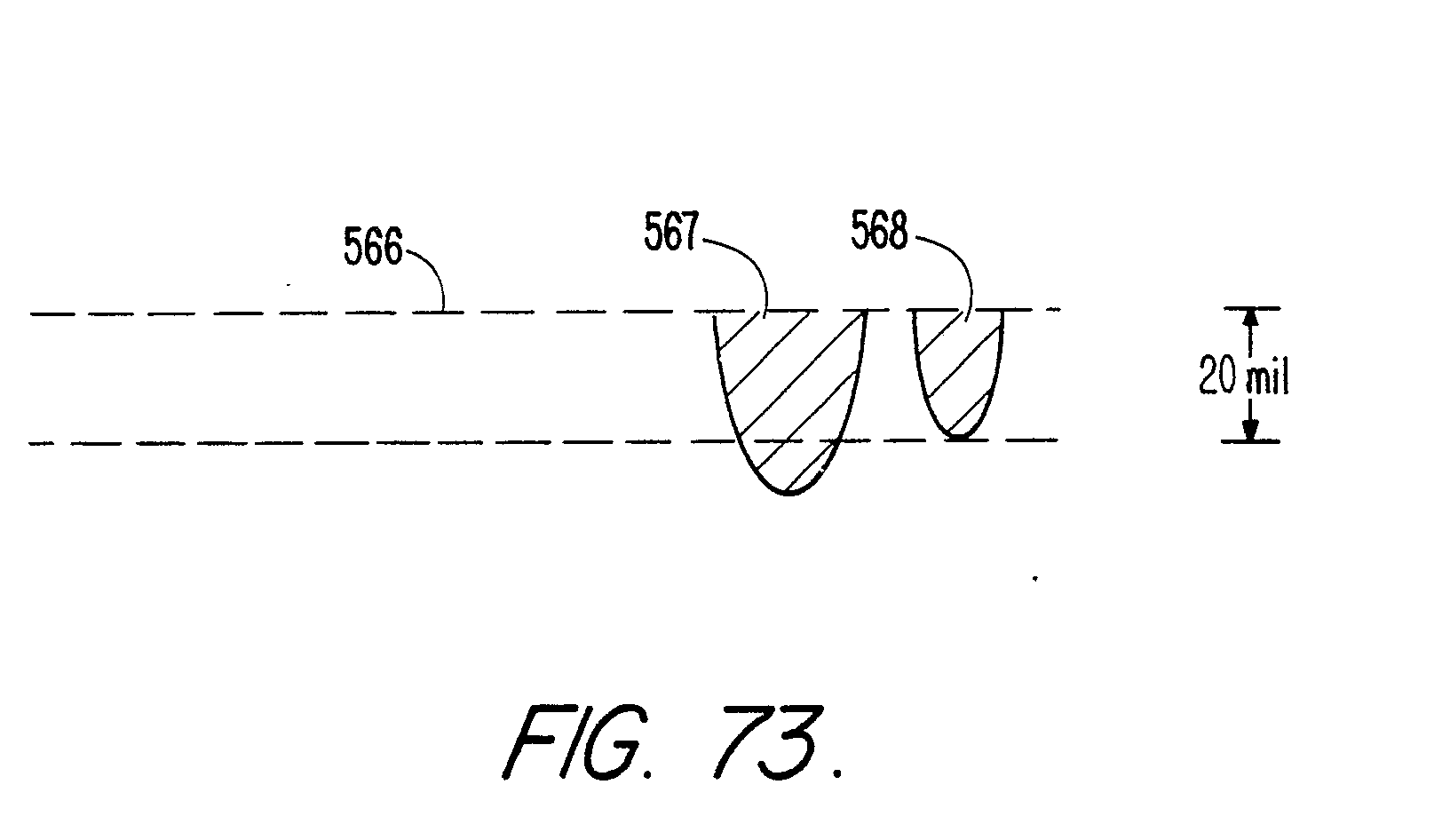 The crossover manifests itself as distortion in the final cured part. As indicated in Figure 78d, 615 represents the passage of the laser beam. As indicated, there will be significant distortion at the areas indicated by 616(A) and 616(B). This distortion is due to boundaries, if crosshatching was attempted chances are the situation would be worse.