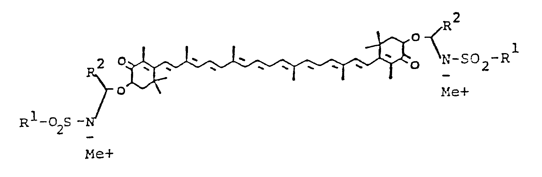 Among preferred alkali metal bases for the preparation of the initially-formed metal enolate in step 1 of the above scheme, lithium diisopropylamide and an alkalimetal bis(trimethylsilyl)amide can be mentioned. Other strong alkalimetal bases can be used instead. For example, sodium hydride, potassium hydride, and potassium t-butanolate are suitable. It has been found that sodium bis(trimethylsilyl)amide is especially suitable for the preparation of a reactive canthaxanthin dialkalimetal enolate in step 1 of the above scheme.