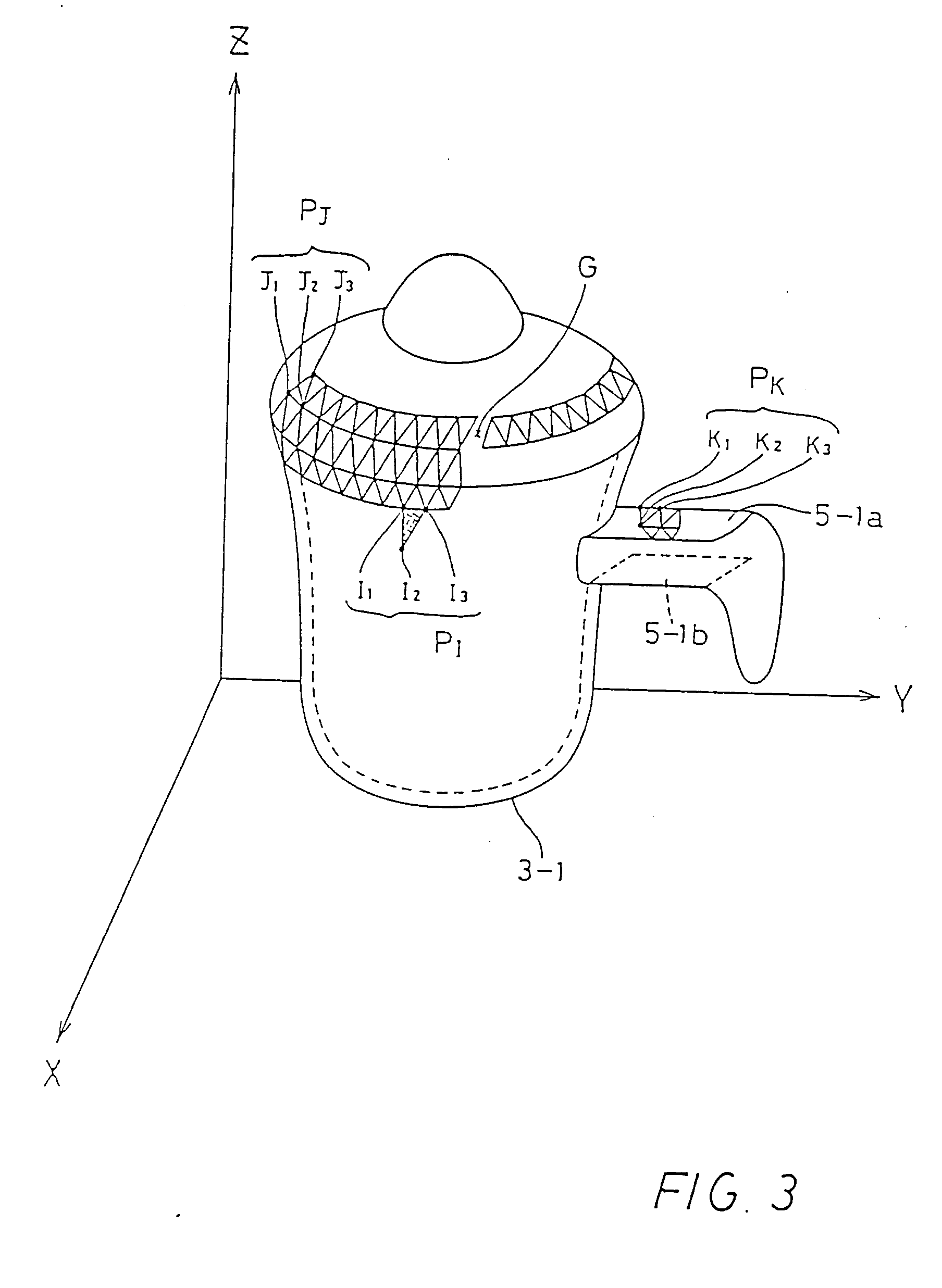 - Fig. 3 is a schematic perspective view illustrating a triangular patch type of three-dimensional shape data;