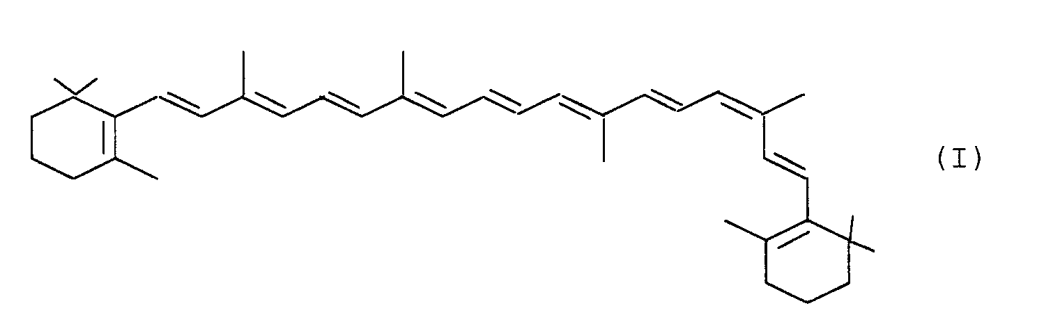 Mit Hilfe des erfindungsgemäßen Verfahrens können auf relativ einfache Weise β-Carotin-Präparate mit 9(Z)-Anteilen von etwa 60 bis 80 % (HPLC-Flächen-%) erhalten werden. Using the process according to the invention can be obtained in a relatively simple manner β-carotene supplements with 9 (Z) moieties of from about 60 to 80% (HPLC-area%). Etwa 10 % entfallen auf all-(E)-β-Carotin, der Rest auf andere (Z)-Verbindungen und Isomere mit zwei (Z)-konfigurierten Doppelbindungen. About 10% is held by all- (E) -β-carotene, the rest to other (Z) compounds and isomers with two (Z) -configuration double bonds.