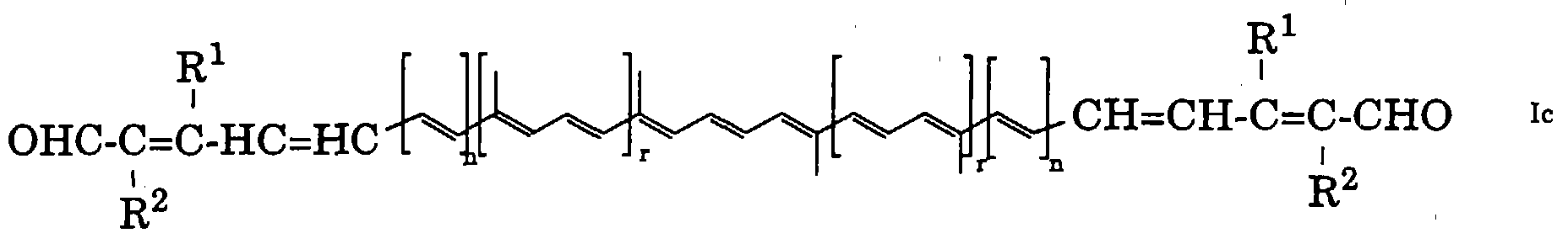 Die Endprodukte des erfindungsgemässen Verfahrens, dh die Polyenaldehyde und -dialdehyde der allgemeinen Formeln I' und I'', gehören grösstenteils dem Gebiet der Carotinoide an und finden entsprechende Verwendung, beispielsweise als Farbstoffe bzw. Pigmente für Lebensmittel, den Eidotter, die Integumente (insbesondere Haut, Ständer und Schnäbel) und/oder das subkutane Fett von Geflügel, das Fleisch und/oder die Integumente (insbesondere Haut, Schuppen und Schale) von Fischen und Crustaceen usw. Diese Verwendung kann nach an sich bekannten Methoden erfolgen, wie diese beispielsweise in der europäischen Patent-publikation Nr. 630.578 beschrieben ist. The end products of the inventive method, ie the polyene aldehydes and dialdehydes of the general formulas I 'and I' ', are mostly in the field of carotenoids and used appropriately, for example, as dyes or pigments for food, egg yolk, the integuments (especially skin, legs and beak) and / or the subcutaneous fat of poultry meat and / or the integuments (especially skin, scales and shell) of fish and crustaceans etc. This use can be effected according to known methods, such as this example in European patent publication no. 630578 is described.