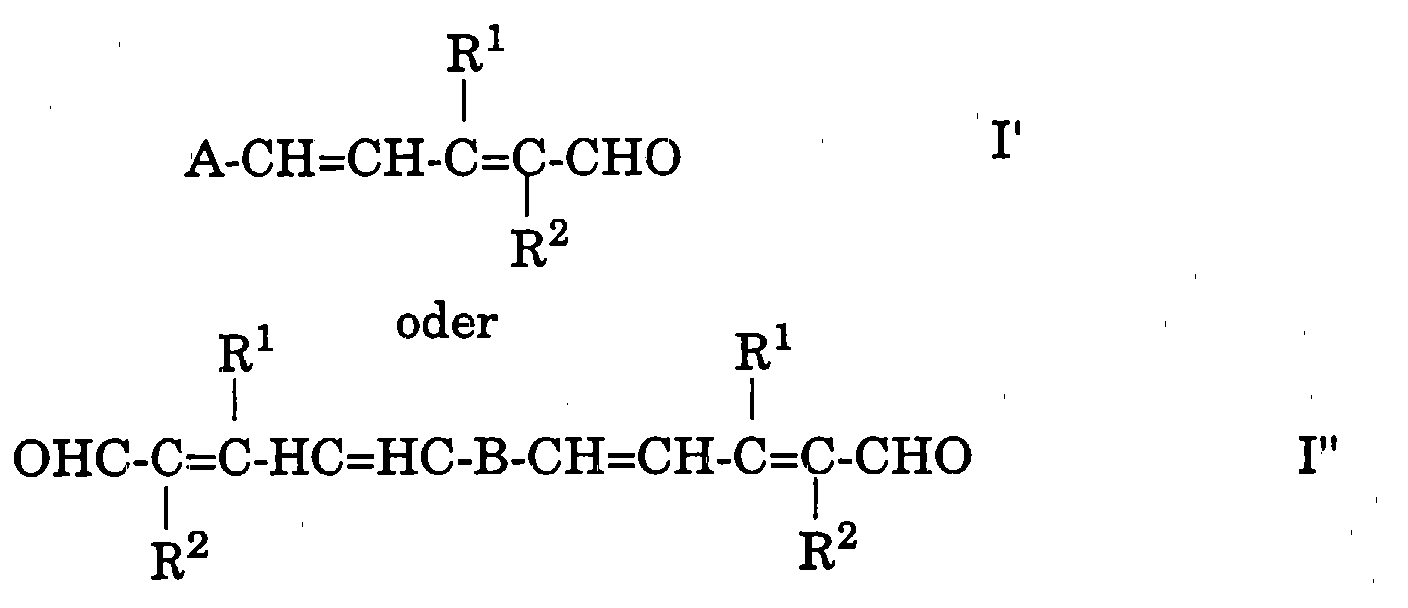 Demnach handelt es sich bei der vorliegenden Erfindung um ein Verfahren zur Herstellung eines Polyenaldehyds oder -dialdehyds der allgemeinen Formel Accordingly, it is in the present invention is a method for producing a polyene aldehyde of the general formula or -dialdehyds