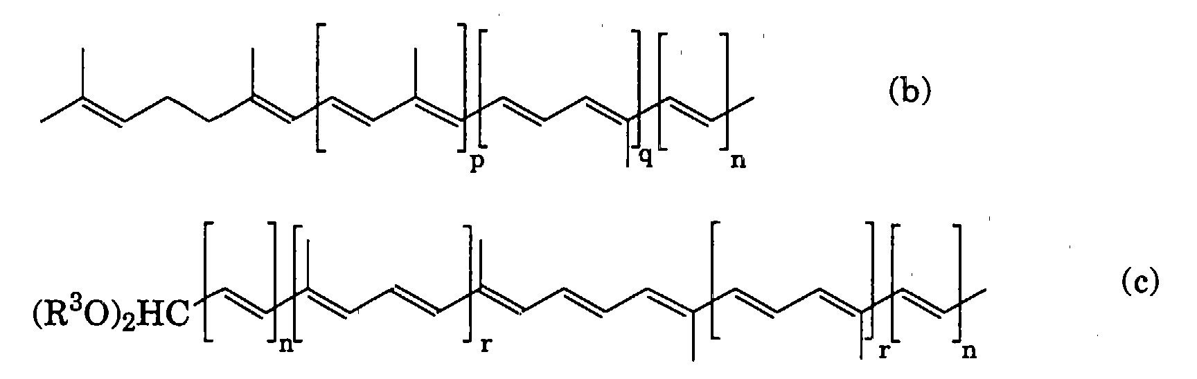 worin whereinAliphatische Polyen-O,O-dialkylacetale, die ebenfalls hauptsächlich dem Gebiet der Carotinoide (als Acetale offenkettiger asymmetrischer Carotinoid-Aldehyde) angehören, der allgemeinen Formel Aliphatic polyene O, O-dialkyl acetals, which are also members mainly from the carotenoid field (as acetals open-chain asymmetric carotenoid aldehydes), the general formula