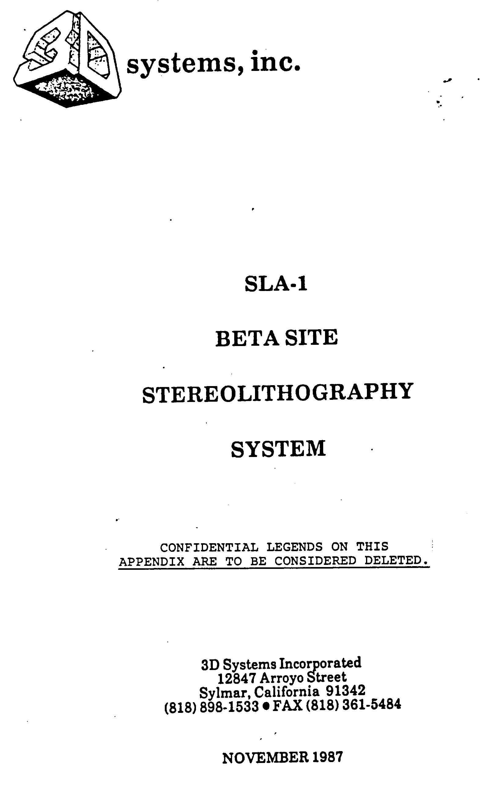 In recent years, "stereolithography" systems, such as those described in U.S. Pat. No. 4,575,330 entitled "Apparatus For Production Of Three-dimensional Objects By stereolithography," have come into use. The disclosure of U.S. Pat. No. 4,575,330 is hereby incorporated by reference, as if fully set forth herein. Basically, stereolithography is a method for automatically building complex plastic parts by successively printing cross-sections of photocurable polymer or the like on top of each other until all of the thin layers are joined together to form a whole part. With this technology, the parts are literally grown in a vat of liquid plastic. This method of fabrication is extremely powerful for quickly reducing design ideas to physical form and for making prototypes.
