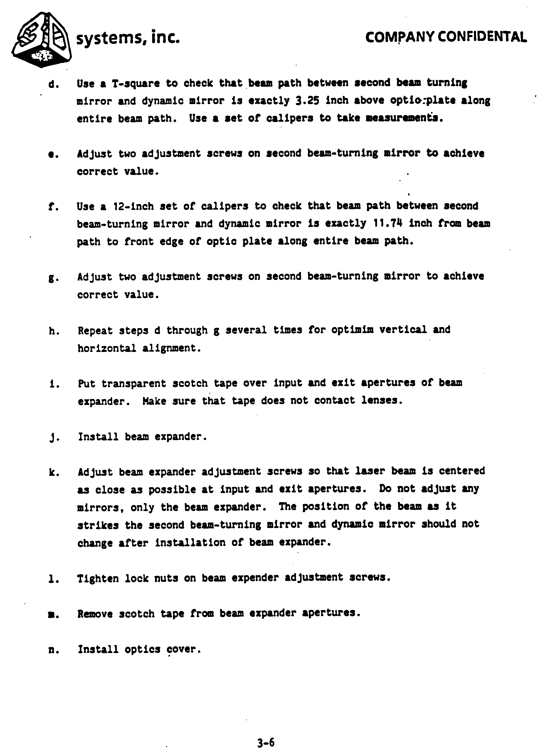 An equivalent drift correction procedure is performed on all of the calibration points during the calibration of the SLA. In a presently preferred embodiment, drift is determined at the end of a scan of each row of predetermined fixed positions and the correction is applied through linear interpolation for that row. A method of actual software implementation of such a routine for compensation would be well within the capabilities of one of ordinary skill in the art and therefore will not be further described herein although actual software for drift correction in an actual embodiment of the SLA-l is included in attached Appendices F and K.
