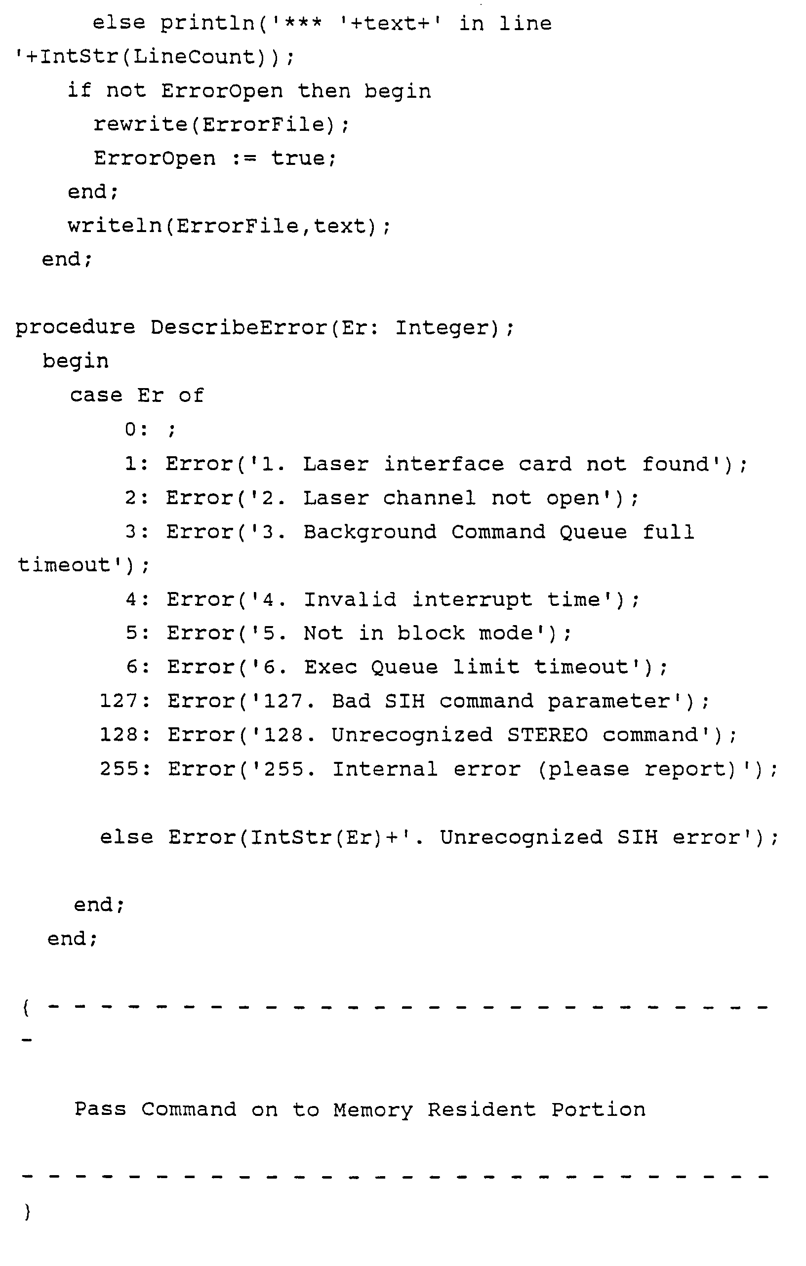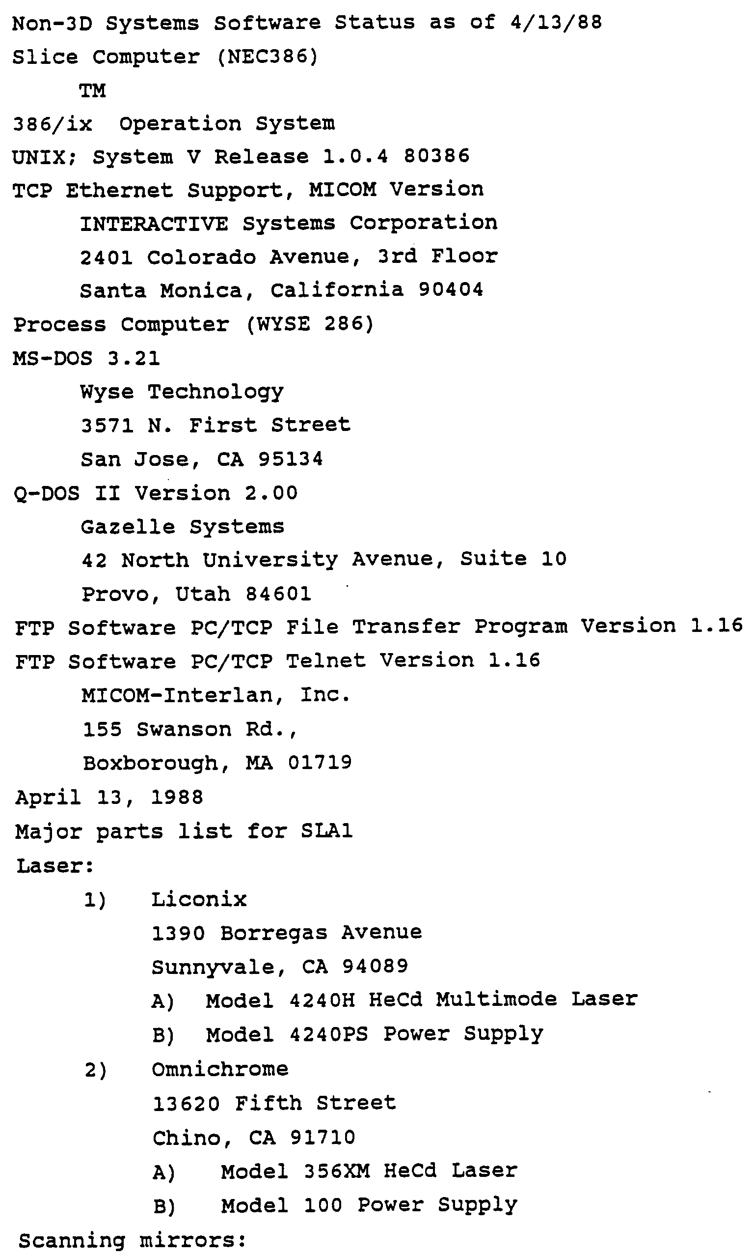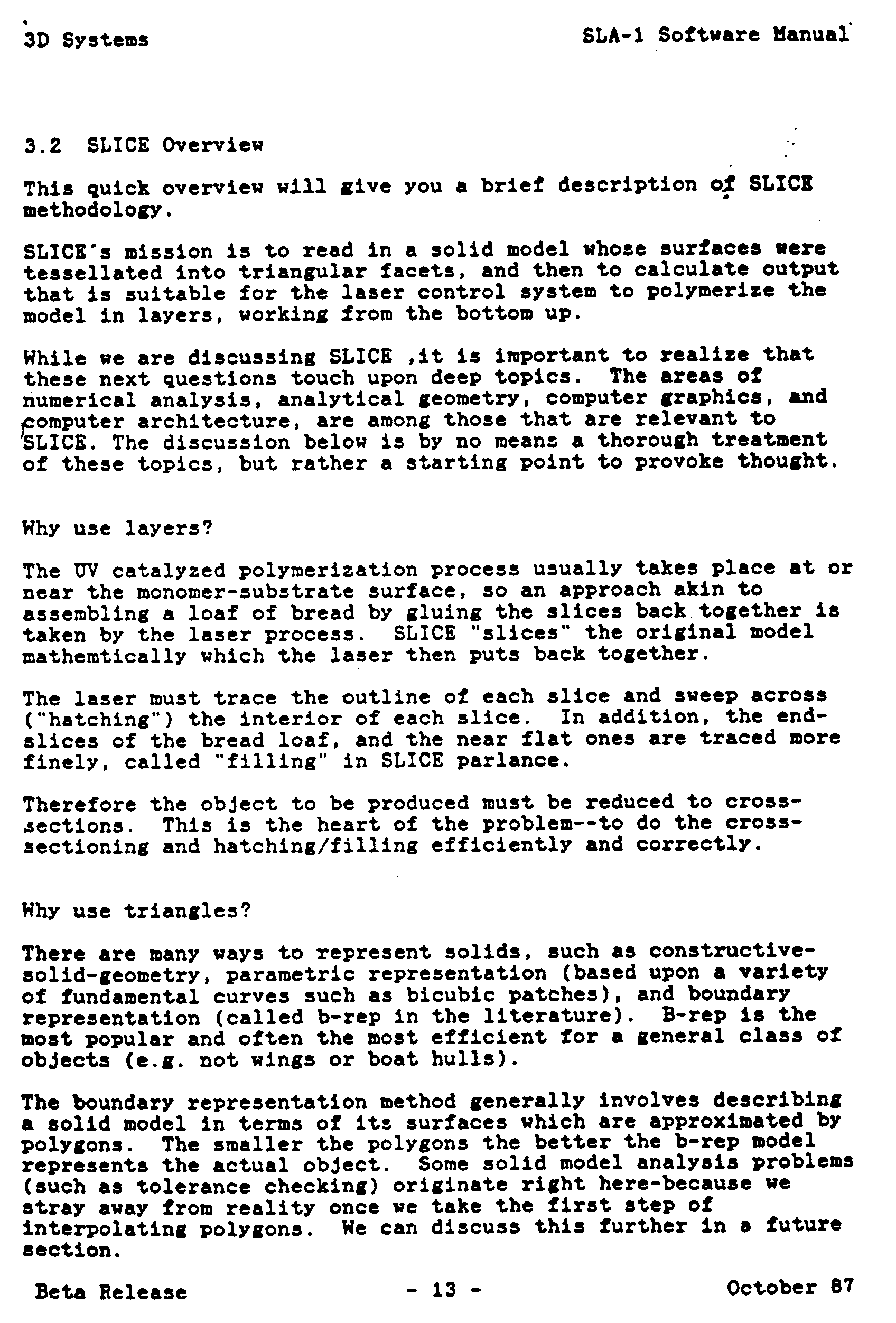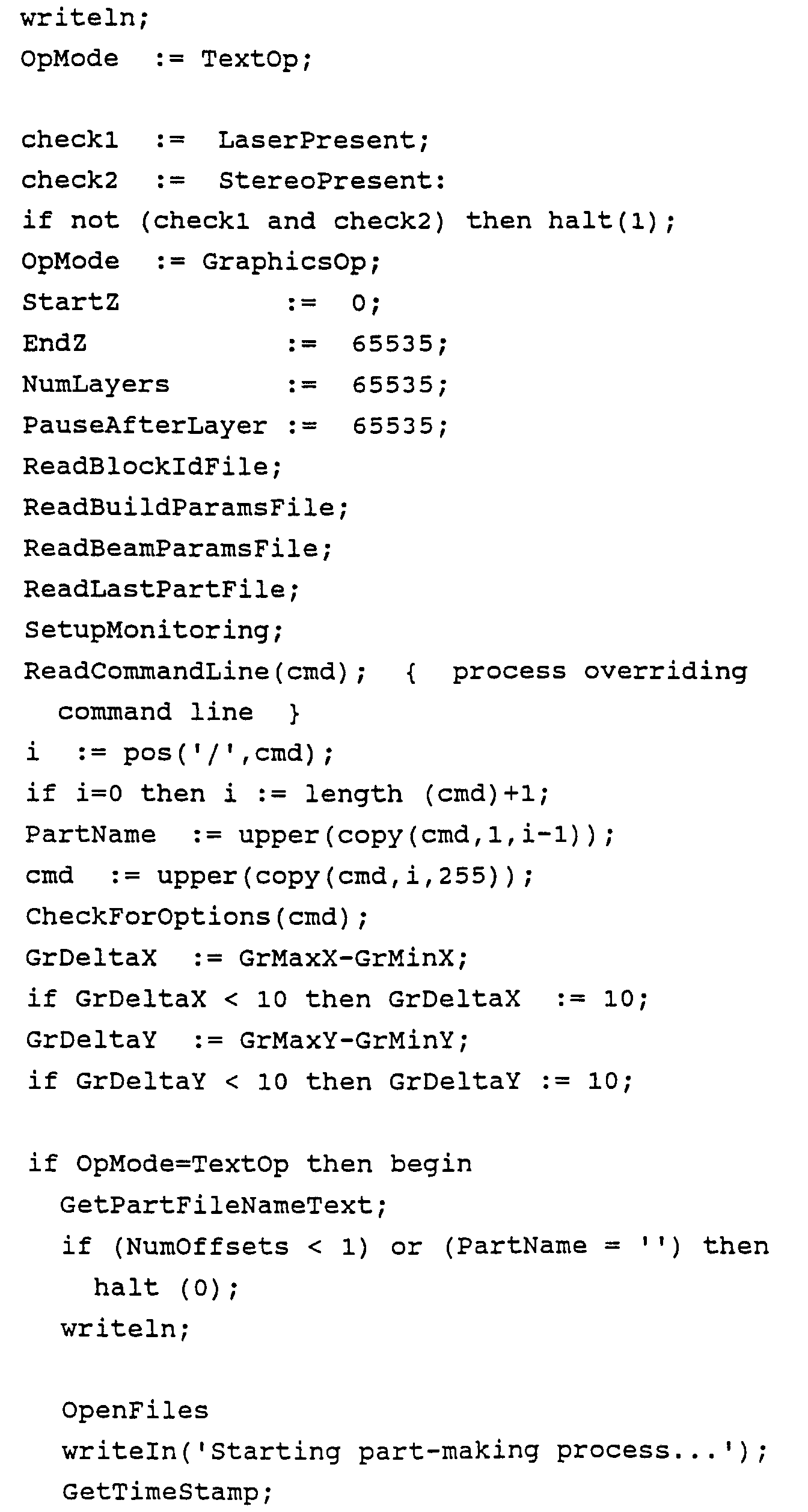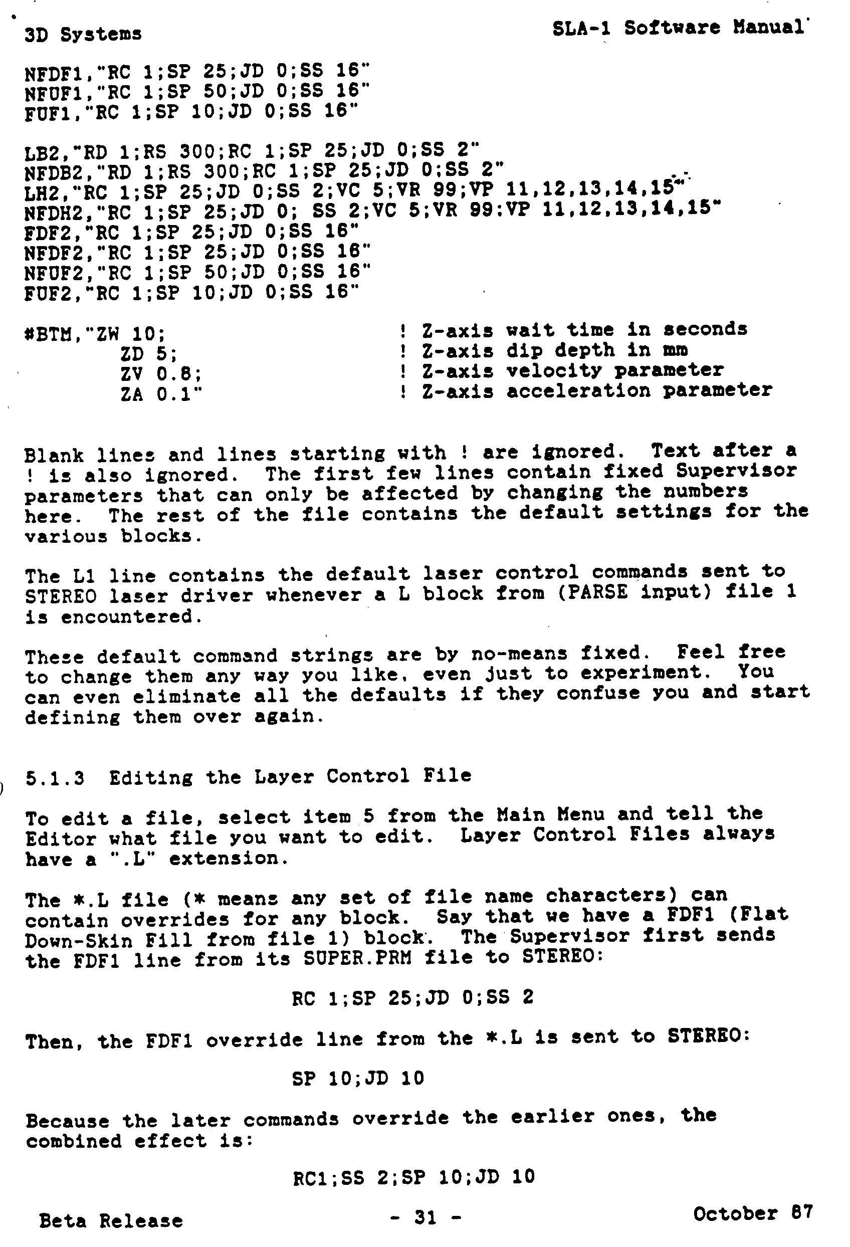 BUILD STEREO an applications program used to build parts; it passes along profile position info for each layer the memory-resident driver that performs several Stereolithography related tasks, one of which is drift correction -->