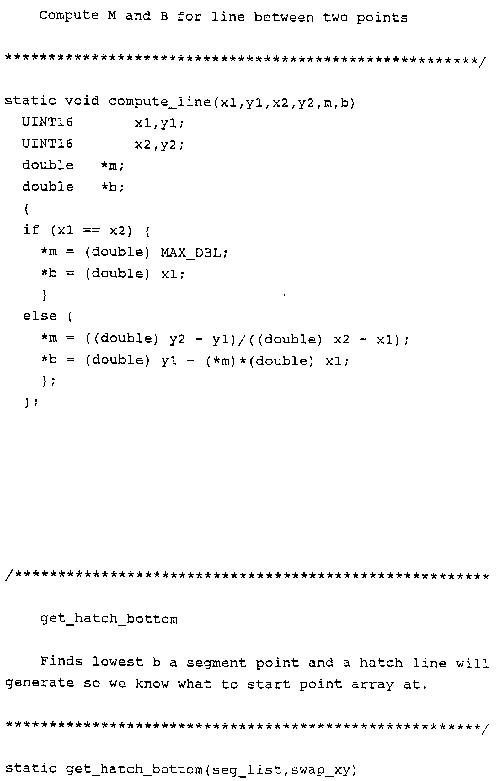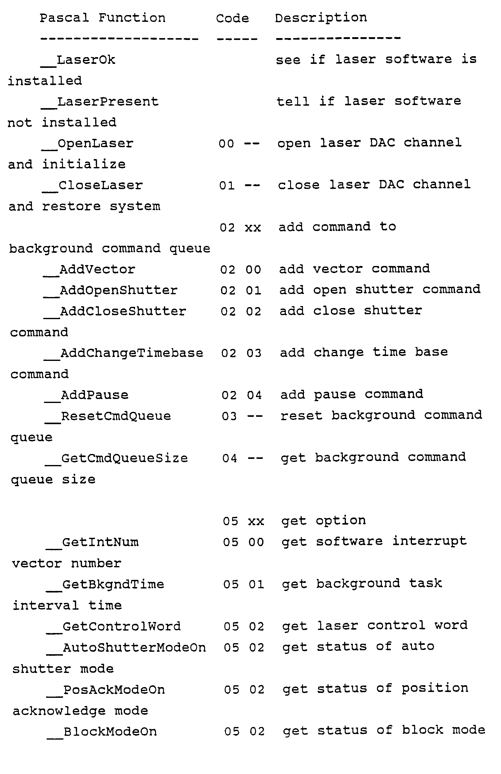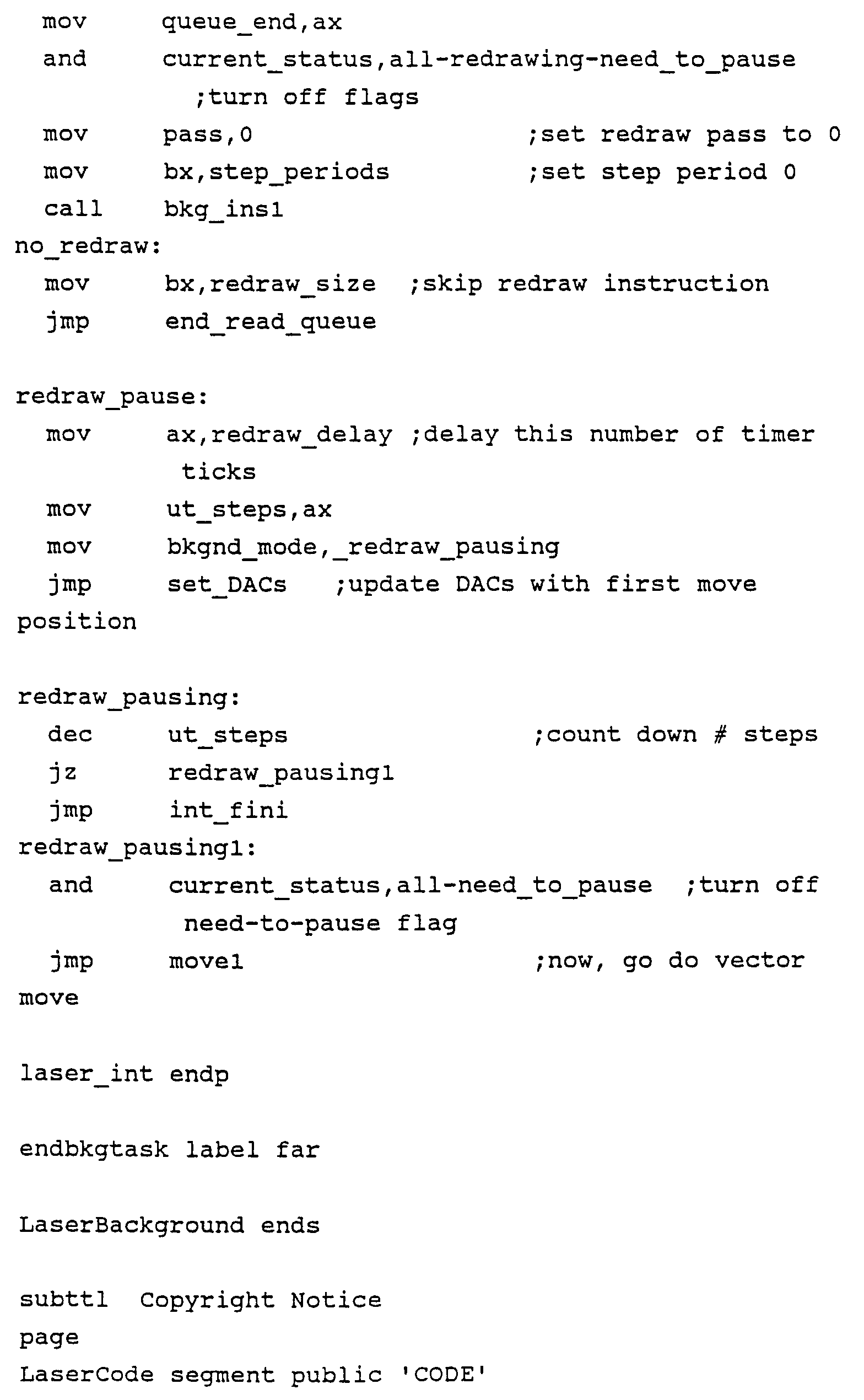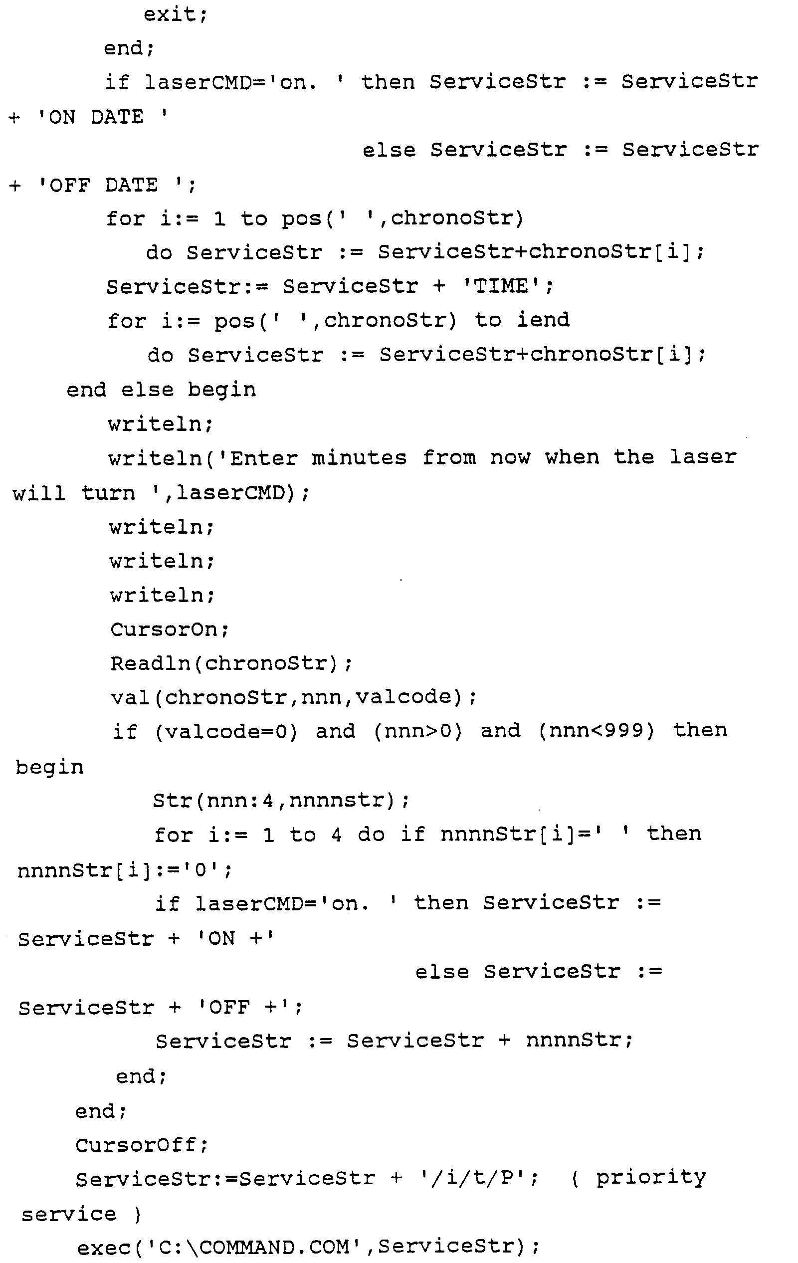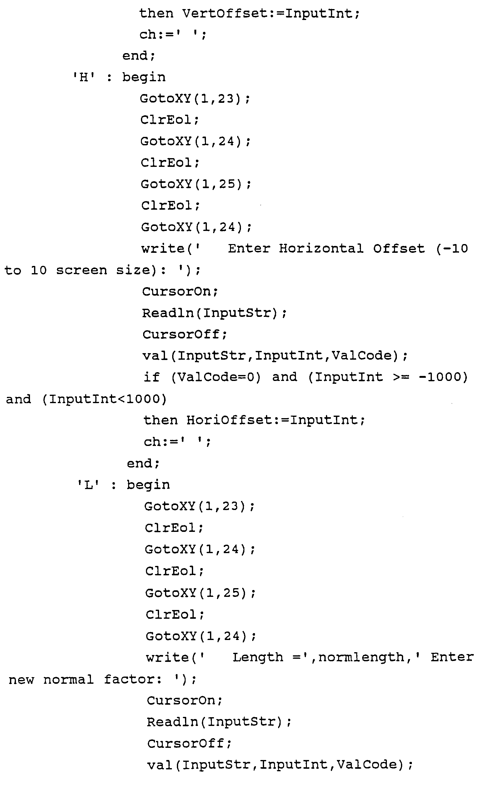 The Pascal function below is a sample for computing the values of the drift correction variables. The 'Ref' variables are the reference positions of the two beam profile sensors read from the disk data file. The 'Now' variables are the most recently determined positions of the two profile sensors. Because of dynamic changes in the physical characteristics of the laser scanning system, the positions held in the 'Now' variables will differ slightly from the ideal reference positions. The goal is to use these position differences to adjust upcoming mirror positions.