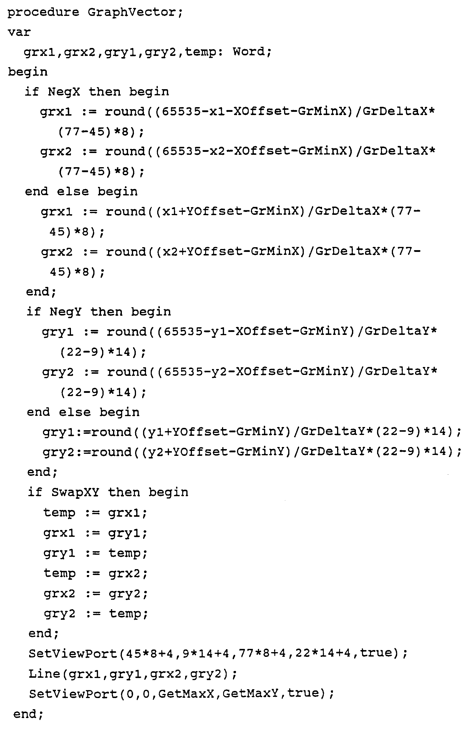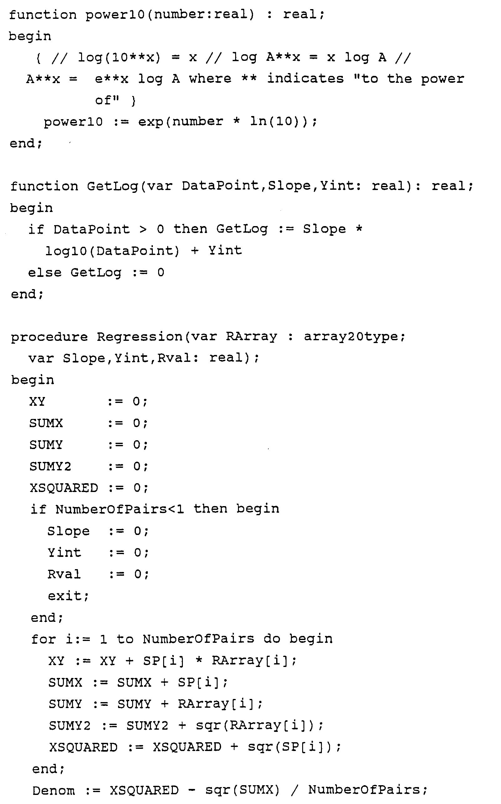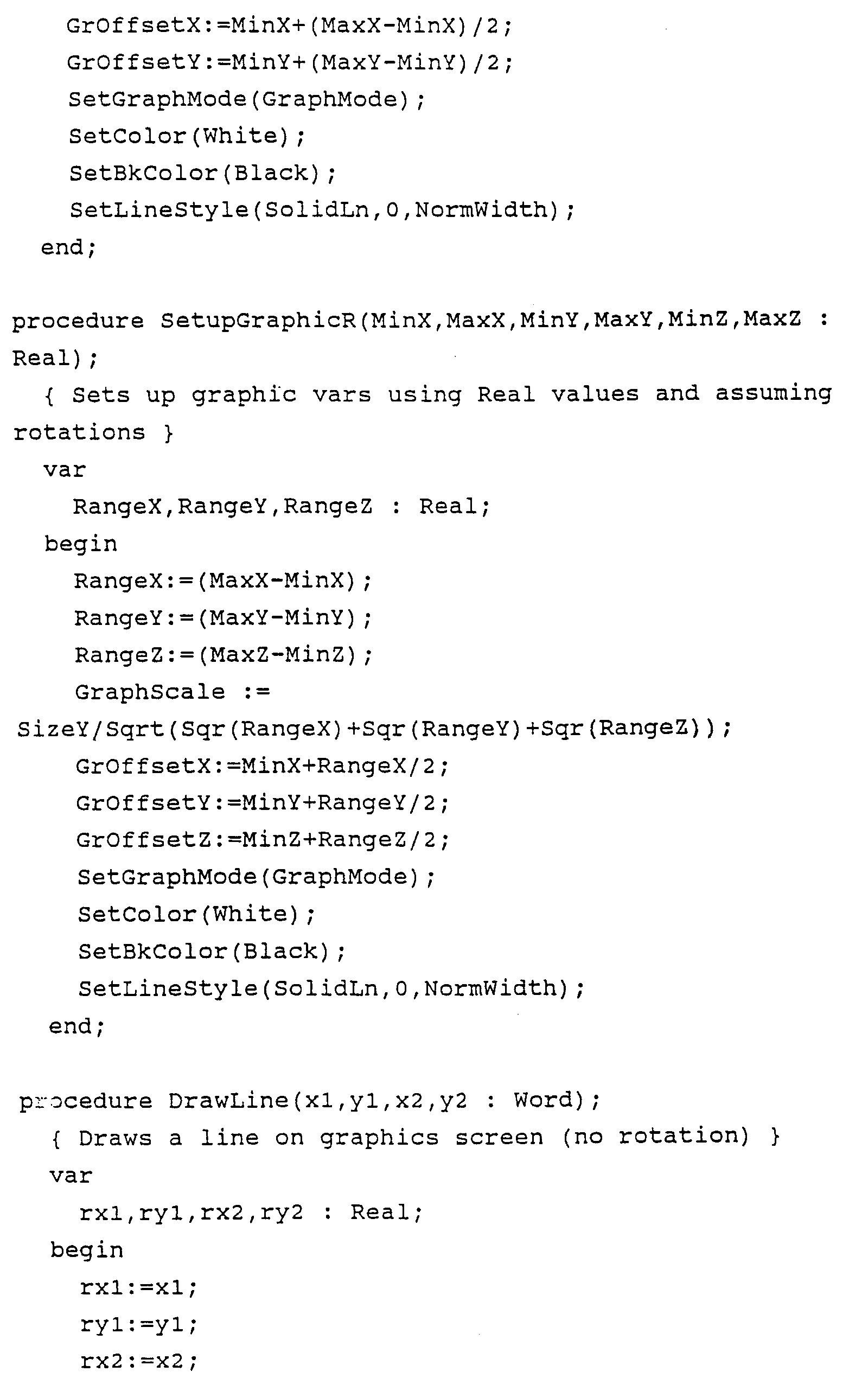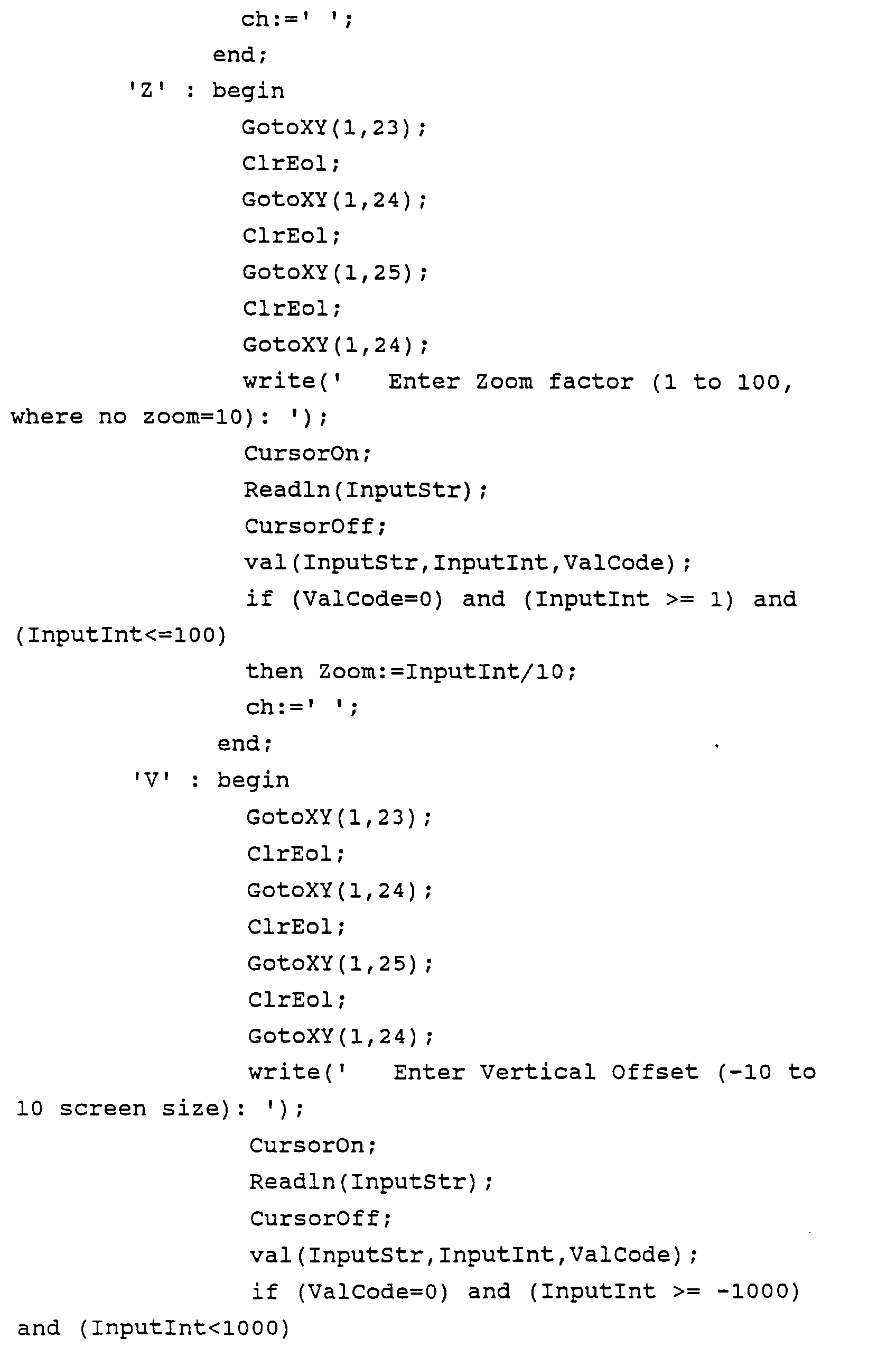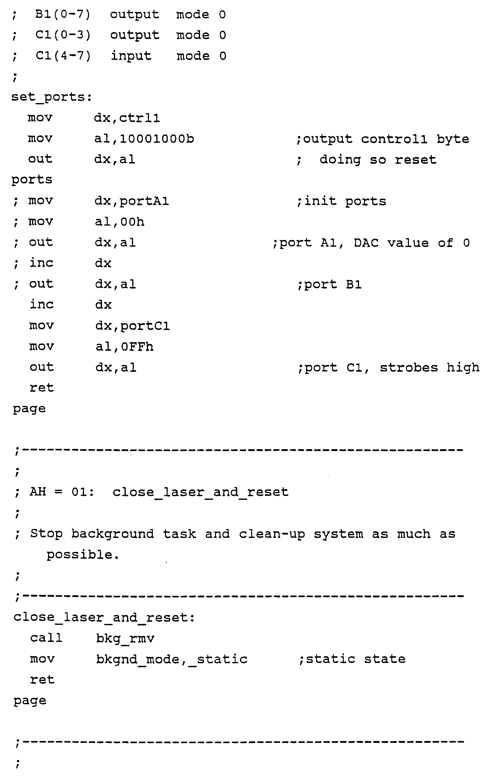The Pascal function below is a sample for computing the values of the drift correction variables. The 'Ref' variables are the reference positions of the two beam profile sensors read from the disk data file. The 'Now' variables are the most recently determined positions of the two profile sensors. Because of dynamic changes in the physical characteristics of the laser scanning system, the positions held in the 'Now' variables will differ slightly from the ideal reference positions. The goal is to use these position differences to adjust upcoming mirror positions.