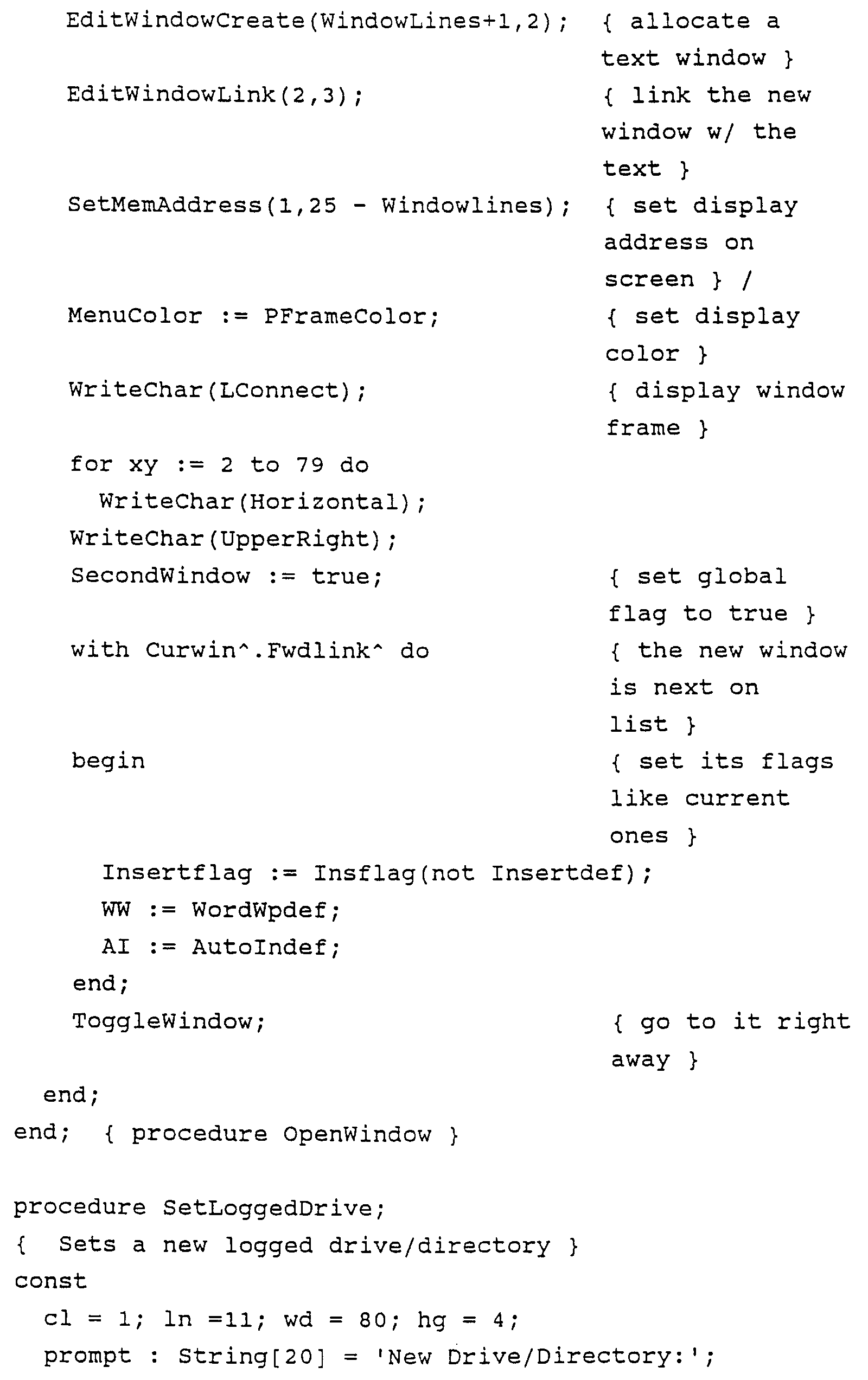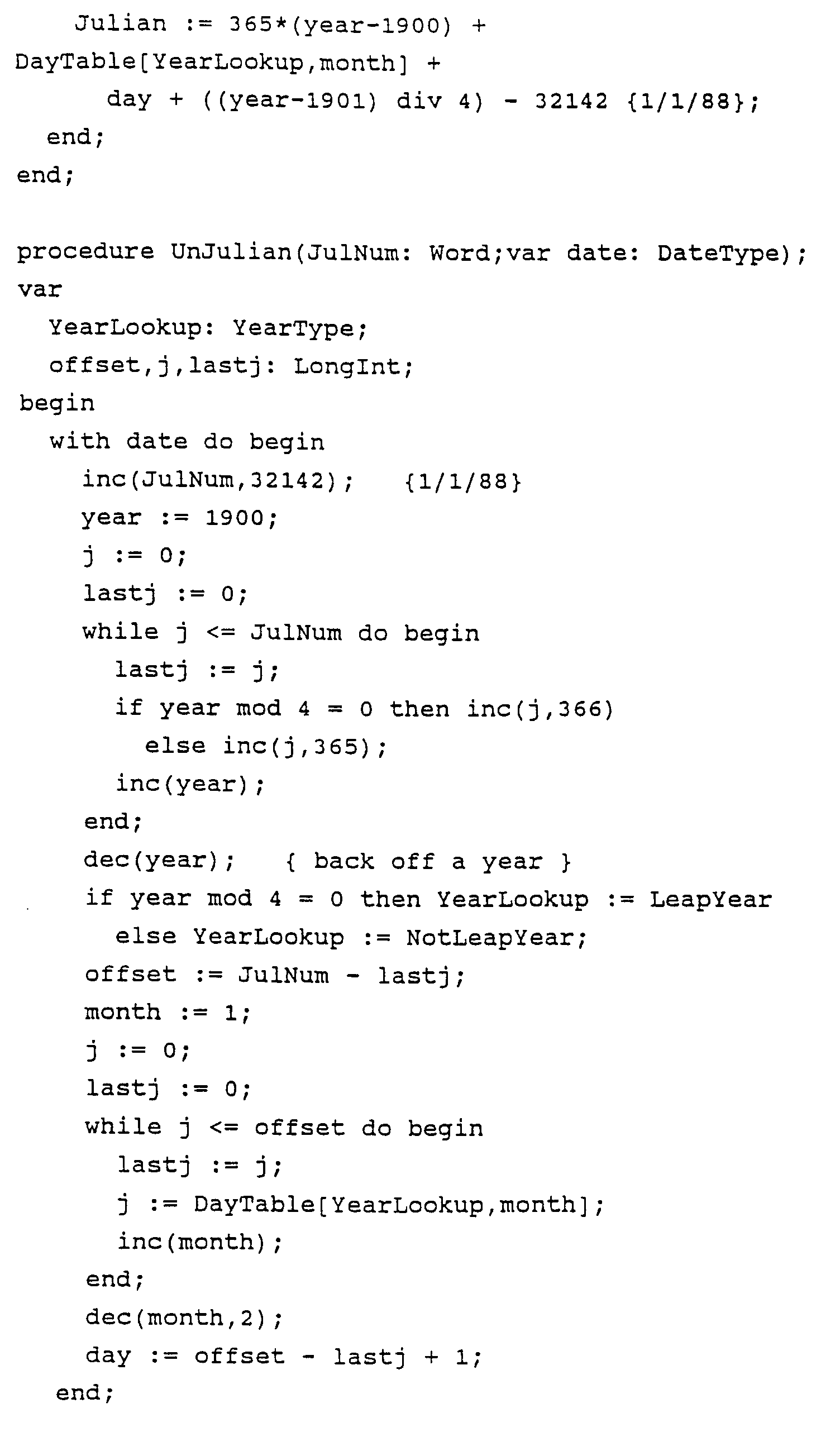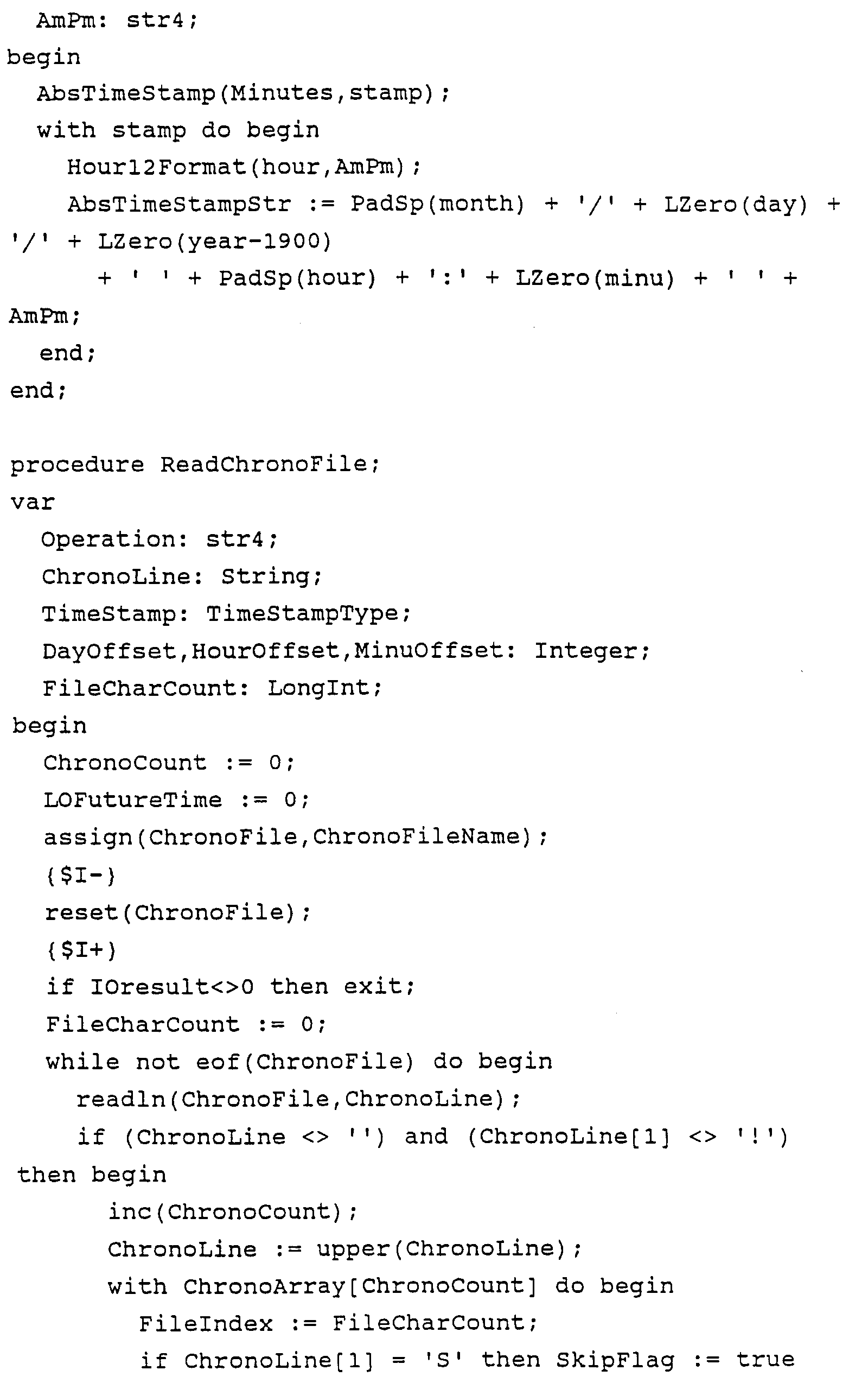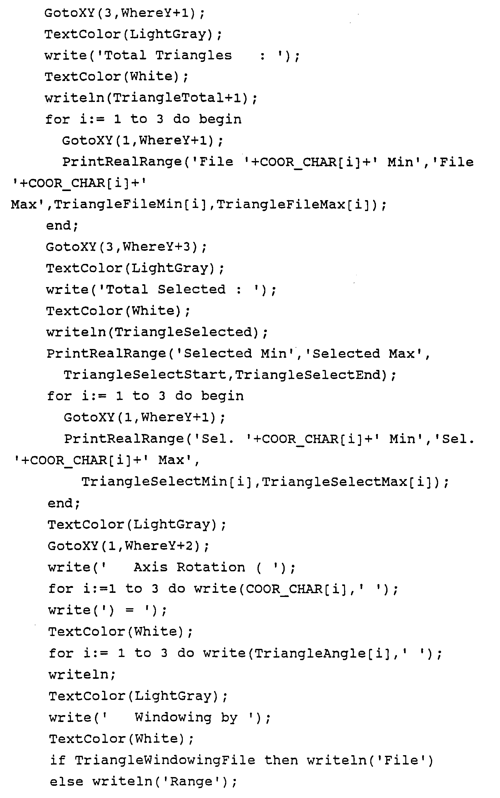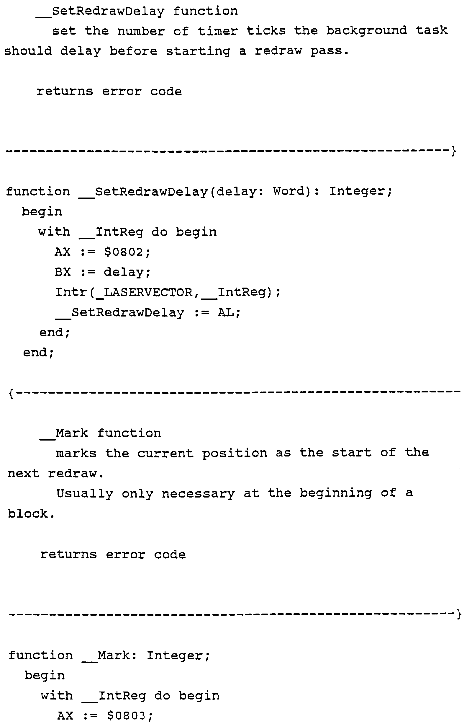 The Pascal function below is a sample for computing the values of the drift correction variables. The 'Ref' variables are the reference positions of the two beam profile sensors read from the disk data file. The 'Now' variables are the most recently determined positions of the two profile sensors. Because of dynamic changes in the physical characteristics of the laser scanning system, the positions held in the 'Now' variables will differ slightly from the ideal reference positions. The goal is to use these position differences to adjust upcoming mirror positions.