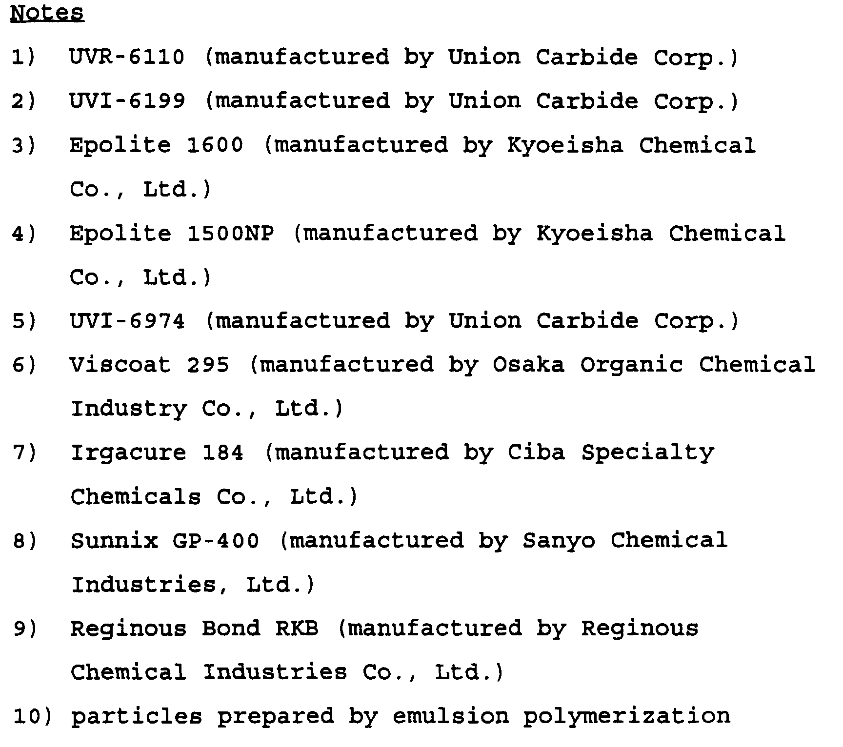 | Triallylsulfoniumhexafluoroantimonate (component B) | 2 | 2 | 2 | 2 | 2 | 2 |