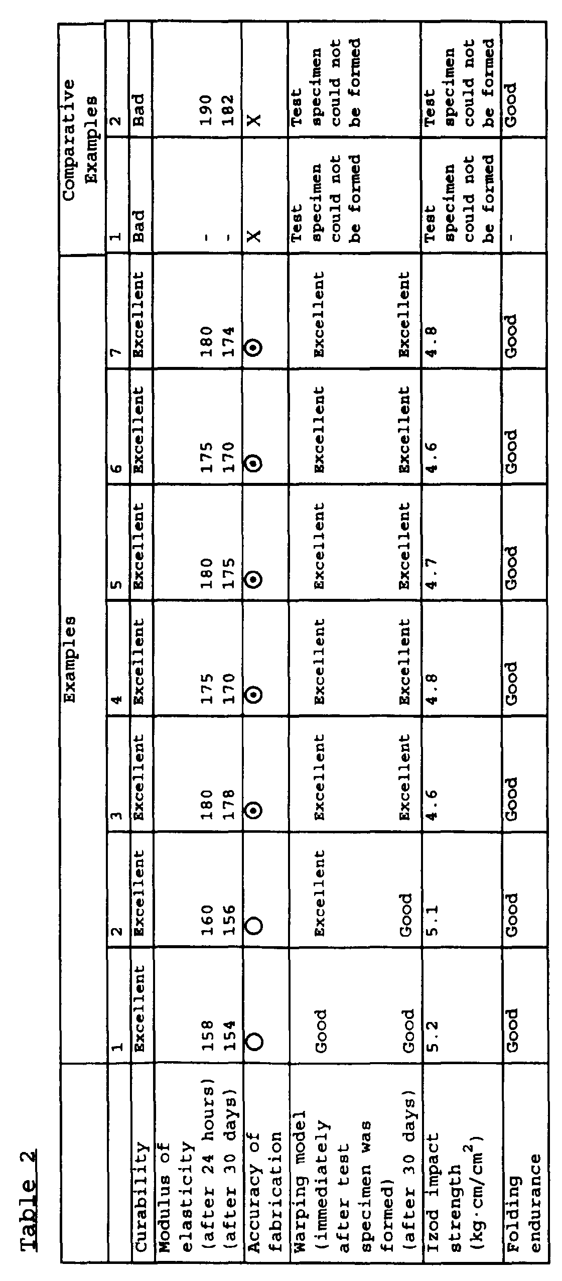 | Curability | ○ | ○ | ○ | ○ | X | X |