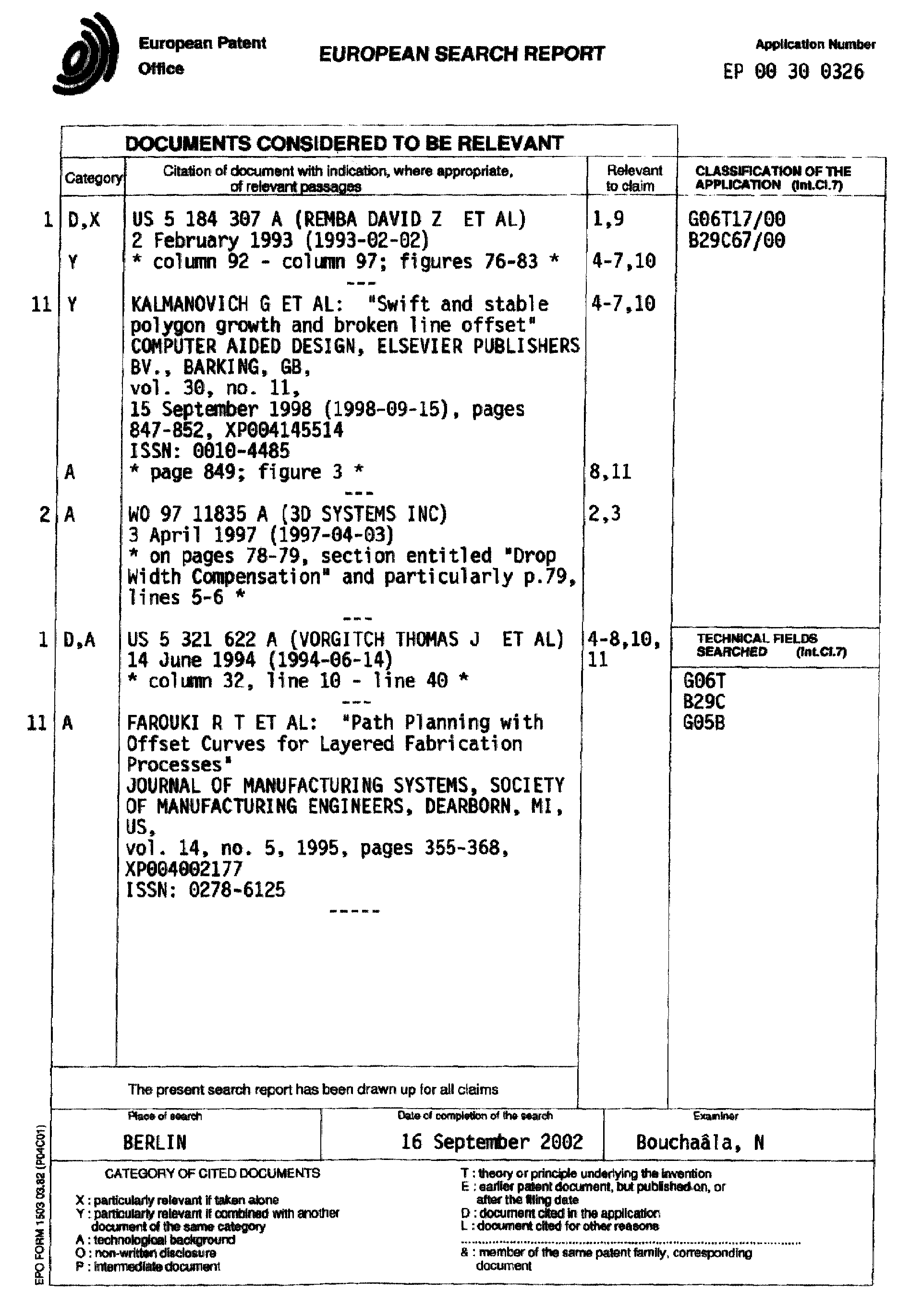 | 2 | * | KALMANOVICH G ET AL: "Swift and stable polygon growth and broken line offset", COMPUTER AIDED DESIGN, ELSEVIER PUBLISHERS BV., BARKING, GB, vol. 30, no. 11, 15 September 1998 (1998-09-15), pages 847 - 852, XP004145514, ISSN: 0010-4485 |