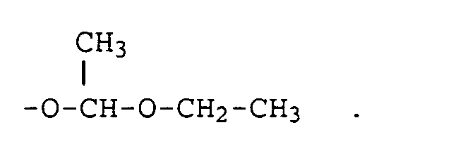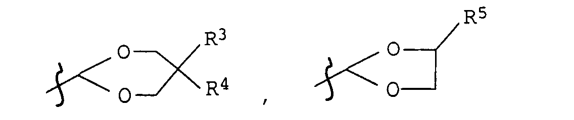 Für cyclische Acetale kommen als Alkylreste für R 3 bis R 5 lineare oder verzweigte C 1 -C 4 -Alkylreste, zB Methyl, Ethyl, n-Propyl, 1-Methylethyl, n-Butyl, 1-Methylpropyl, 2-Methylpropyl und 1,1-Dimethylethyl in Frage. For cyclic acetals are used as alkyl groups for R 3 to R 5 is linear or branched C 1 -C 4 alkyl, eg methyl, ethyl, n-propyl, 1-methylethyl, n-butyl, 1-methylpropyl, 2-methylpropyl and 1, 1-dimethylethyl in question.