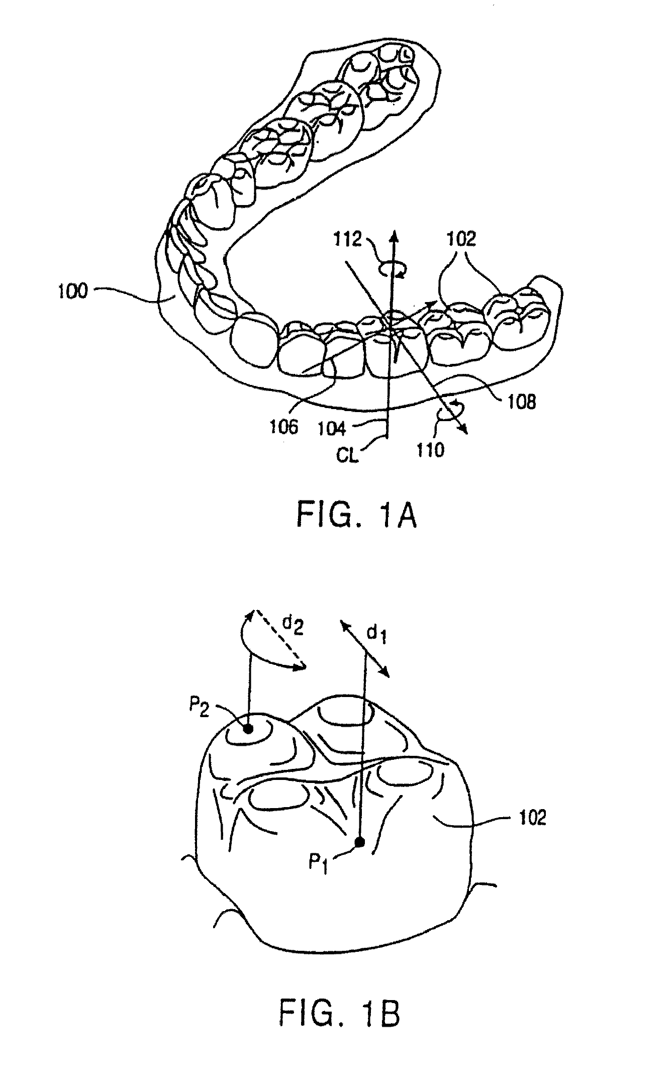 - one or more intermediate appliances having geometries selected to progressively reposition the teeth from the first intermediate arrangement to successive intermediate arrangements; and a final appliance having a geometry selected to progressively reposition the teeth from the last intermediate arrangement to the final tooth arrangement.