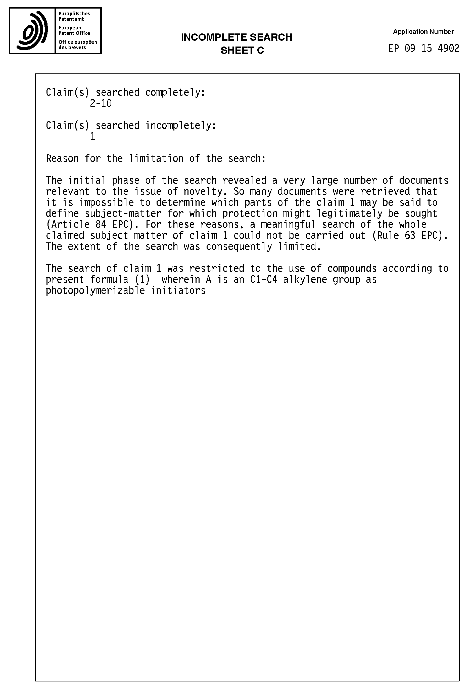 - Composition of Developing Solution 1 -