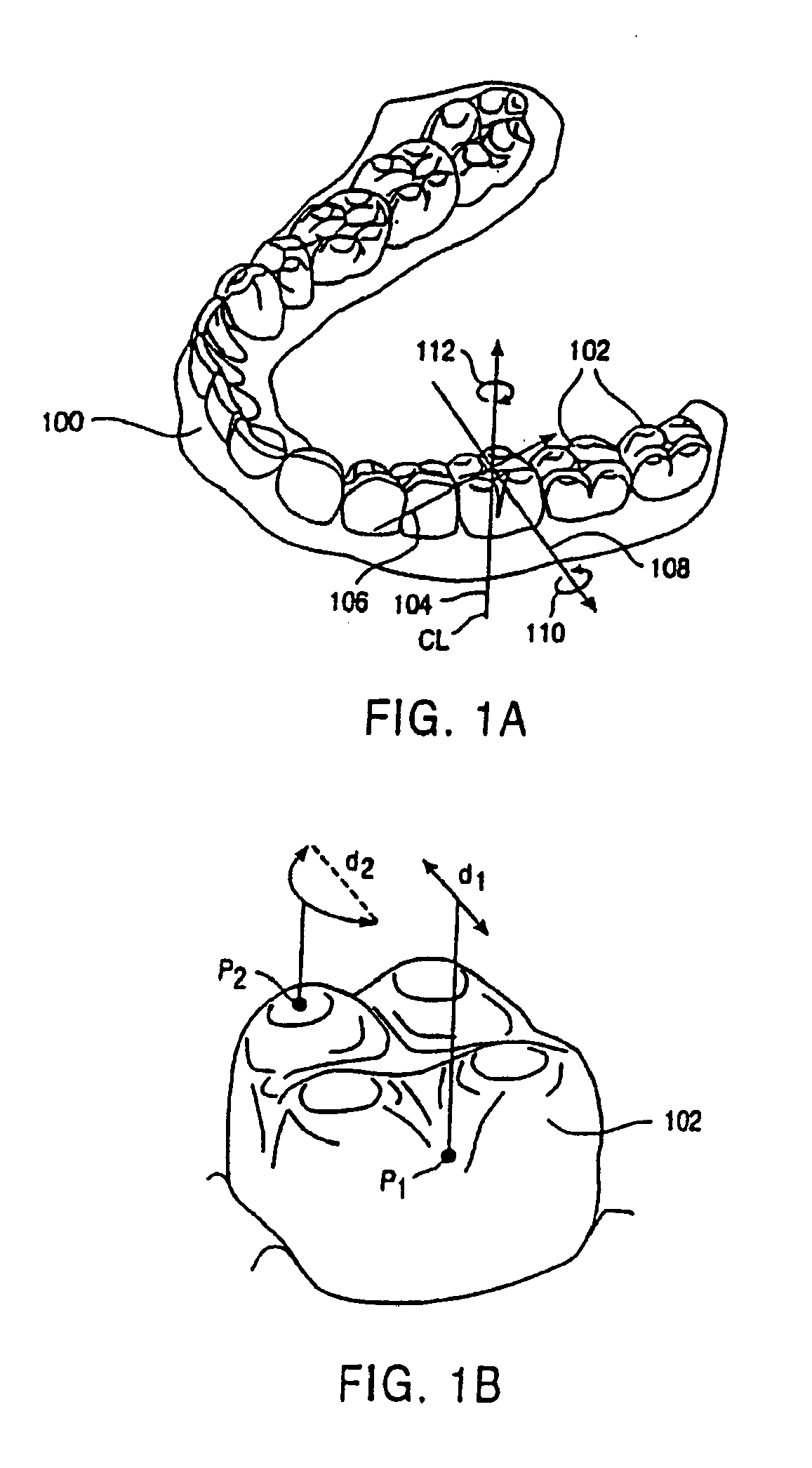 - one or more intermediate appliances having geometries selected to progressively reposition the teeth from the first intermediate arrangement to successive intermediate arrangements; and a final appliance having a geometry selected to progressively reposition the teeth from the last intermediate arrangement to the final tooth arrangement.