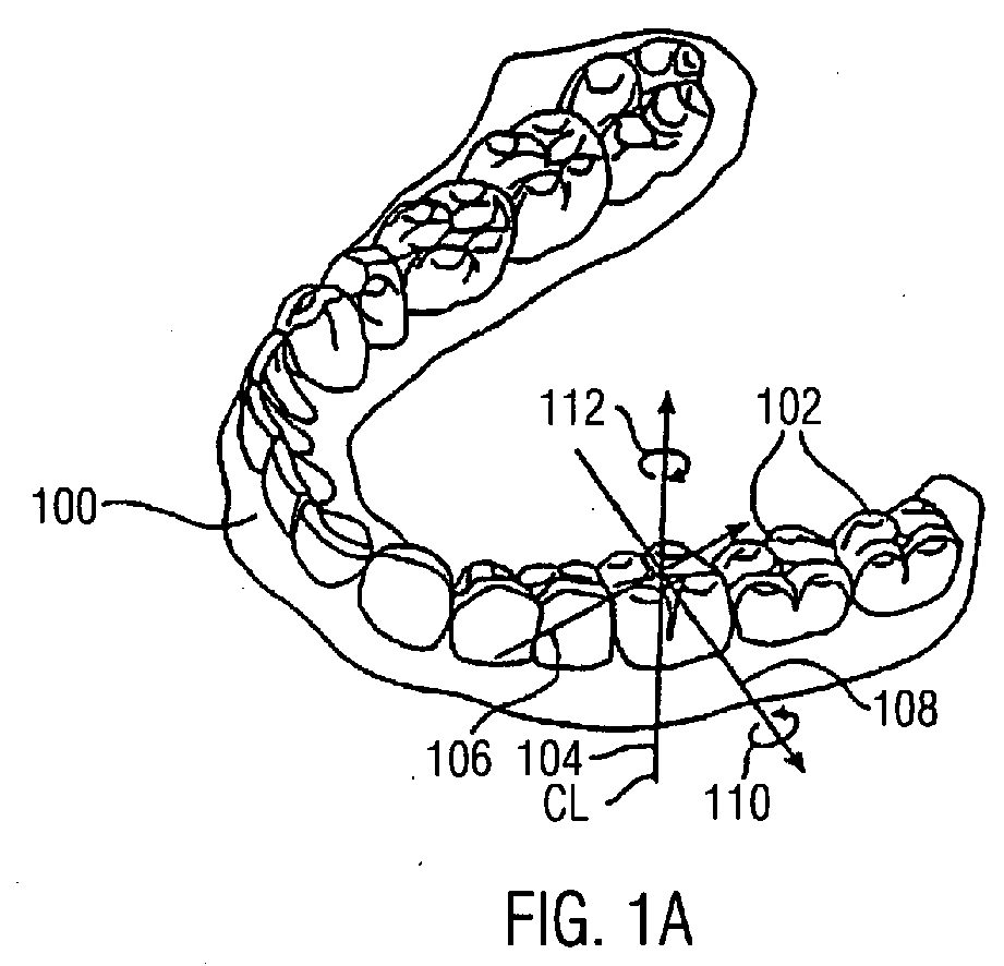 - one or more intermediate appliances having geometries selected to progressively reposition the teeth from the first intermediate arrangement to successive intermediate arrangements; and a final appliance having a geometry selected to progressively reposition the teeth from the last intermediate arrangement to the final tooth arrangement.